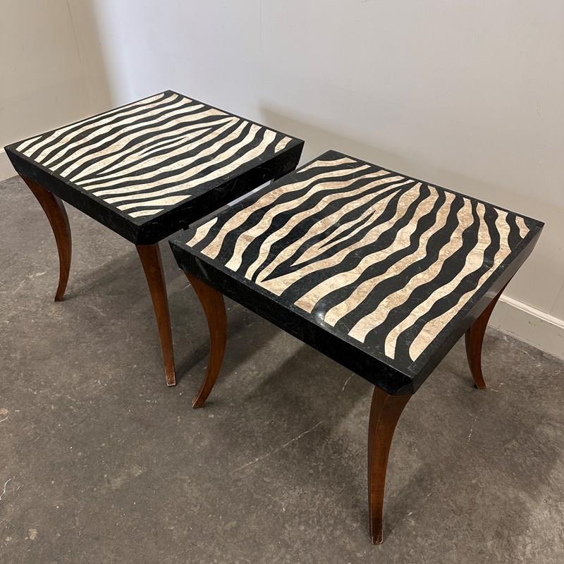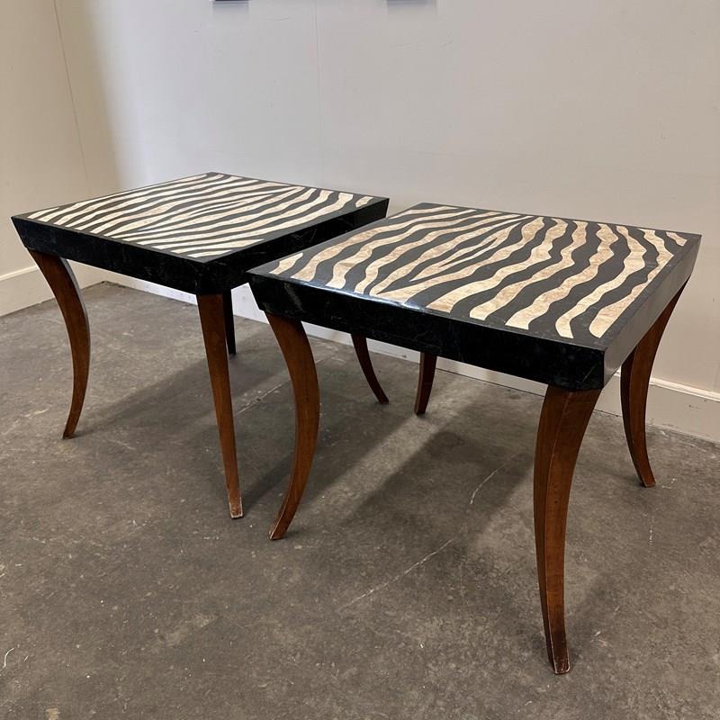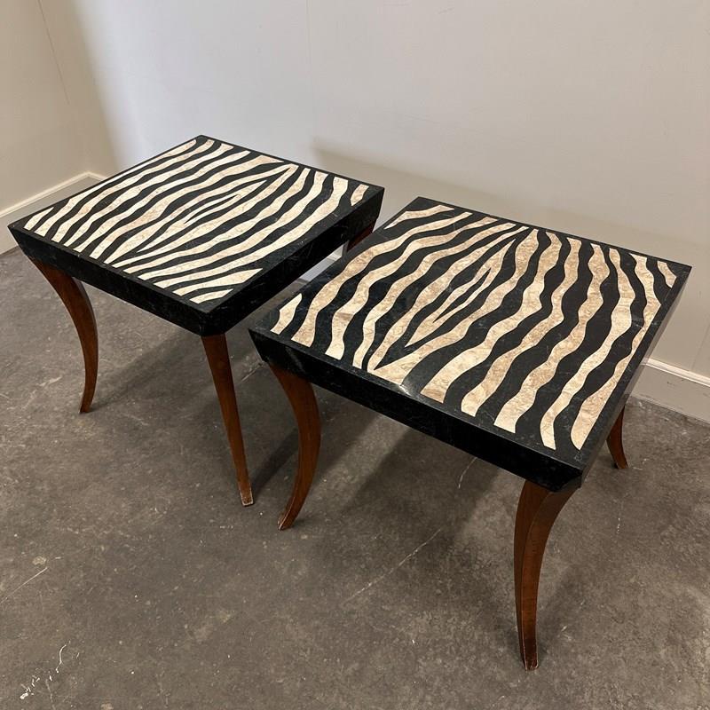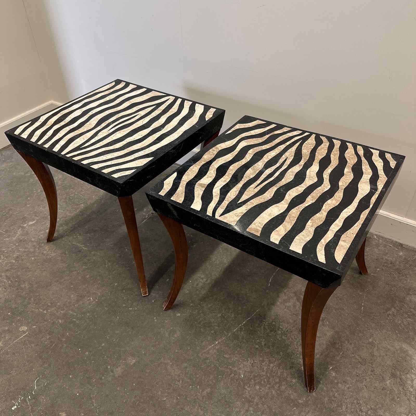 Striking Pair Of Italian Zebra Inlaid Tessellated Stone Tables
