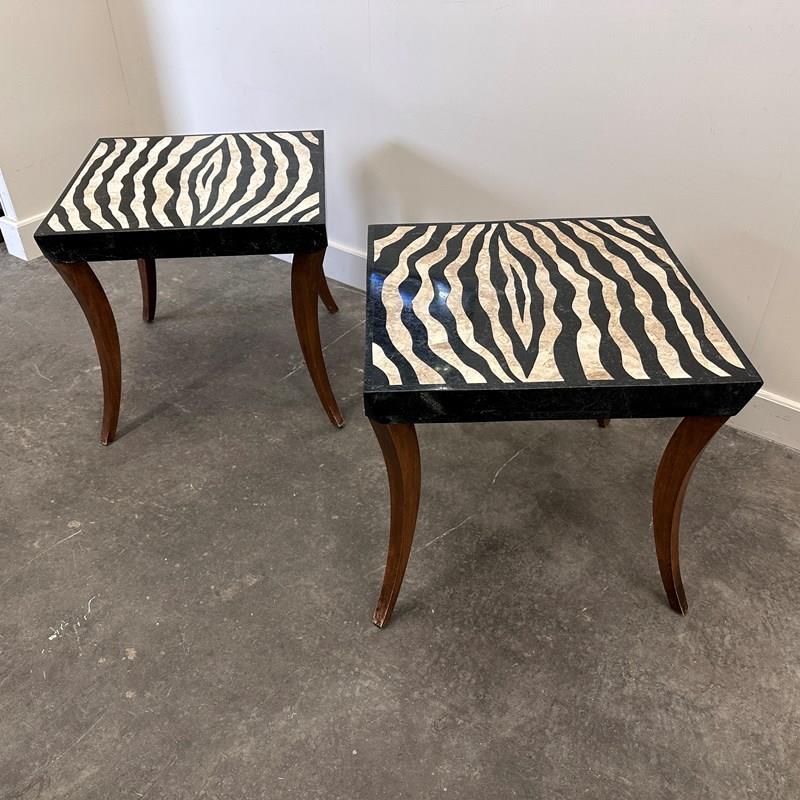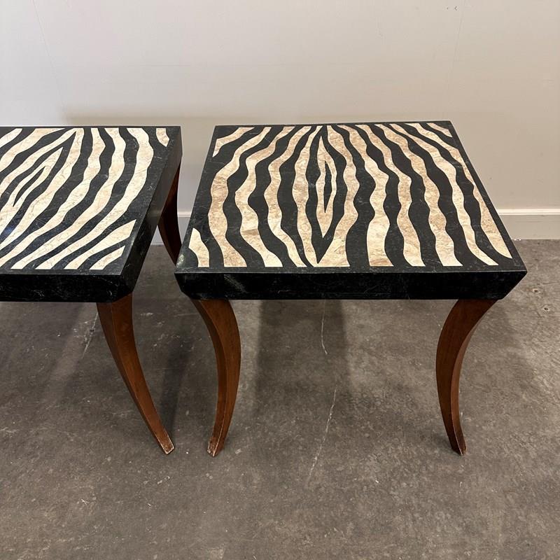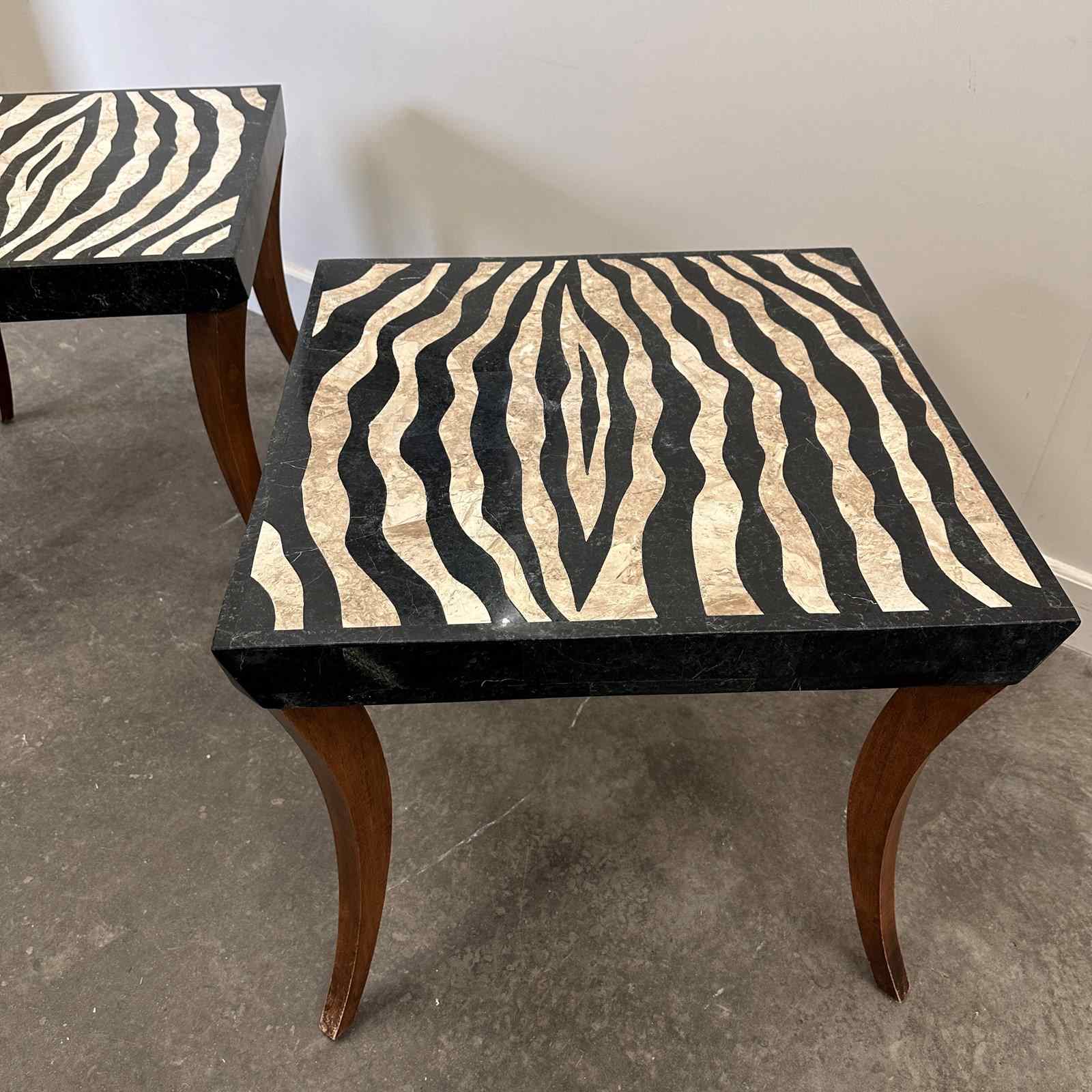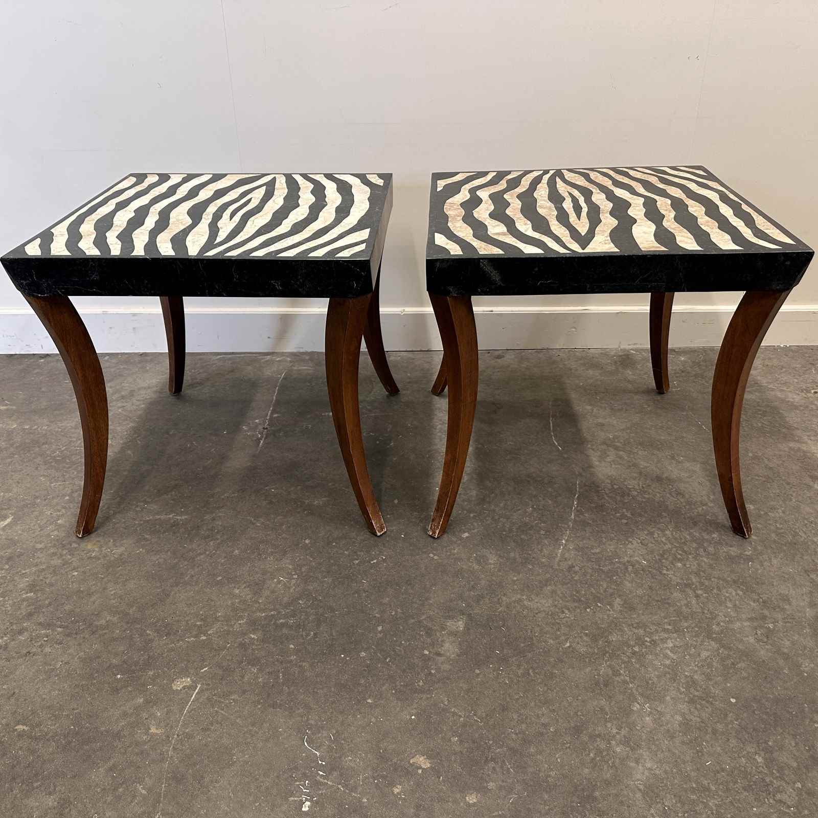 Striking Pair Of Italian Zebra Inlaid Tessellated Stone Tables