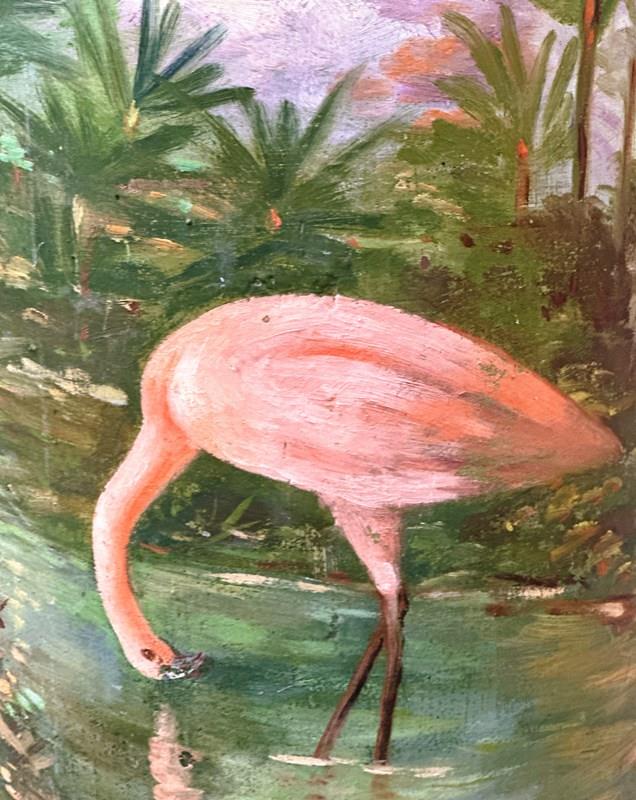 Unique Hand-Painted Flamingo Pedestal Artwork On Terracotta, 1940S France