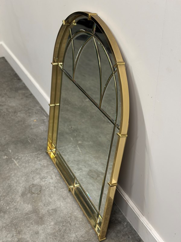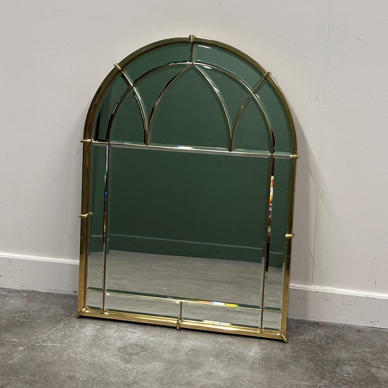 Vintage 1970S Brass Arched Cathedral Mirror – Bevelled Glass Wall Mirror