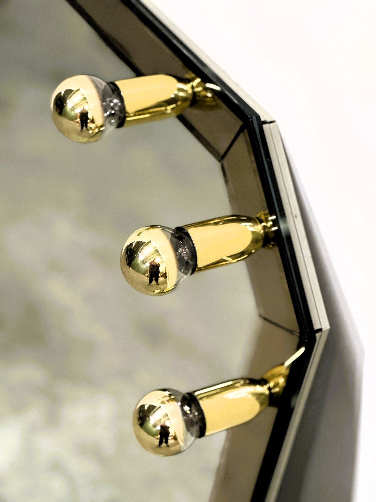Styling suggestions: Perfect for Hollywood Regency, Mid-Century Modern, Art Deco revival, boutique hotel interiors, dressing rooms, powder rooms, or as an accent mirror in an entryway or bedroom paired with brass lighting and rich textiles.