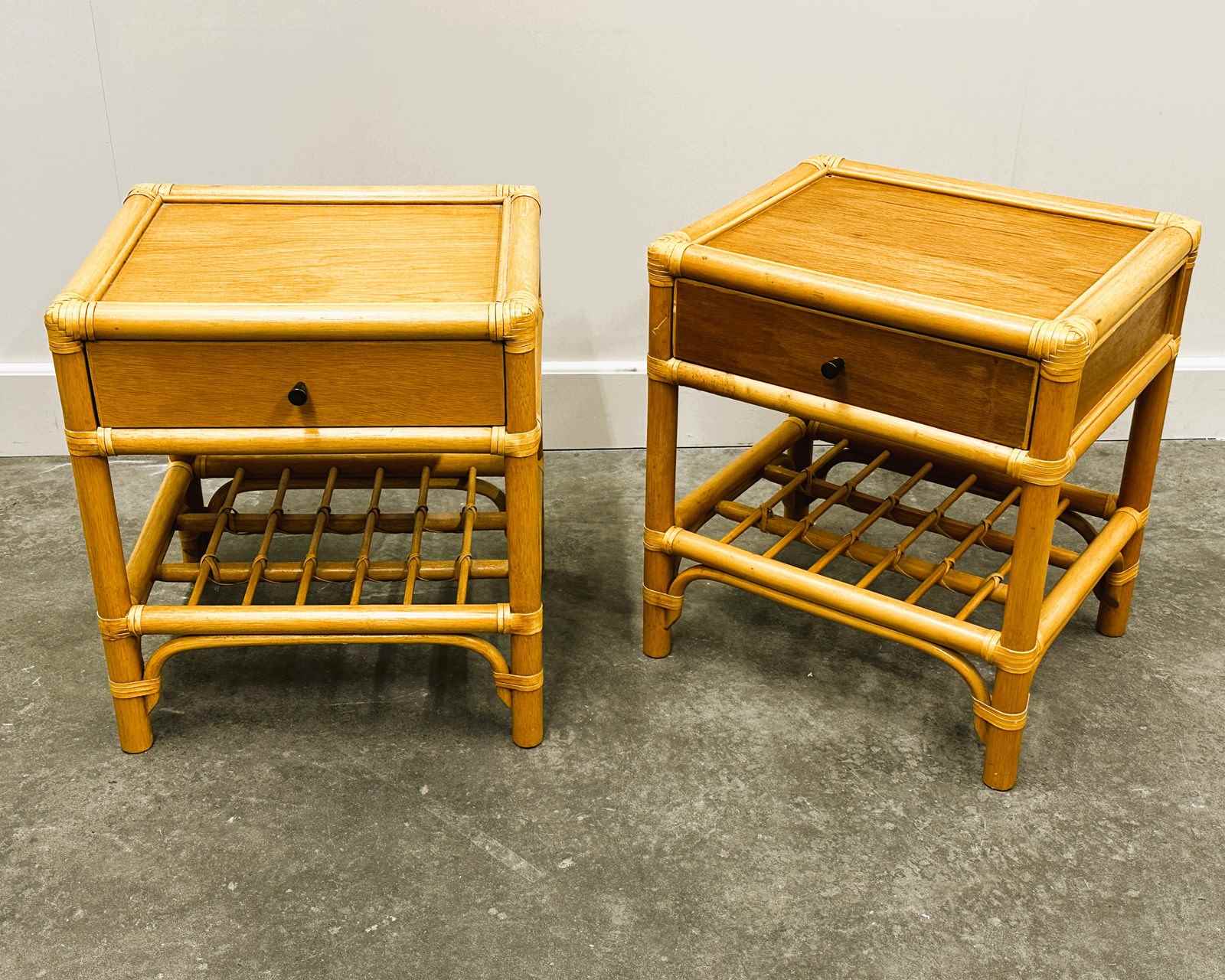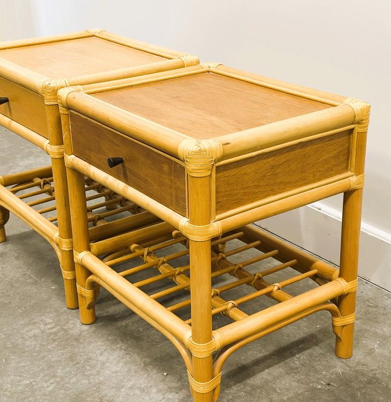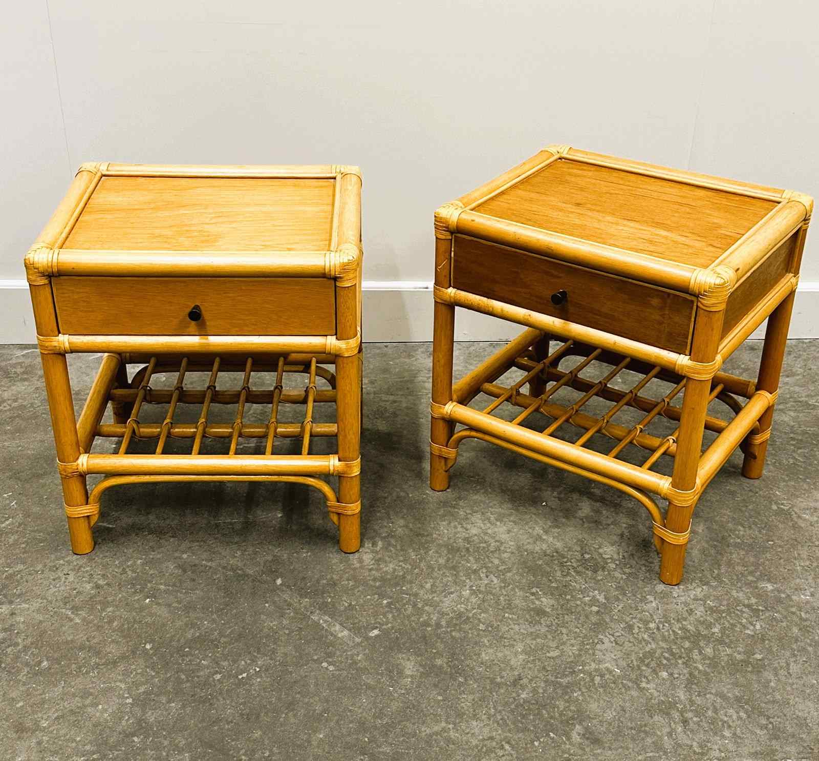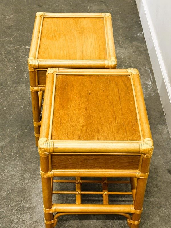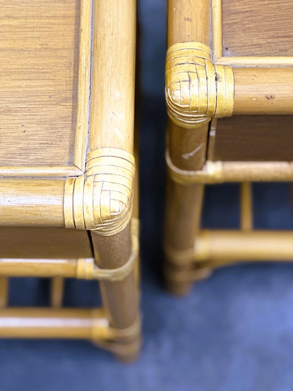 Vintage Pair Of French Bamboo Bedside Tables With Brass Knobs, 1970S