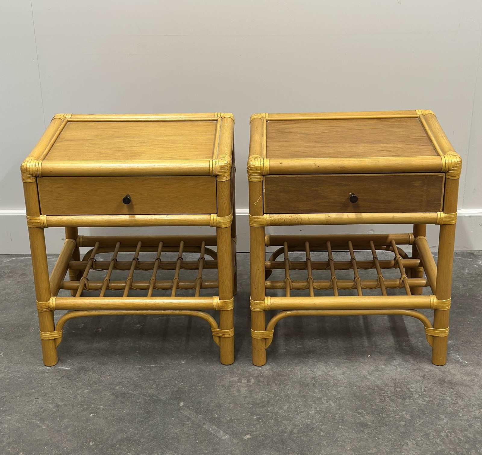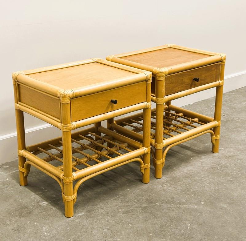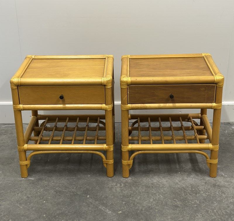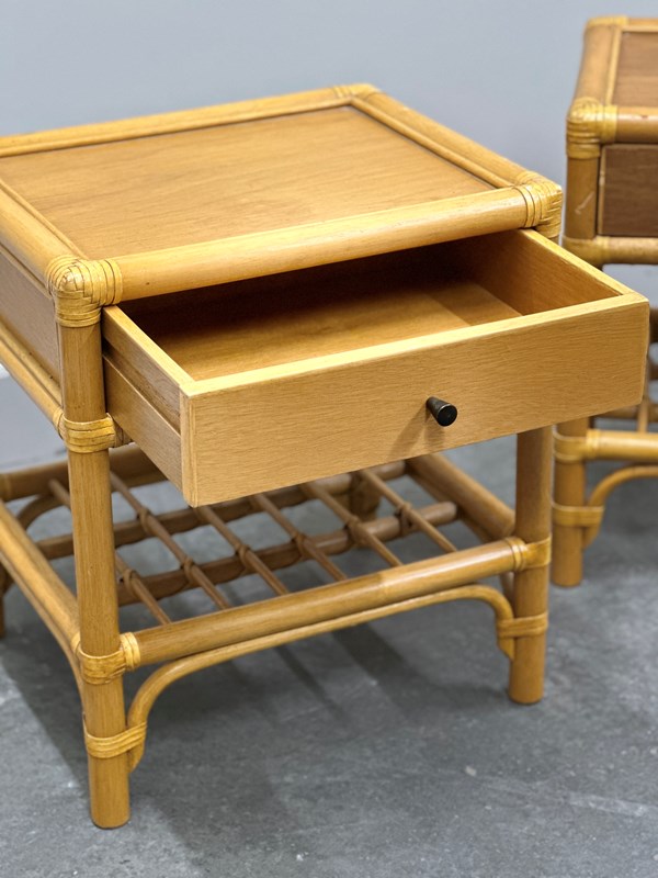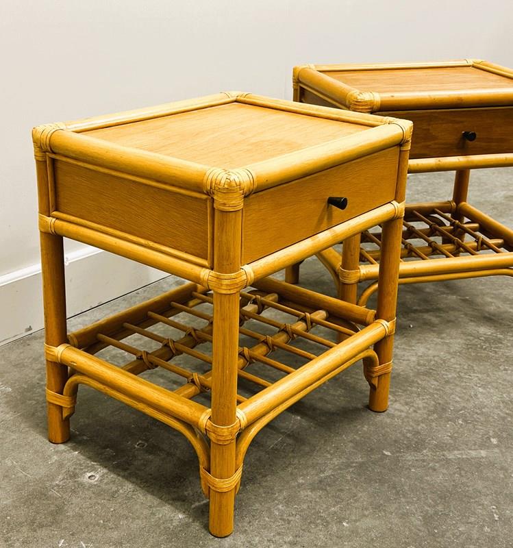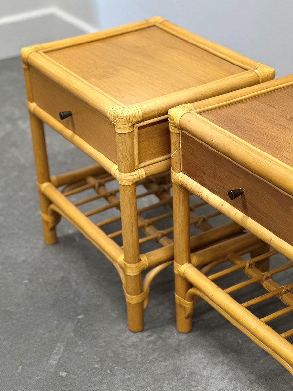 Vintage Pair Of French Bamboo Bedside Tables With Brass Knobs, 1970S