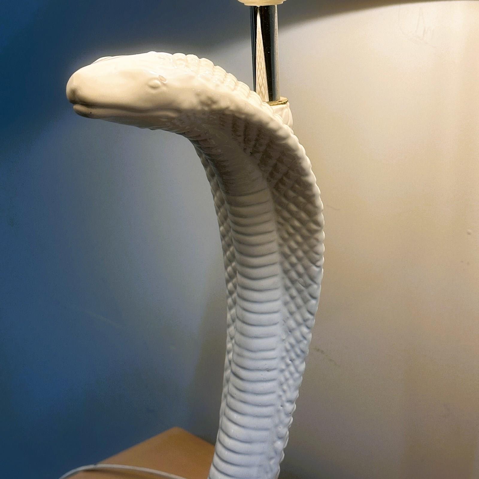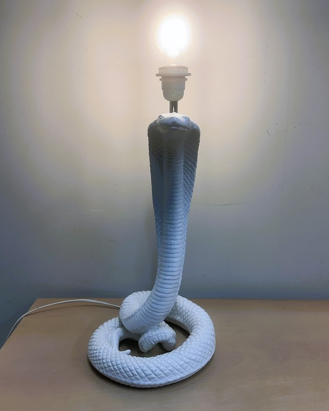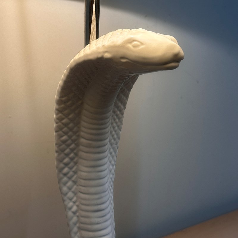 Vintage White Ceramic Cobra Table Lamp, 1970S. Attr. Barbi