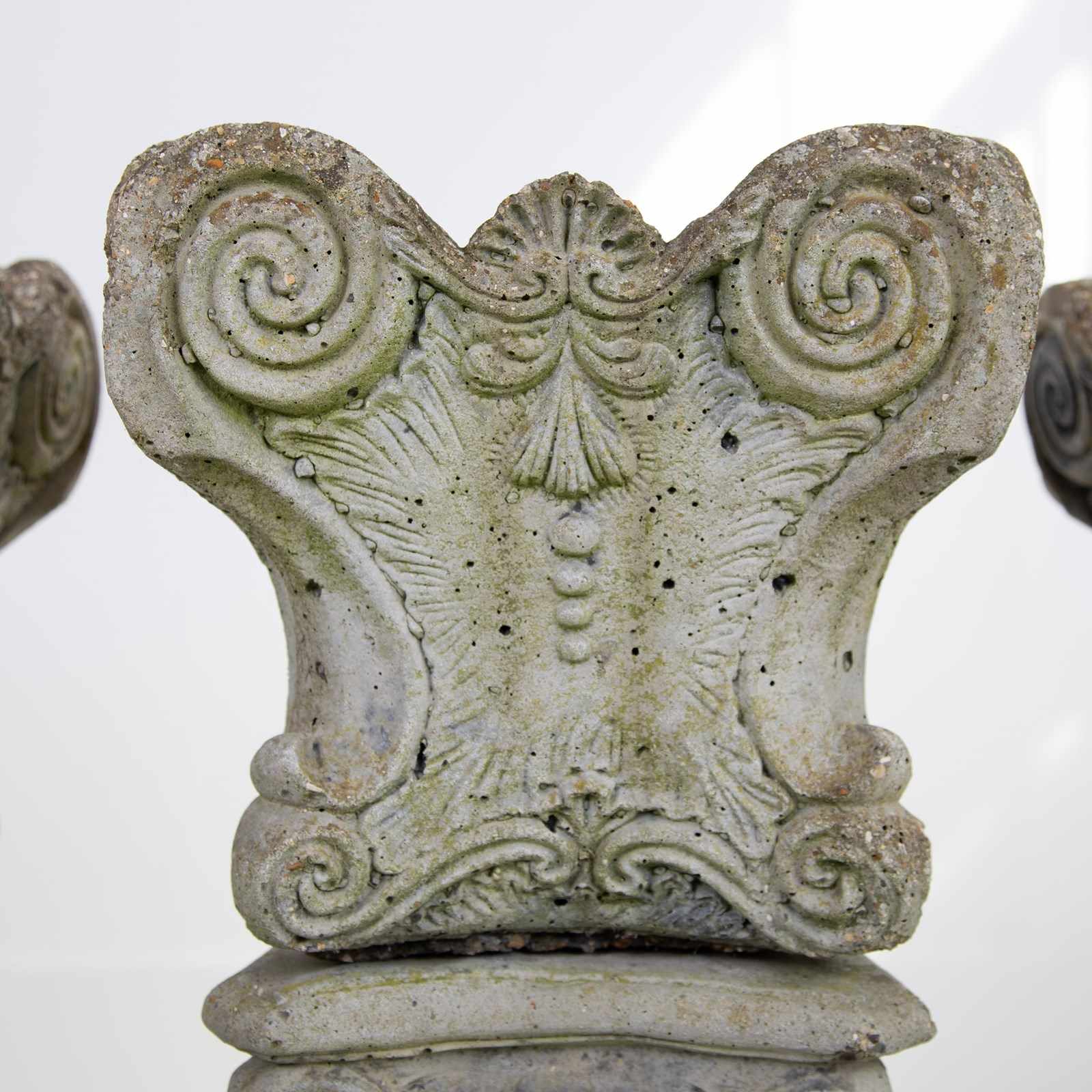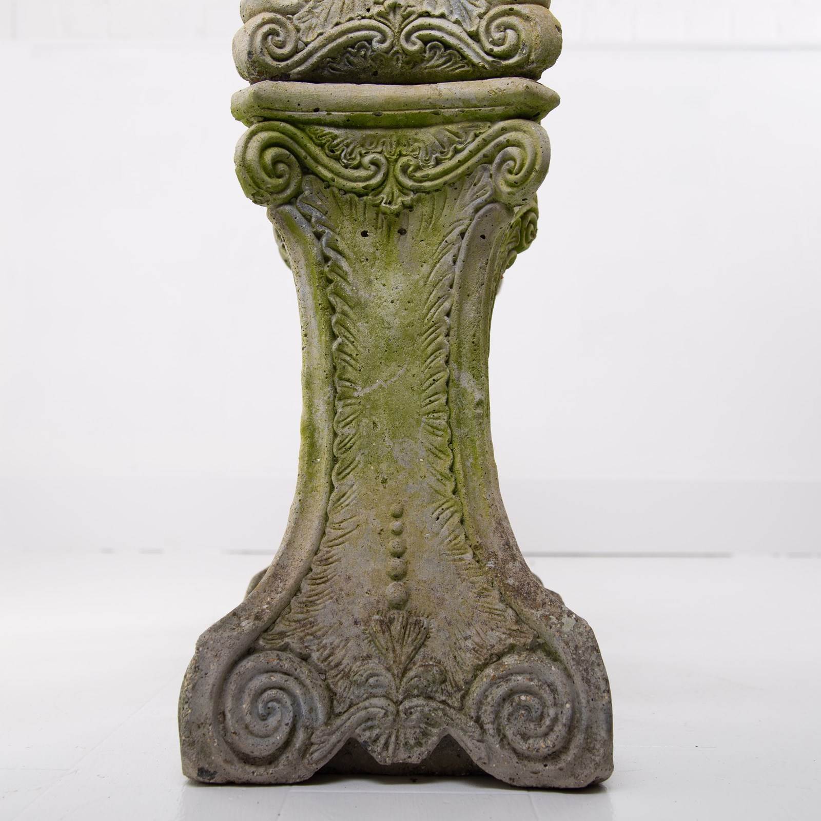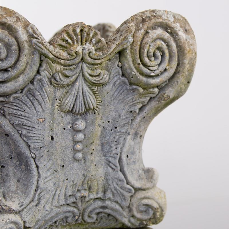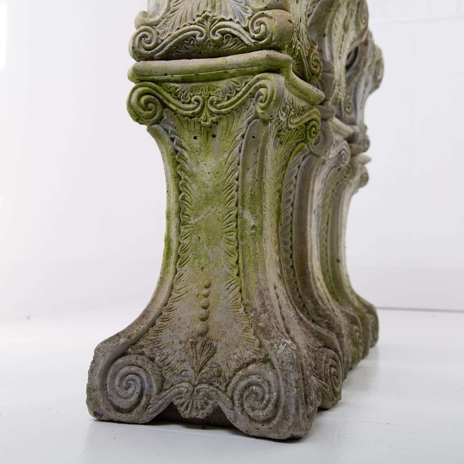 A highly ornamental and rather fancy set of 3 reconstituted stone planters with some good aging and patina. These are going to look super planted up for a patio, garden room or terrace.