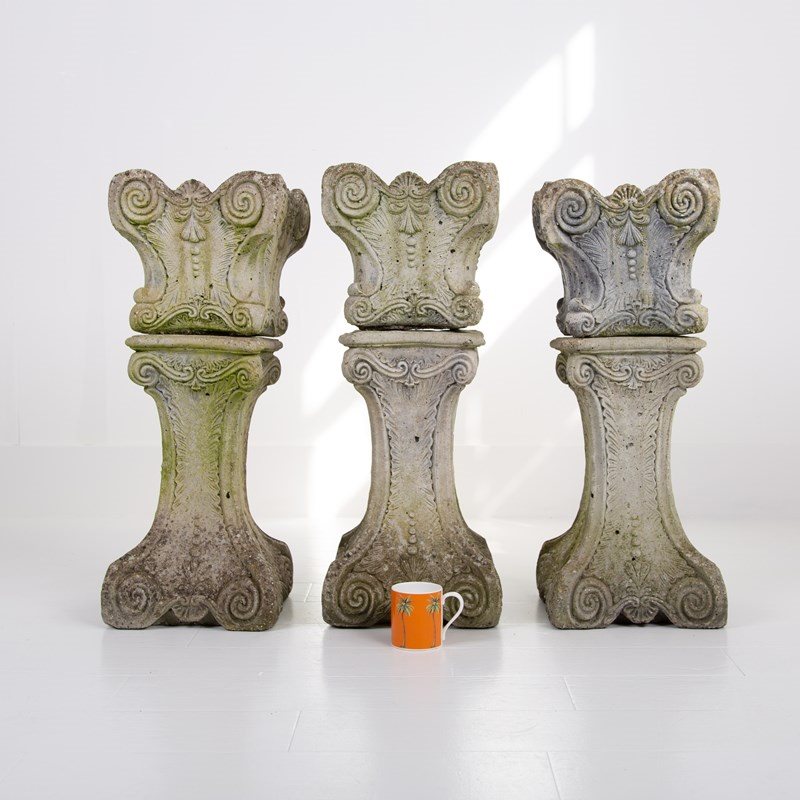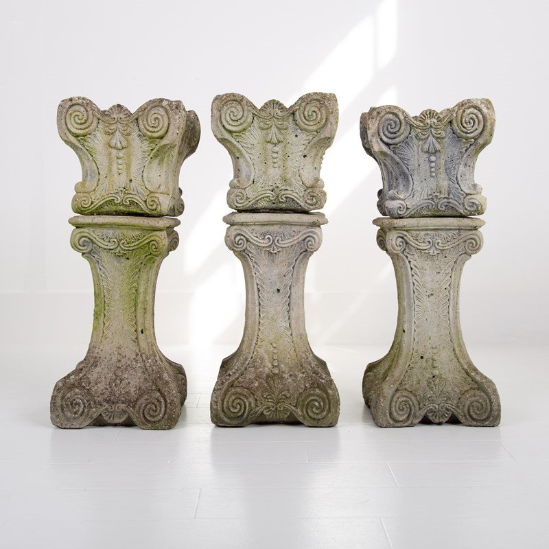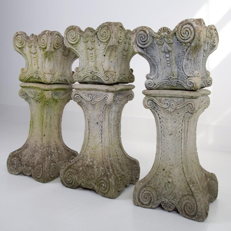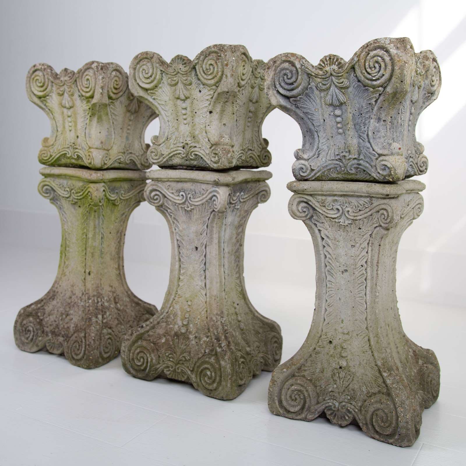 Set of 3 Mid Century Highly Decorative Planters on Plinths