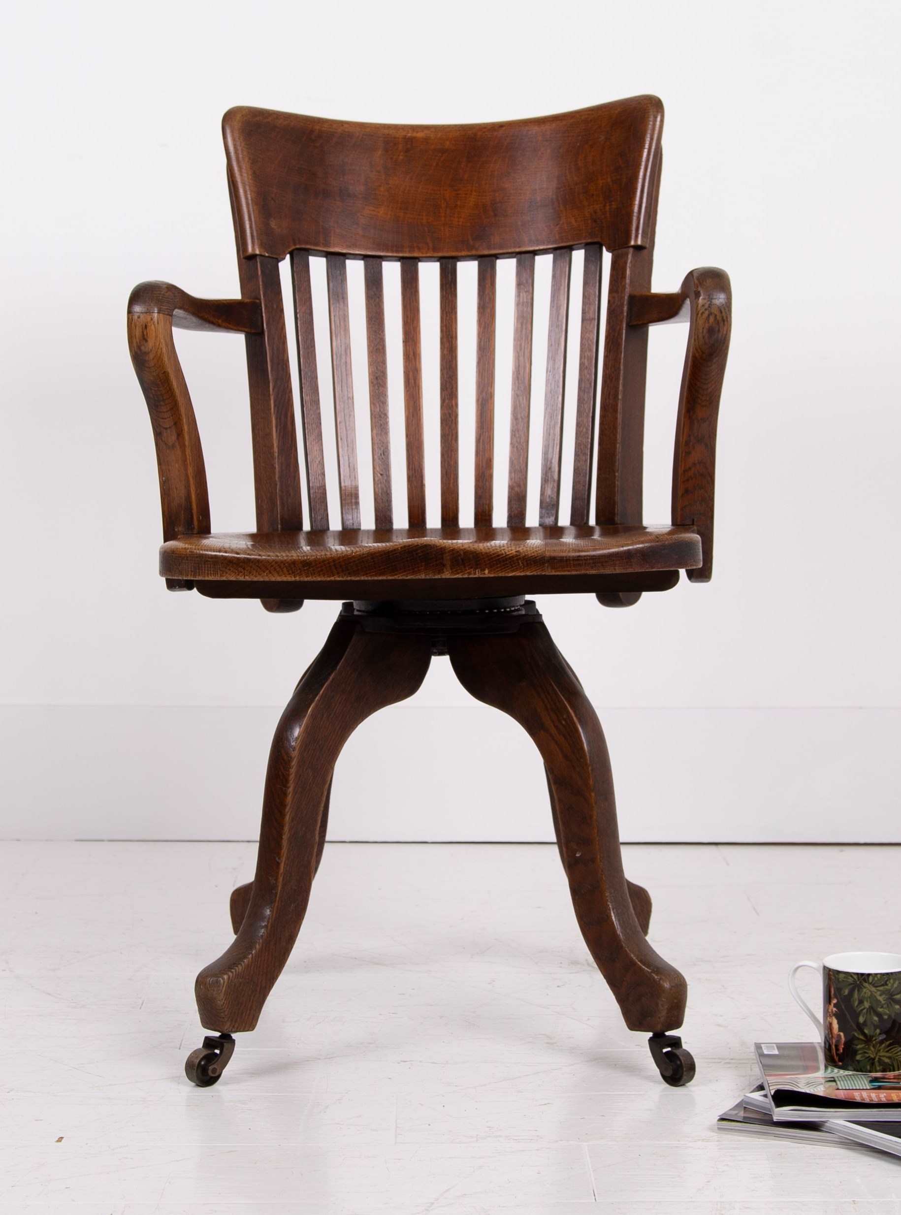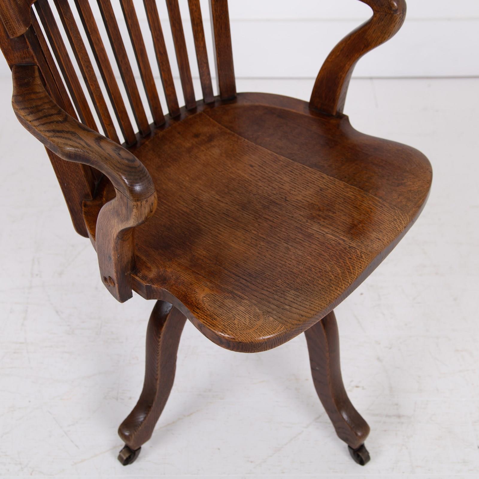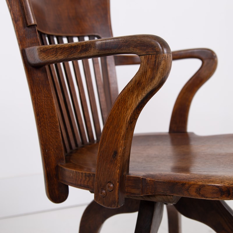Handsome Antique Oak Swivel Desk Office Chair C1920