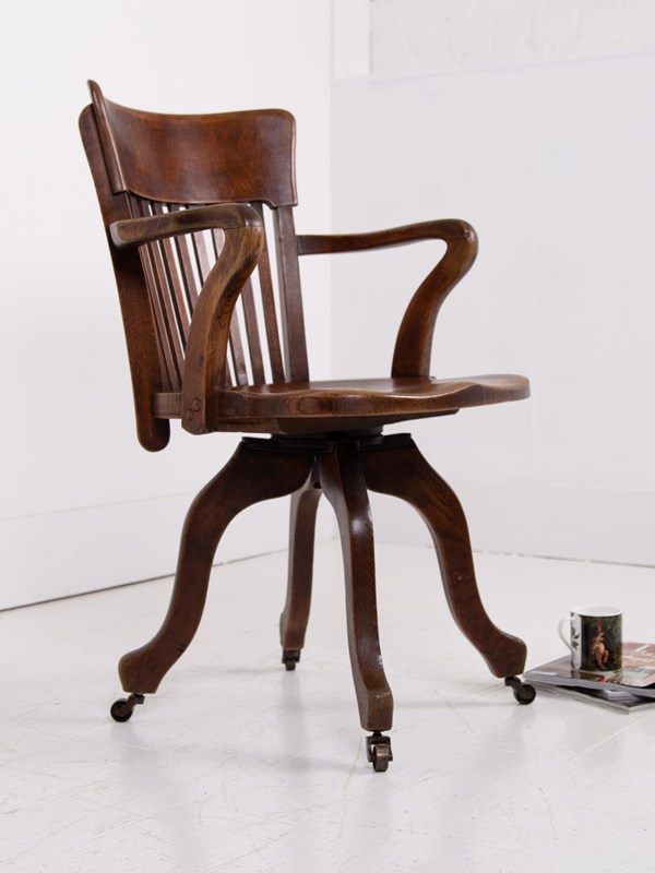 Antique Oak Swivel Desk Office Chair