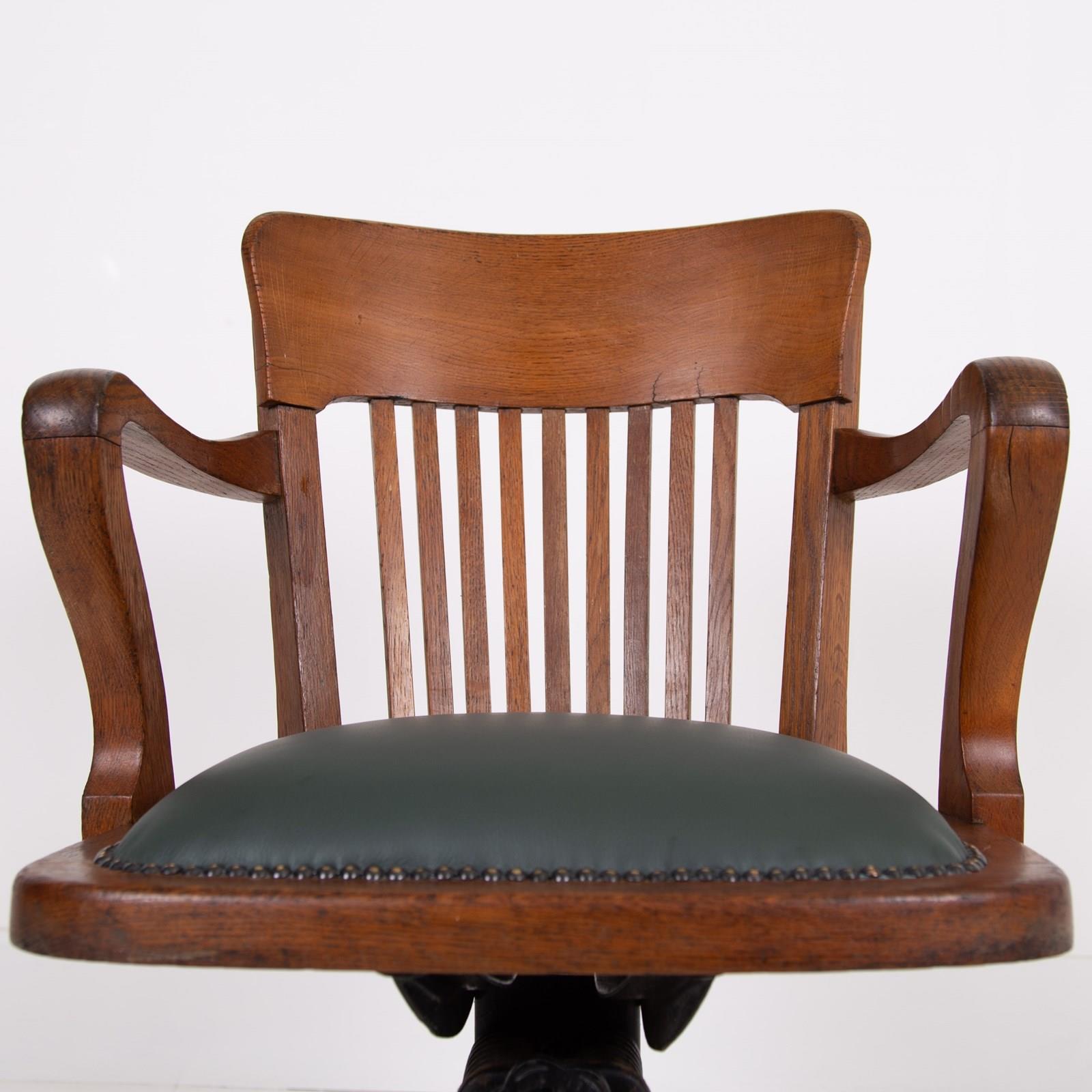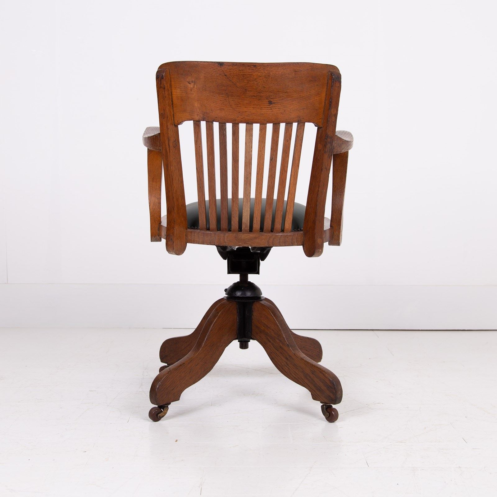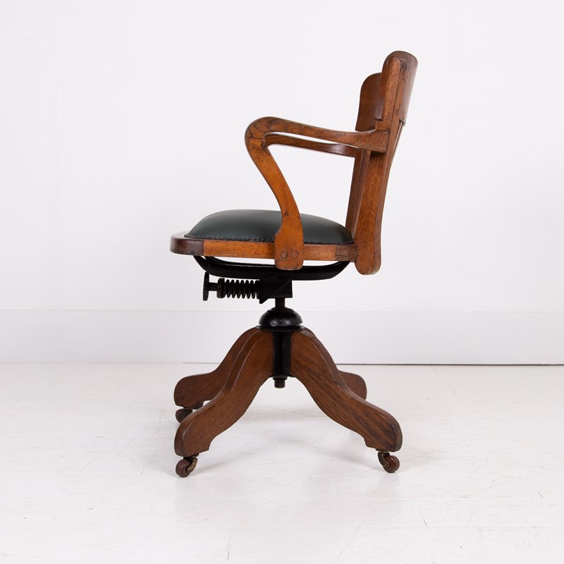 English Edwardian Antique Swivel Oak Office Desk Chair