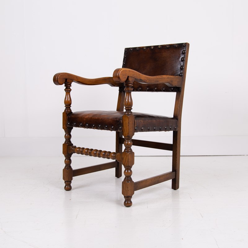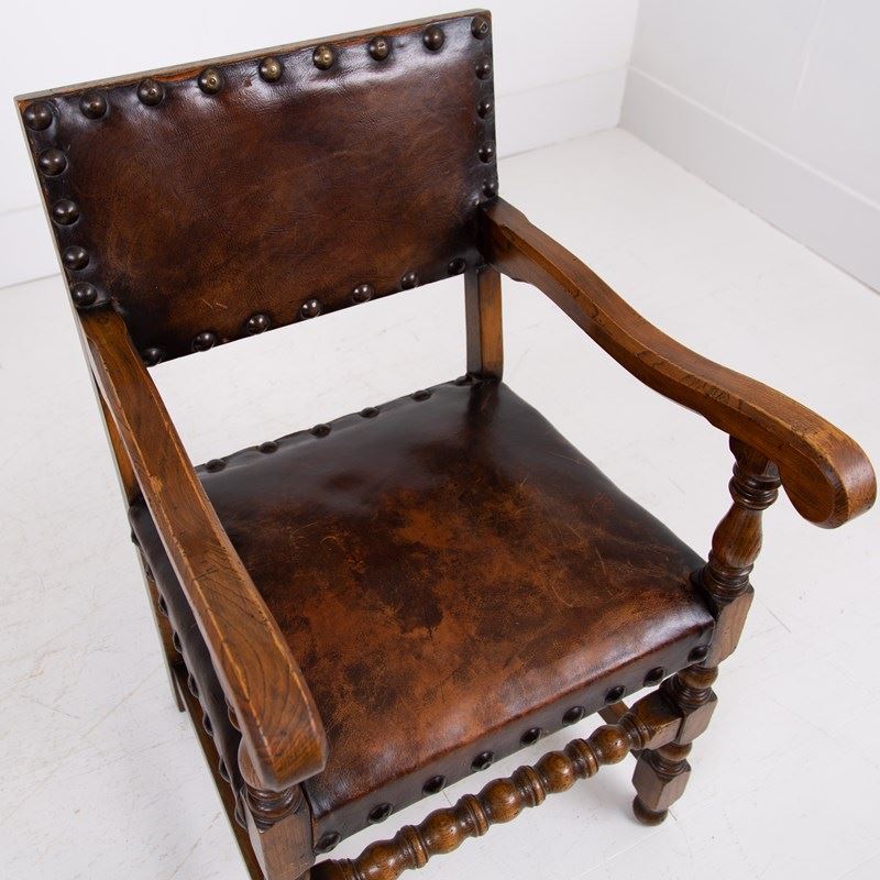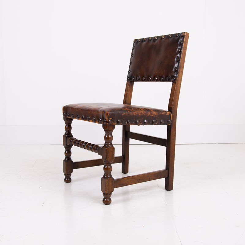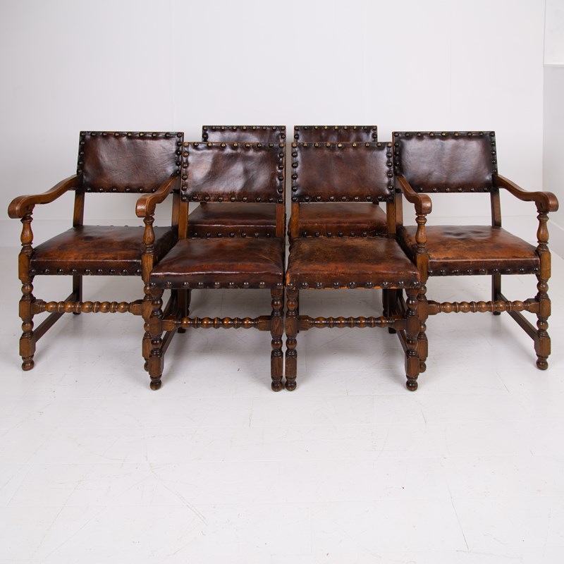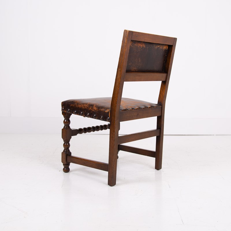 1930S Set Of 6 Oak And Leather Dining Chairs