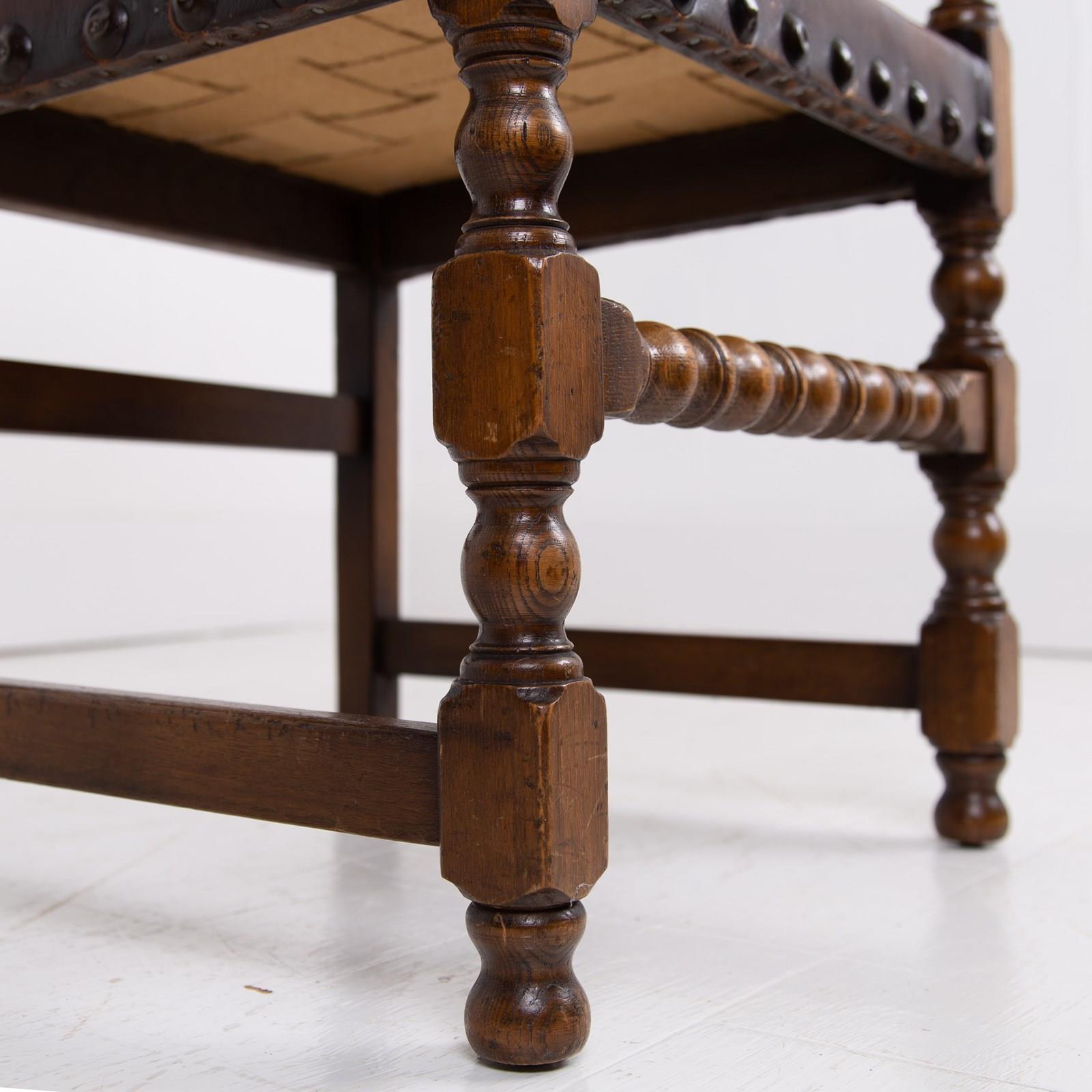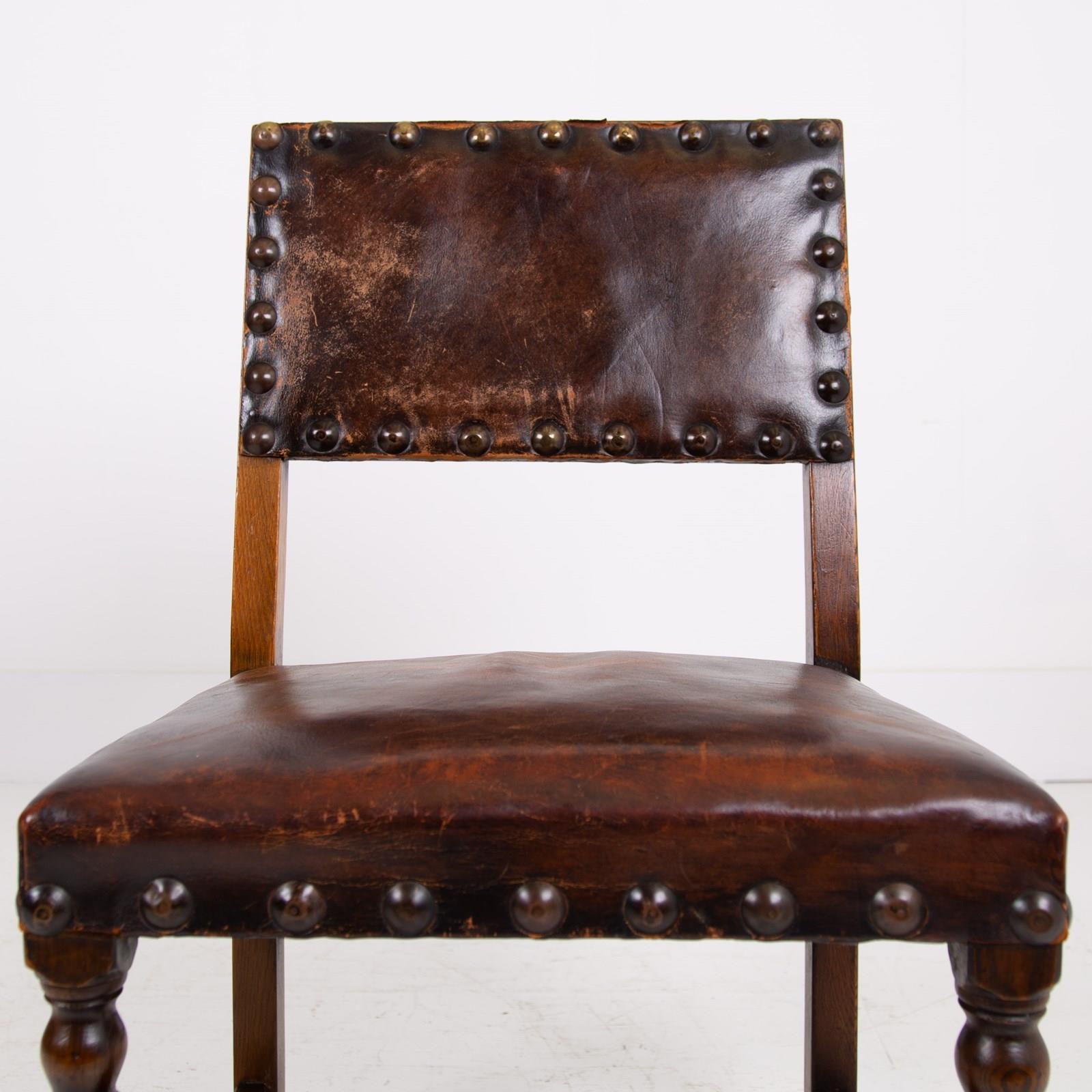 Handsome Antique 1930s Set Of 6 Oak And Leather Dining Chairs