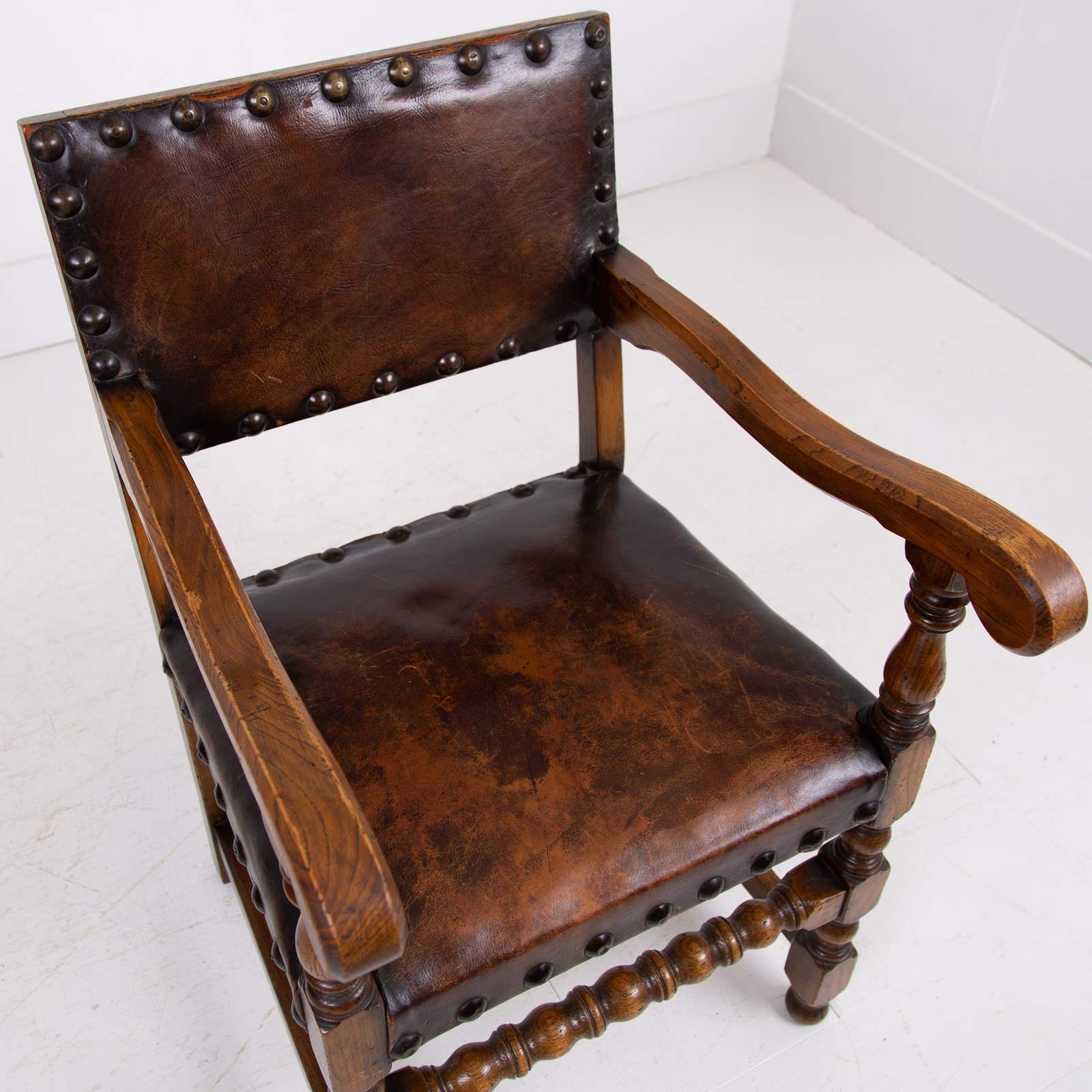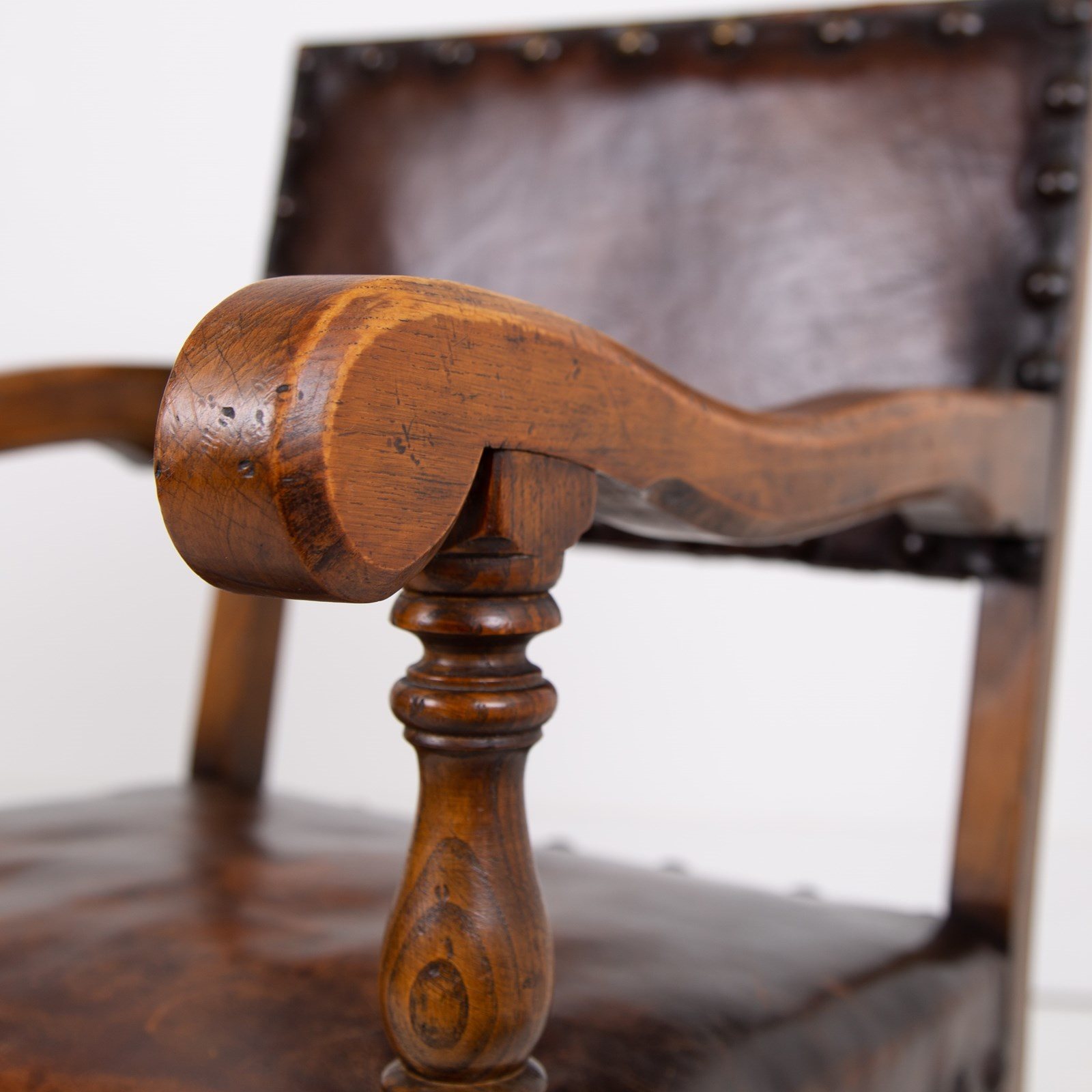 The set of 4 plus 2 carvers sit in a very similar condition. The heavy set and carved frames have sensible and desirable historic wear and the leather seats are showing some pleasing wear with no holes or splits to seats or backs, one tiny nick on one corner of one seat and all offering good support with tight webbing and natural filling - all in good order. We have ensured the set is ready to place and use.
