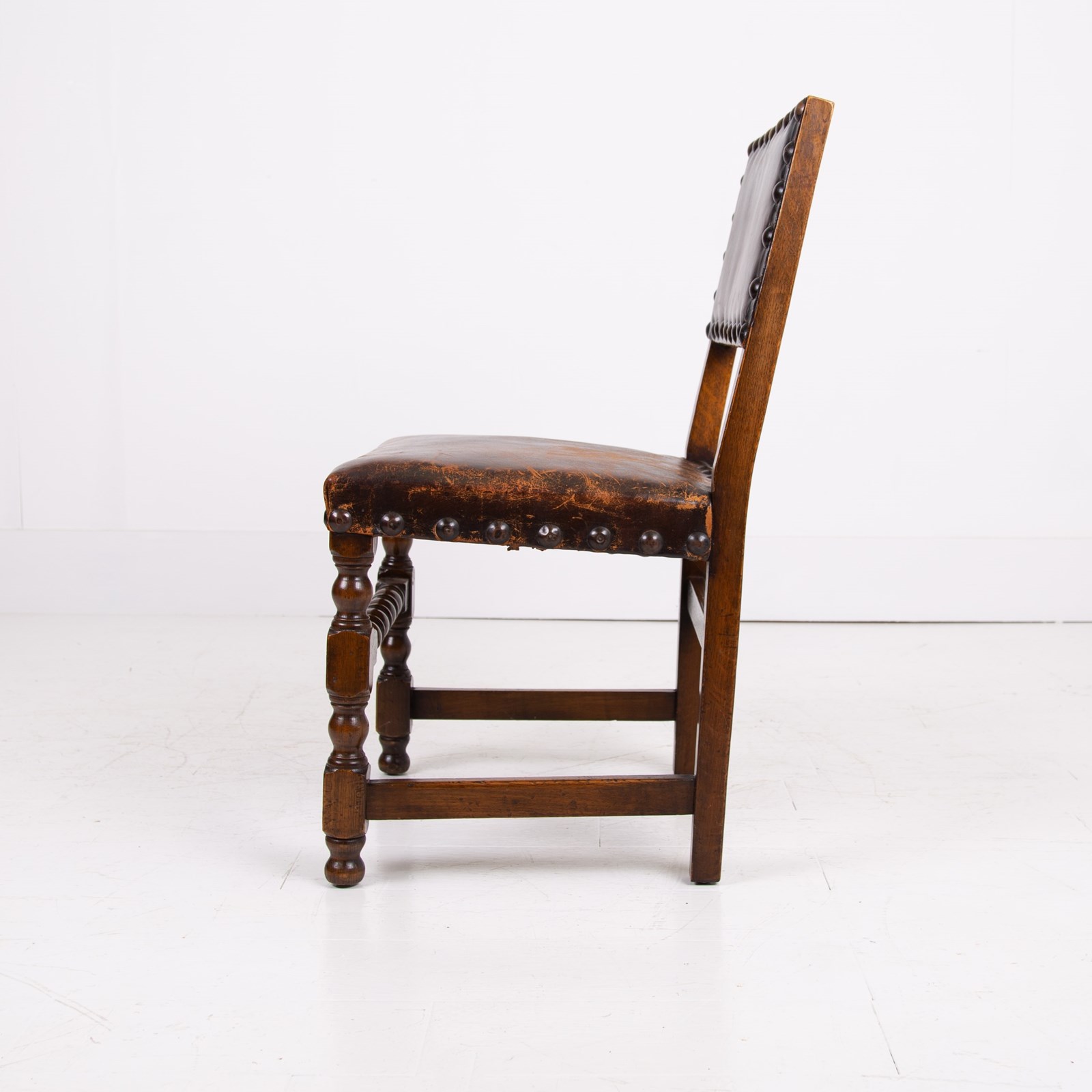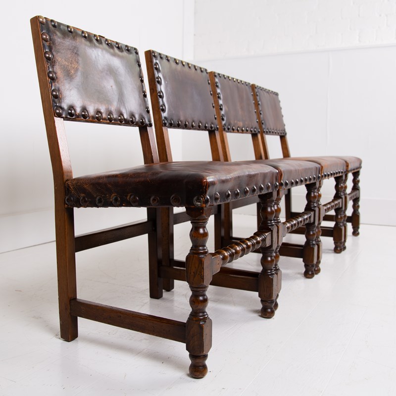 A good set of early 1930s English oak and leather dining chairs which are going to look fab in the right space.