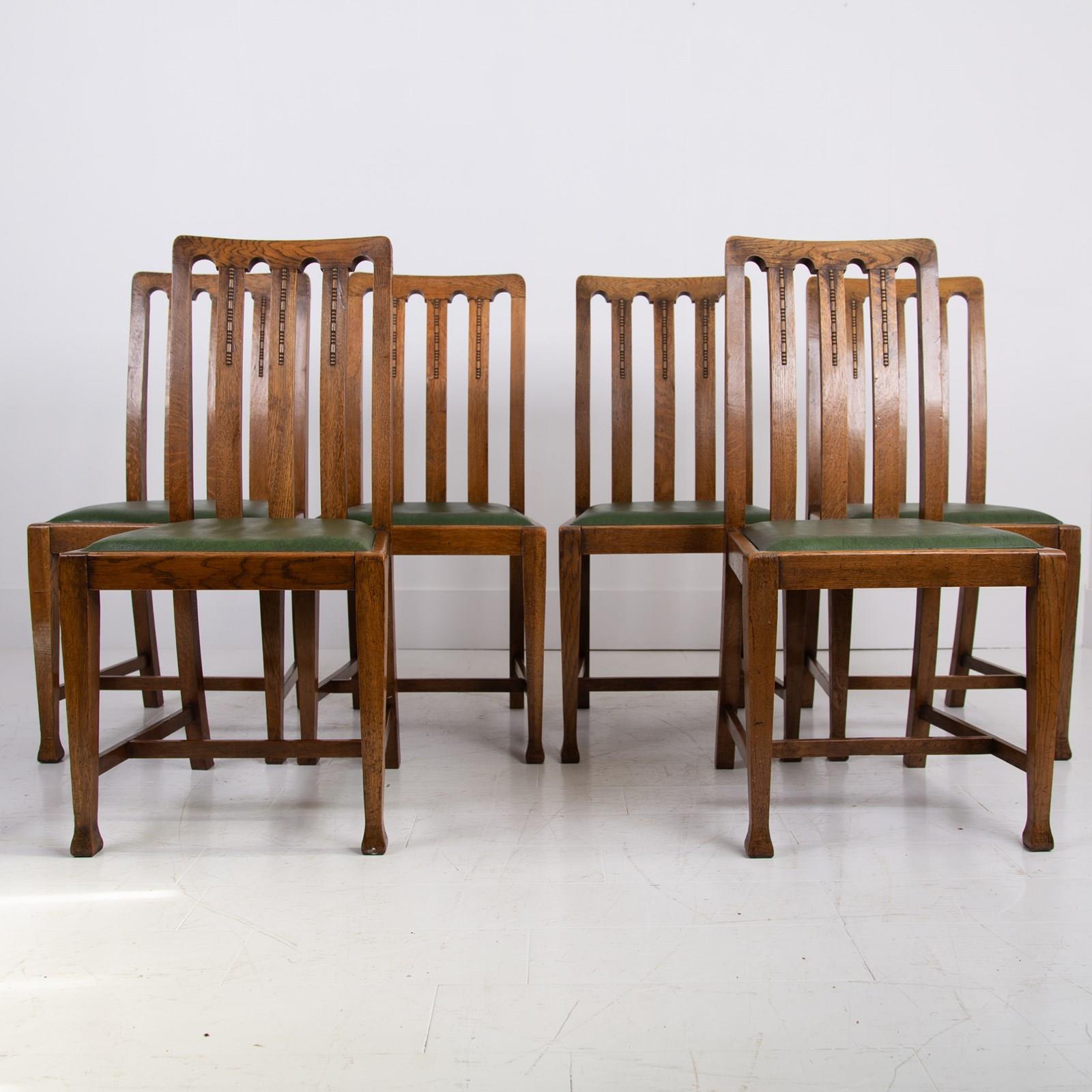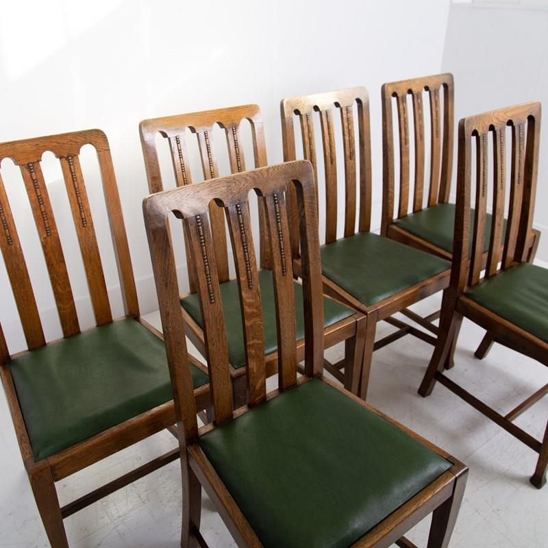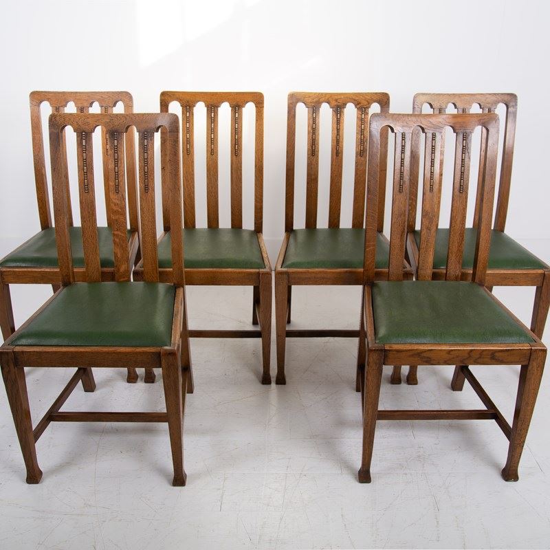 Set of 6 Oak Arts and Crafts Dining Chairs 1915