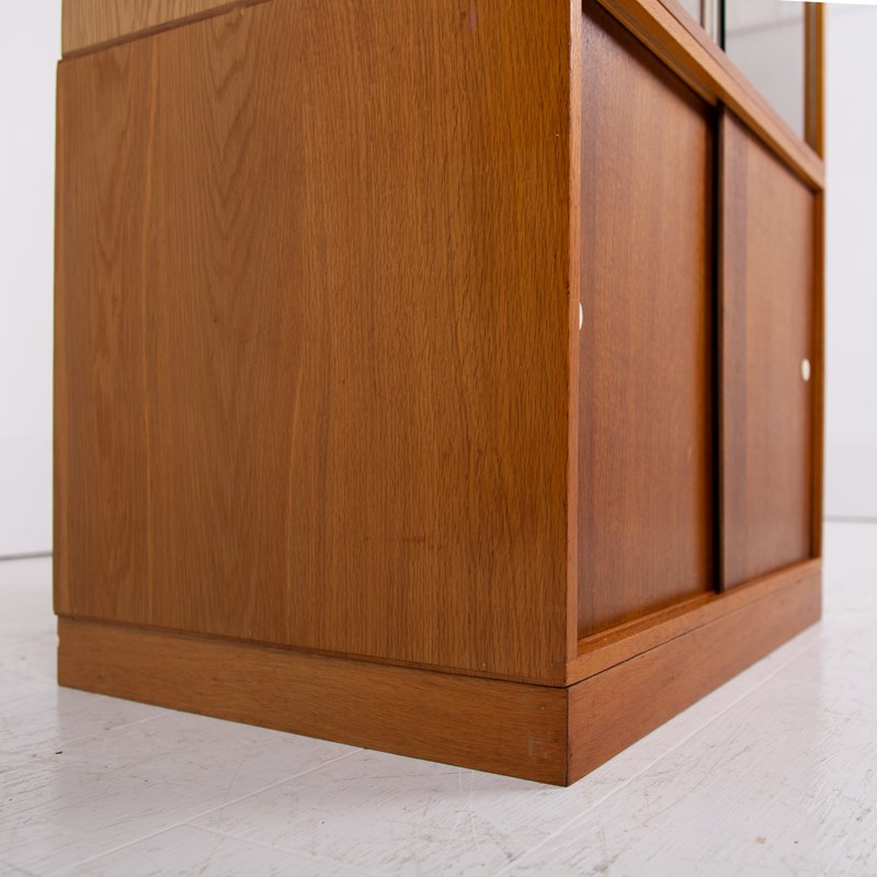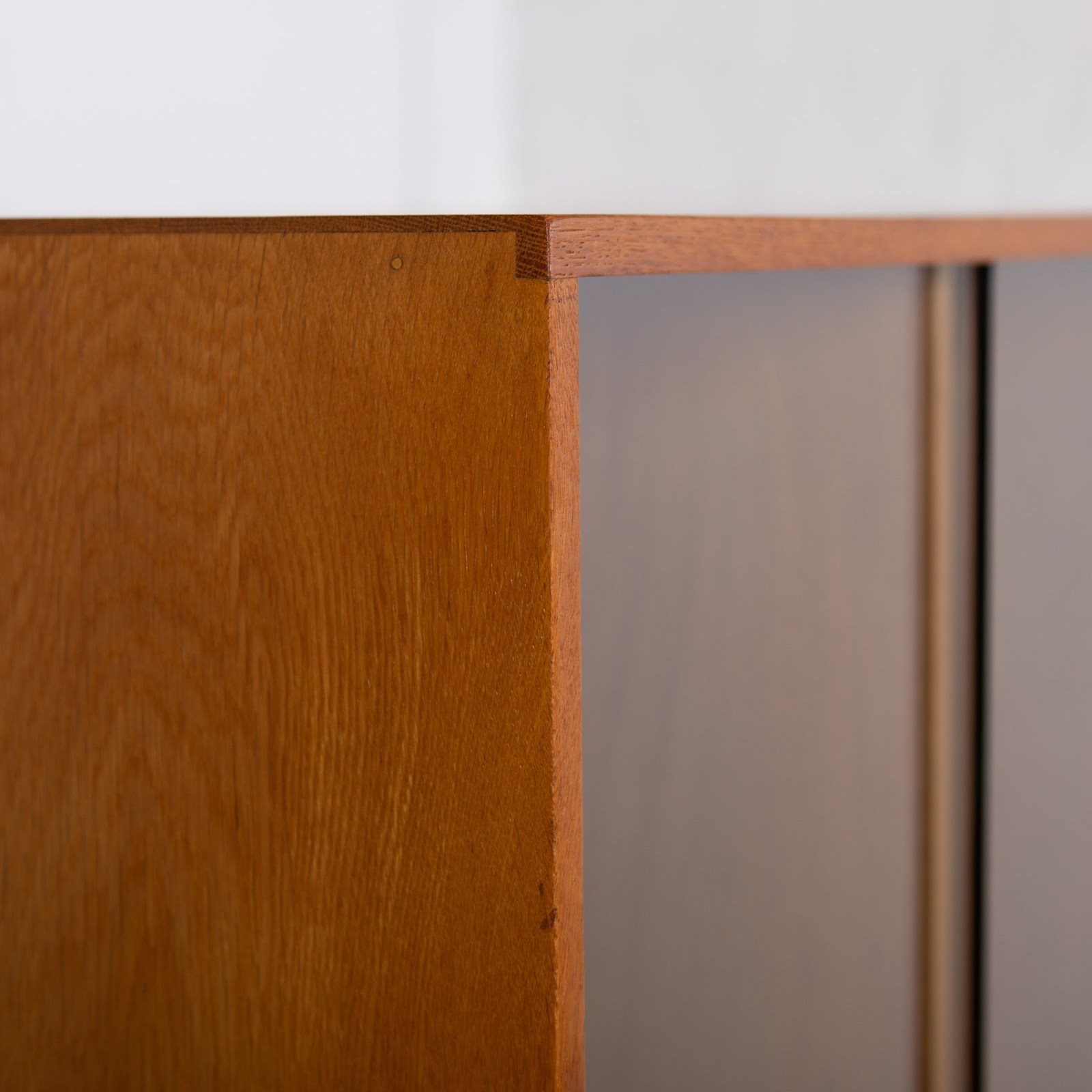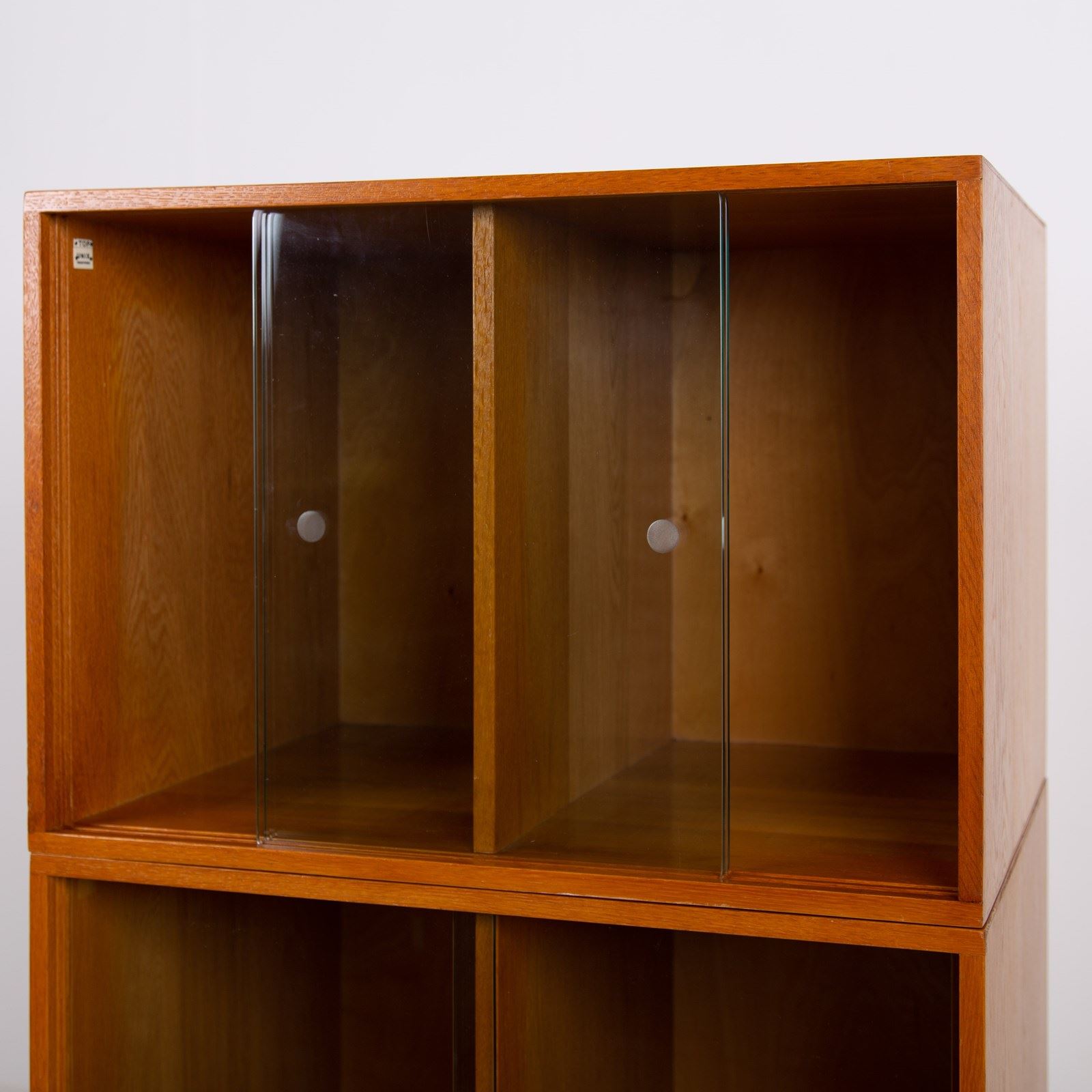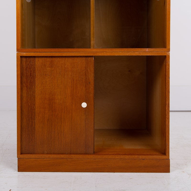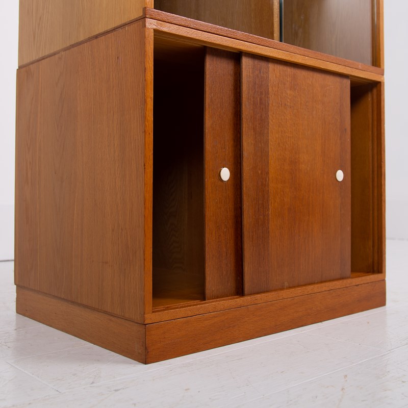 The design is perfect and effortless in looks - we have 3 oak sections, two with two sliding glass doors and one with a pair of oak sliding doors which fit records perfectly. Condition is good with light wear but no repairs or faults. The unix units on this one separate into 3 and a base for easier moving and placing.