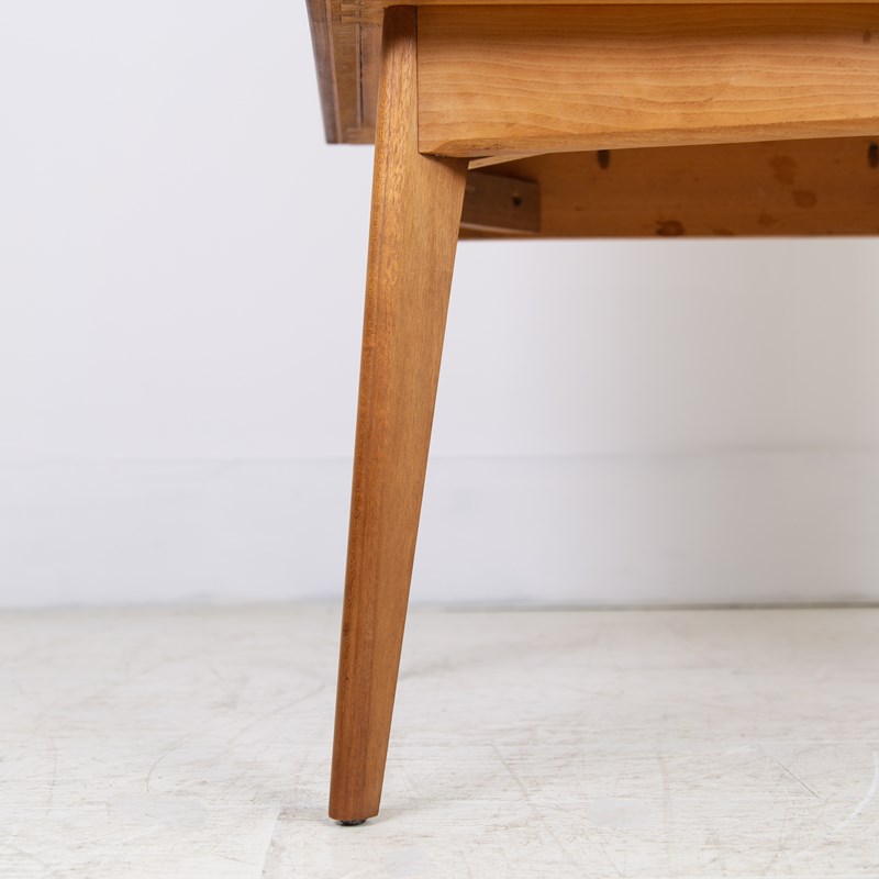 All the trumpet shaped original knobs to the drawers are in situ. The drawers are running as they should and the frame is firm. We have ensured the piece is clean, tidy and ready to place. Having spent a session in our workshop it's glowing well with lovely clear grain and only showing light sensible day to day wear, nothing nasty.