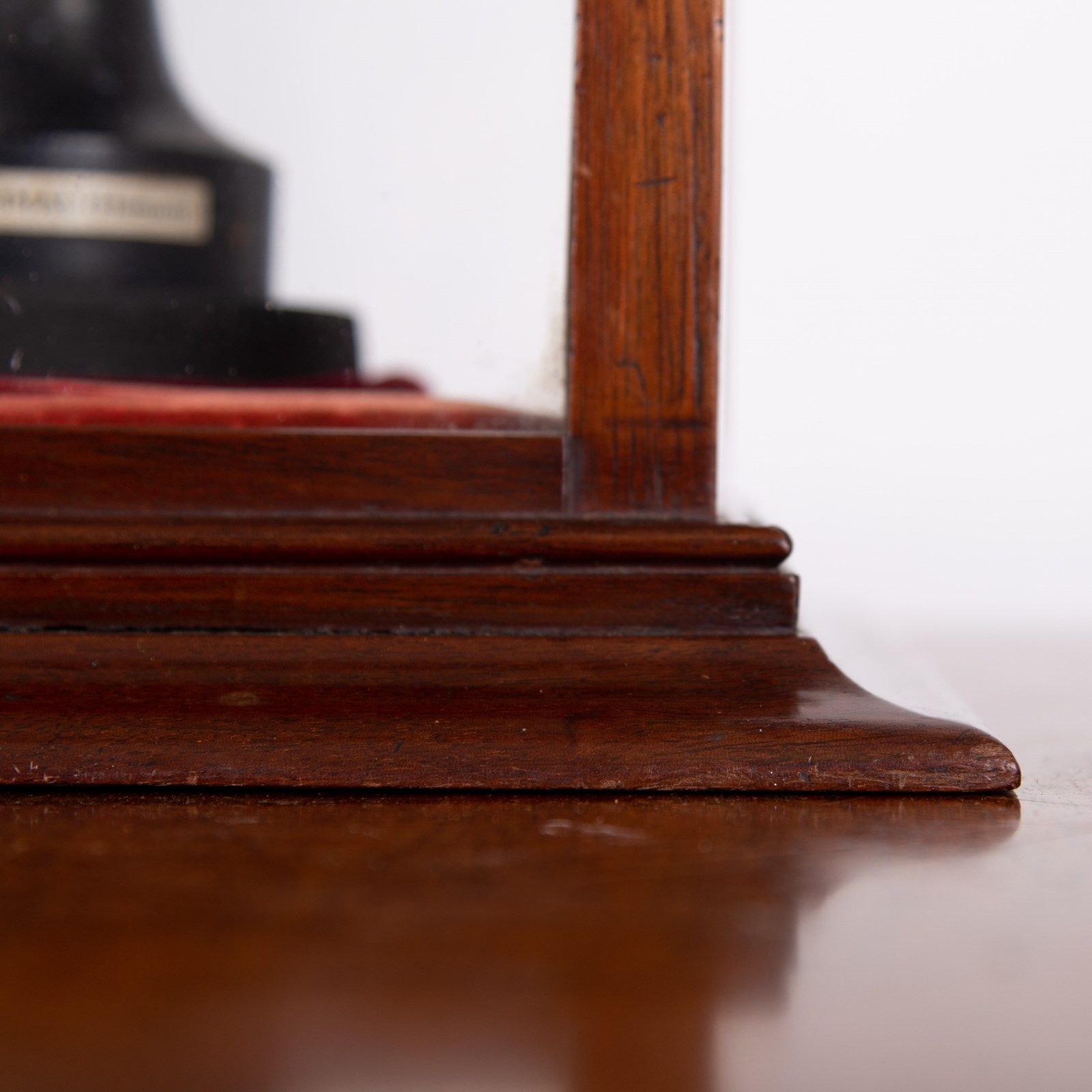The plaster heart which separates into 2 sits on its little stand which in turn sits on a time worn velvet base. The display case is of very nice quality with no cracks or repairs to the original glass. We have surface marks and a little stable split to the case. The top lifts off in order to access and lift the heart out of its case. The plaster heart has age marks but nothing nasty or off putting.