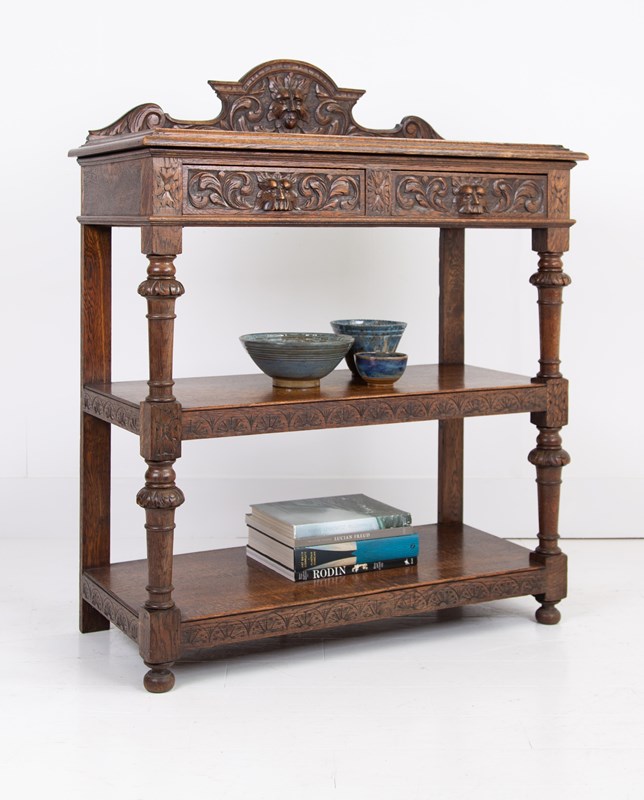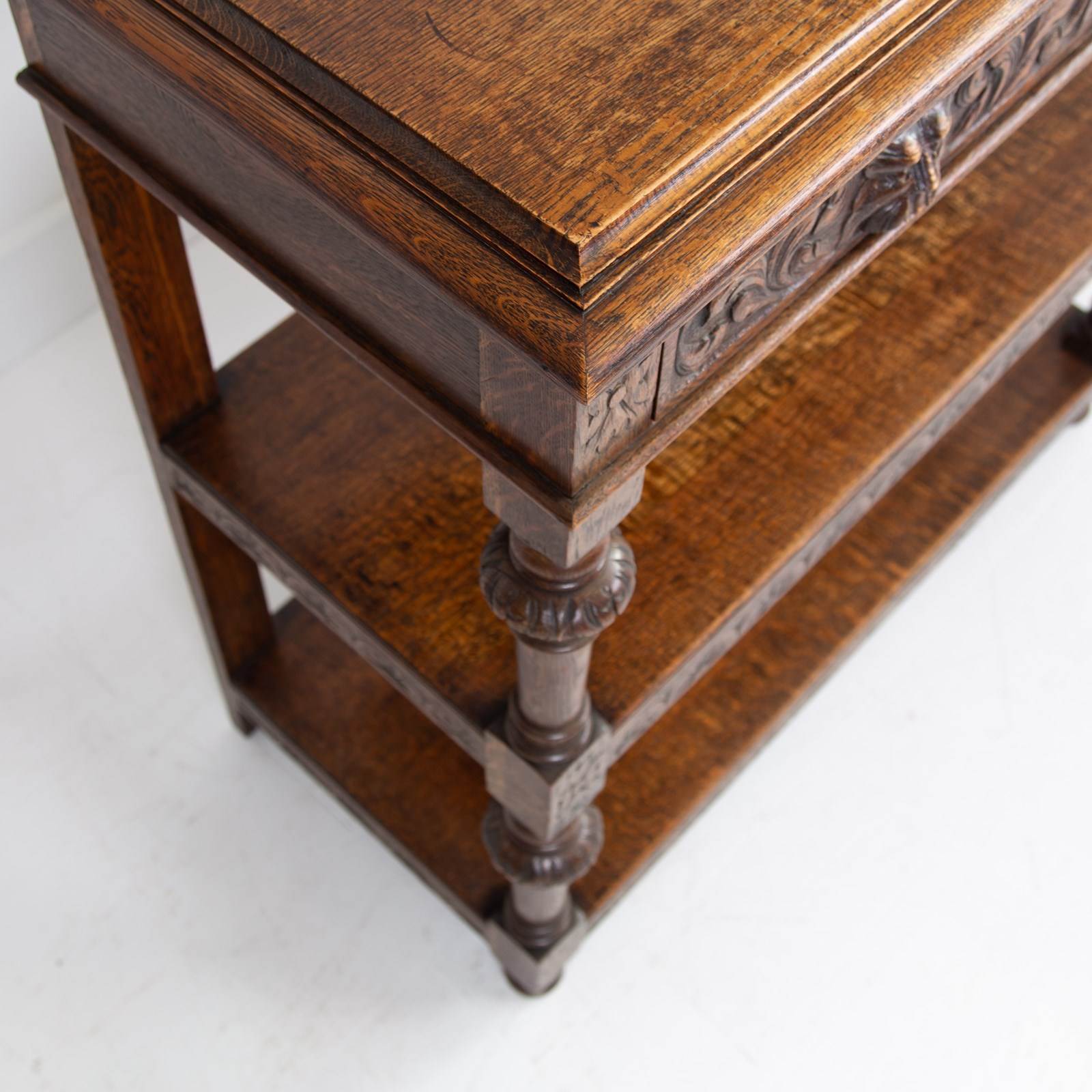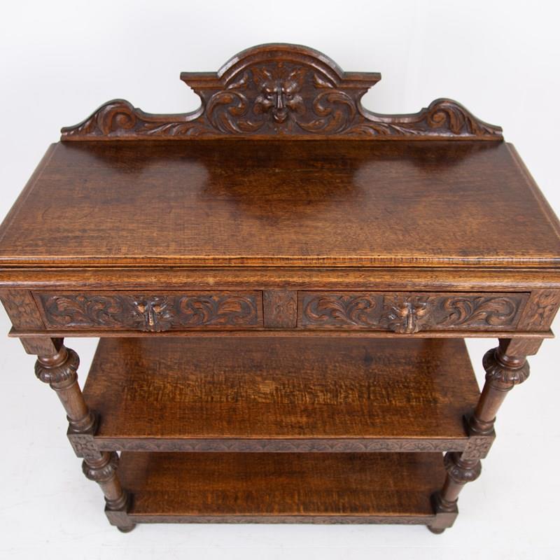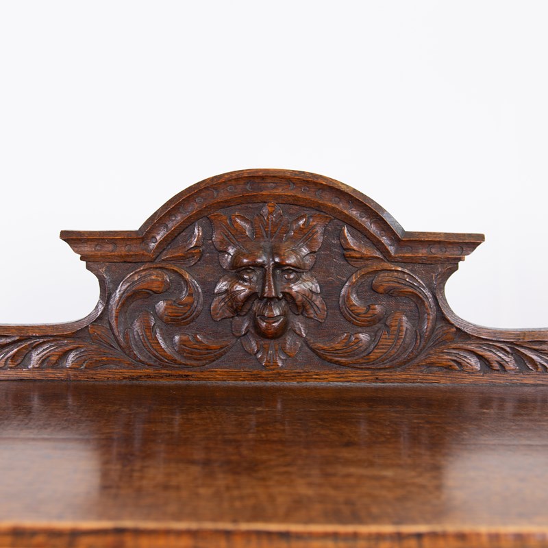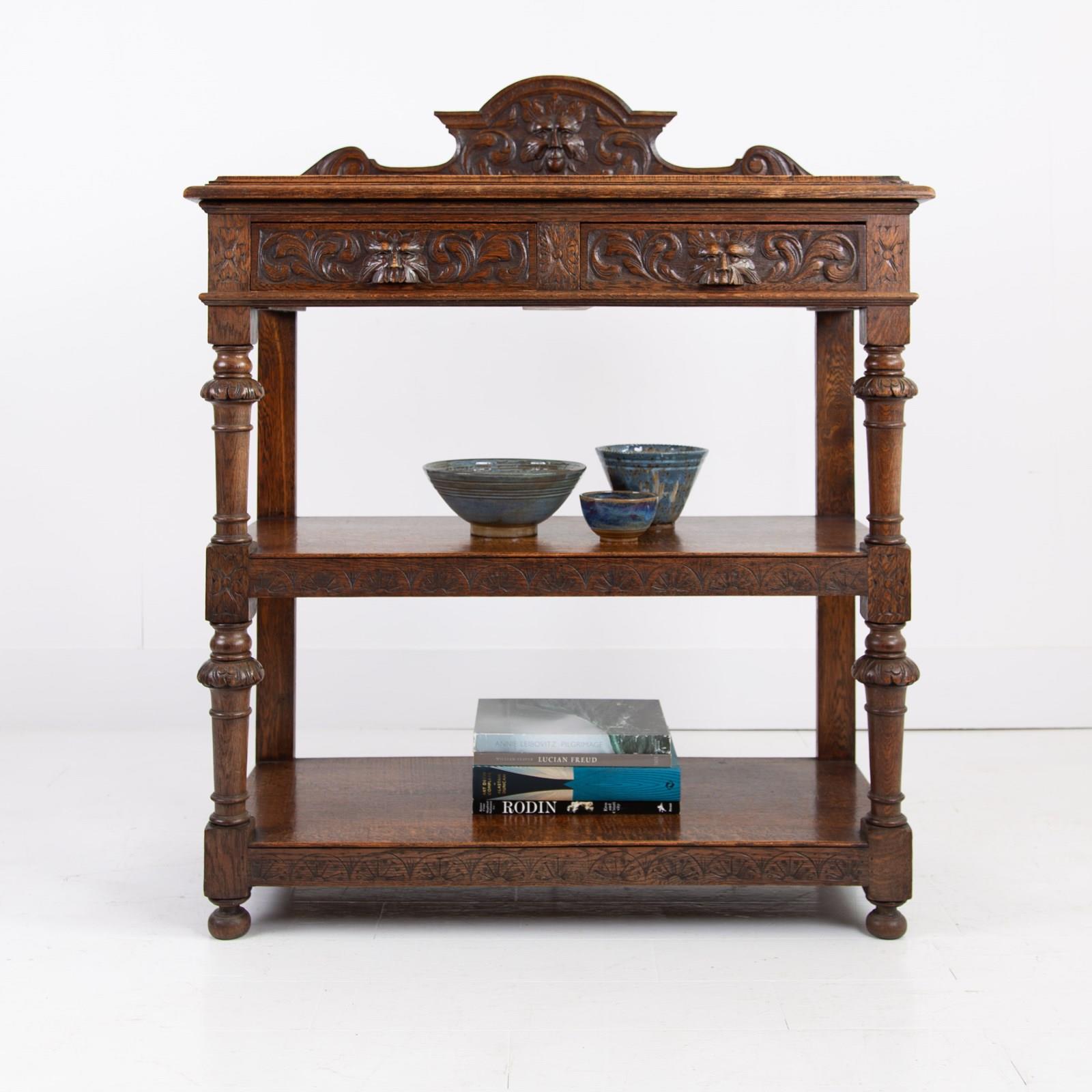 Antique English Carved Oak Green Man Buffet Dumbwaiter