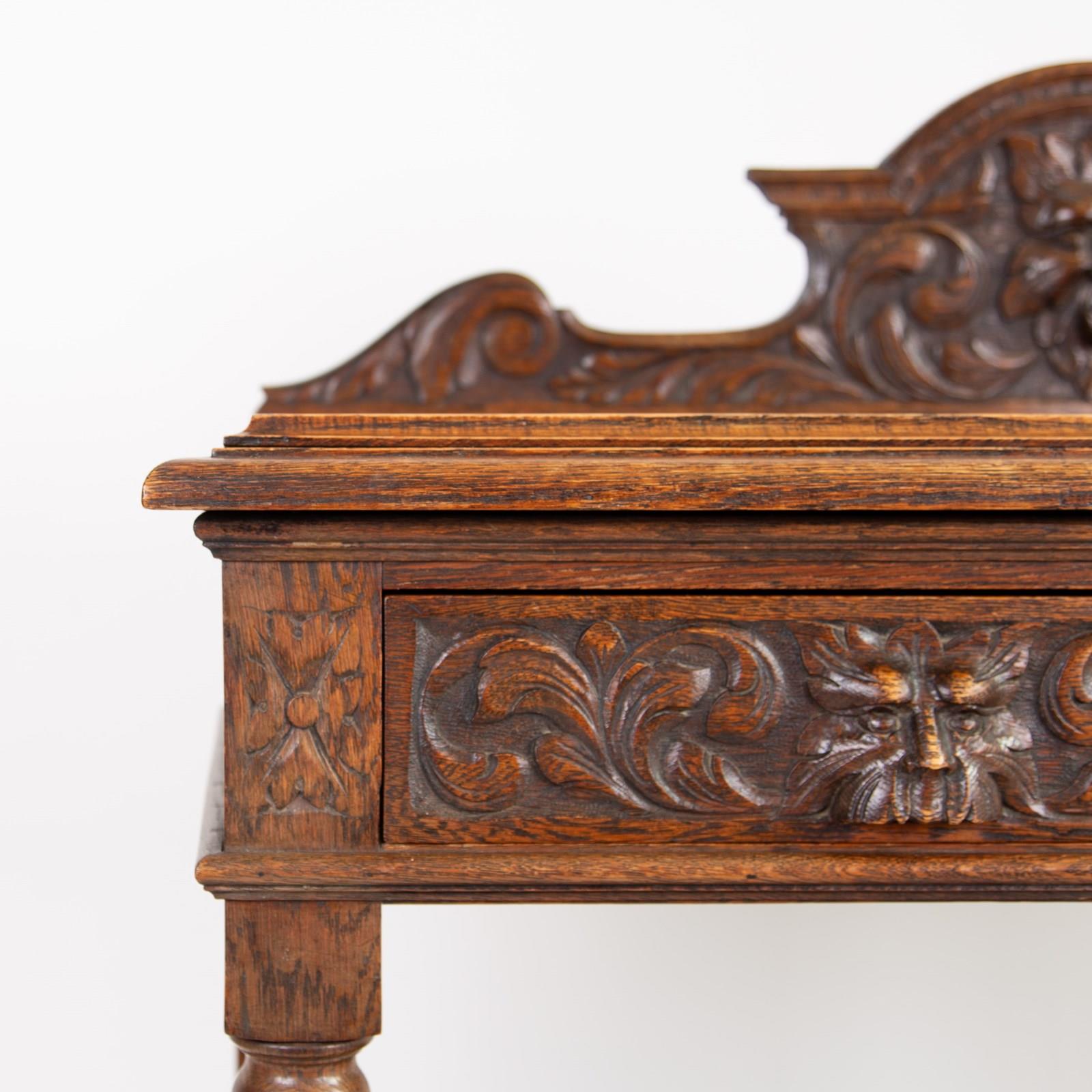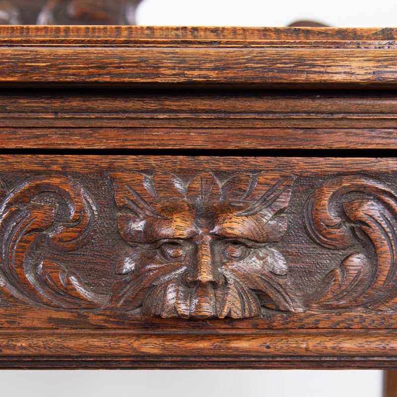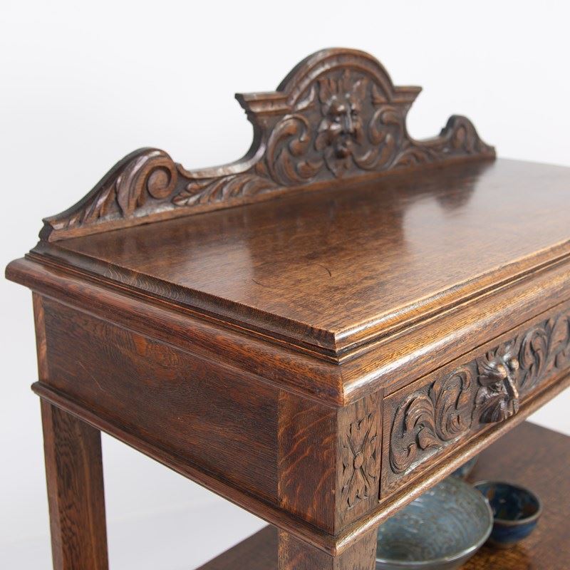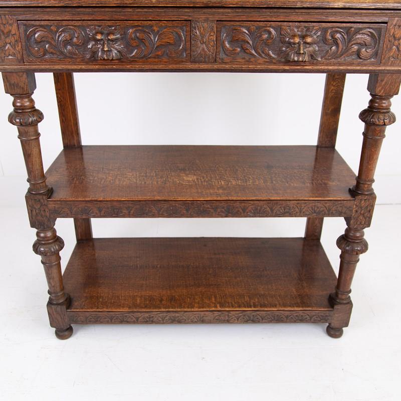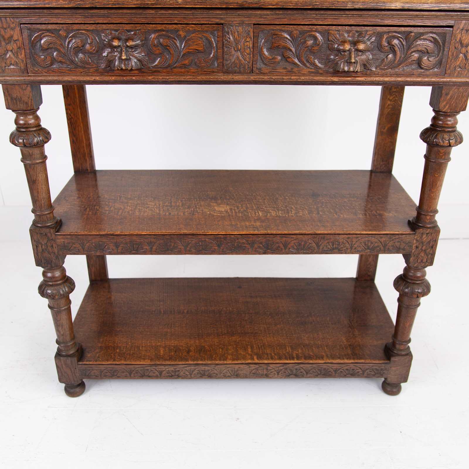Antique English Carved Oak Green Man Buffet Dumbwaiter