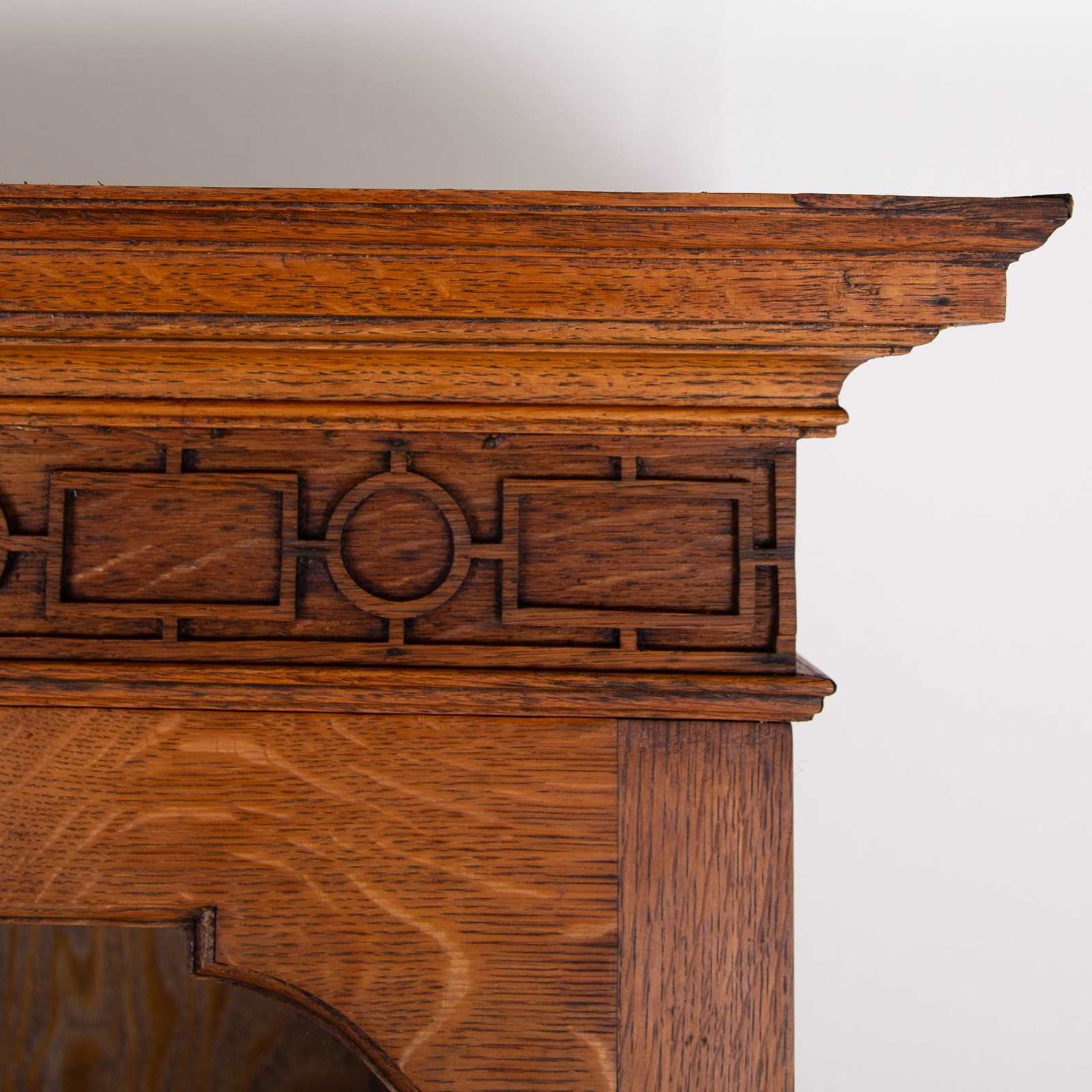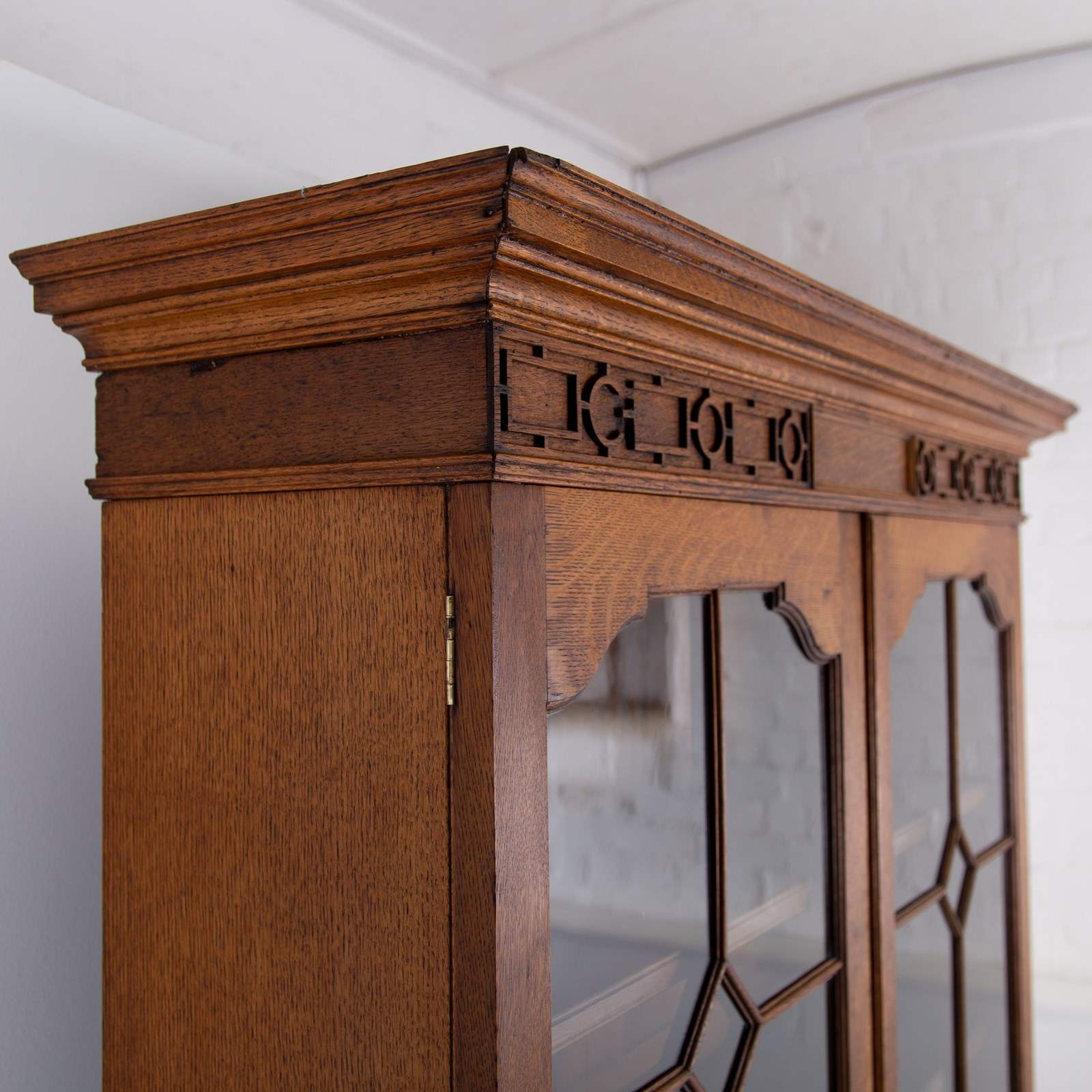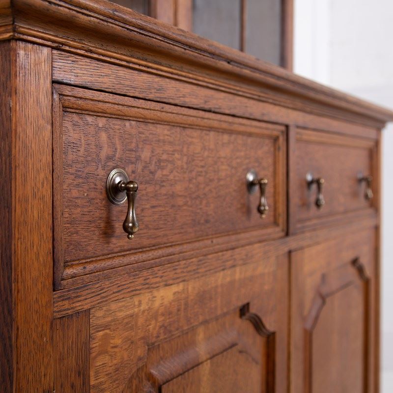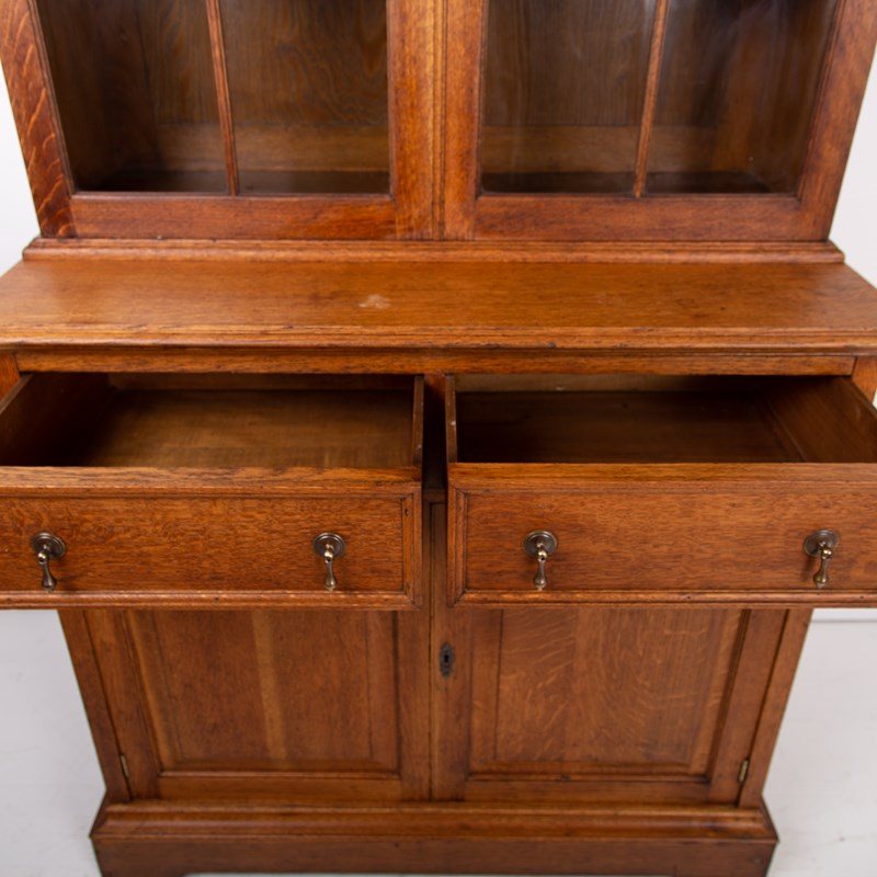Superior Antique Oak Glazed Bookcase Cabinet C1910