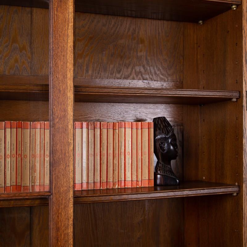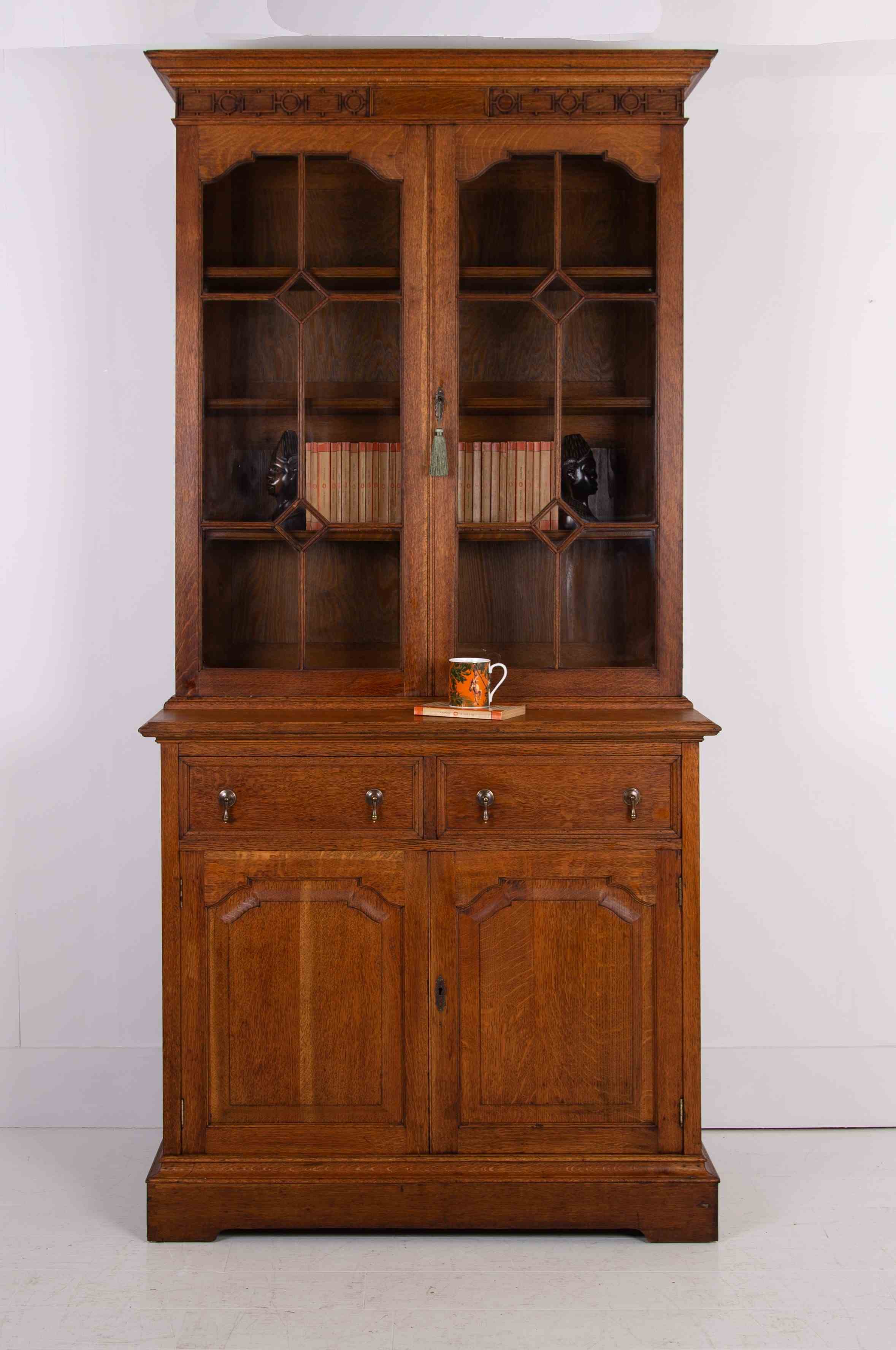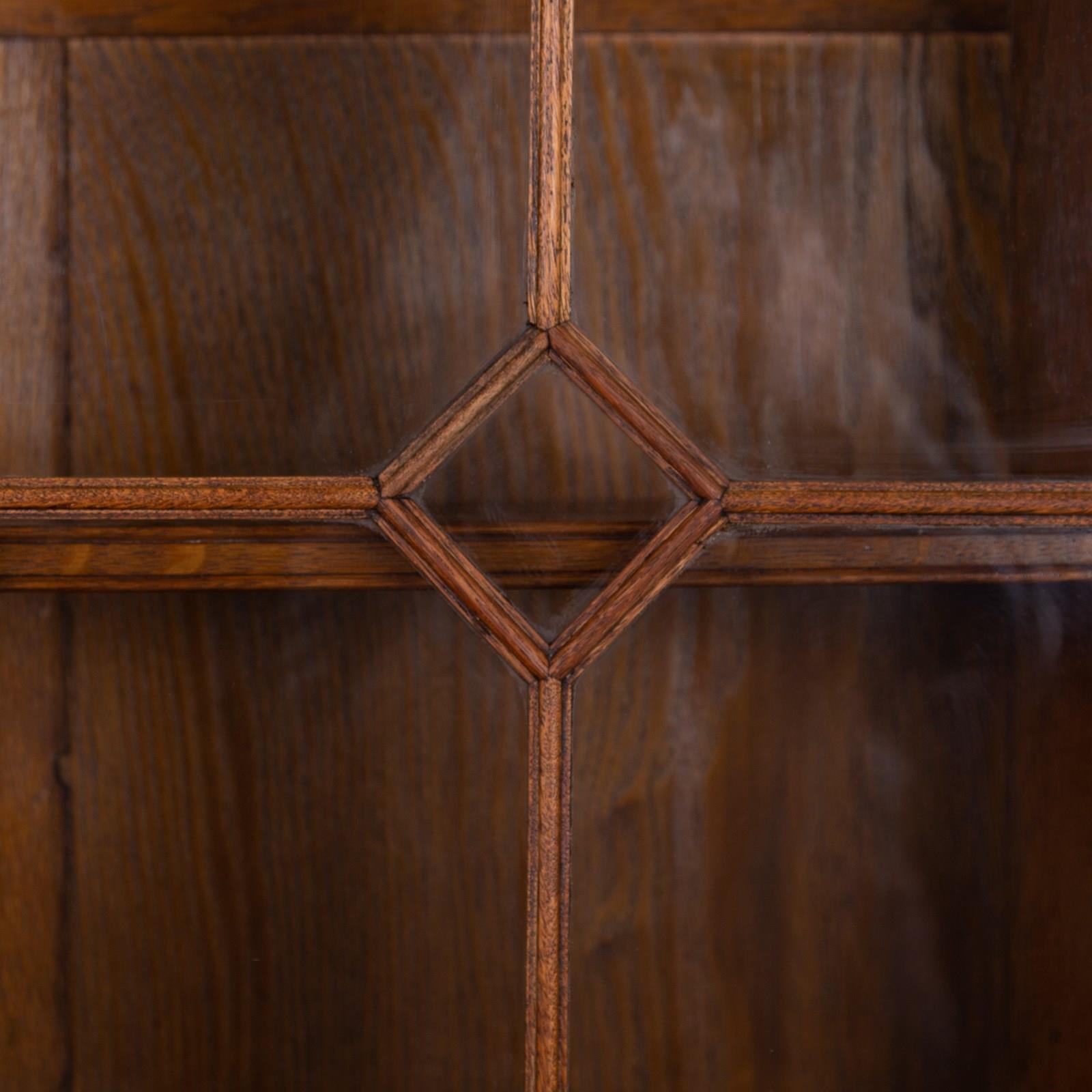 A fine English oak glazed bookcase/cabinet.