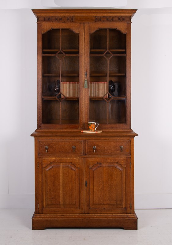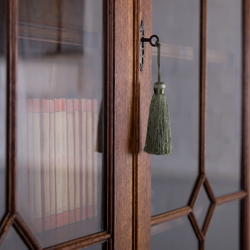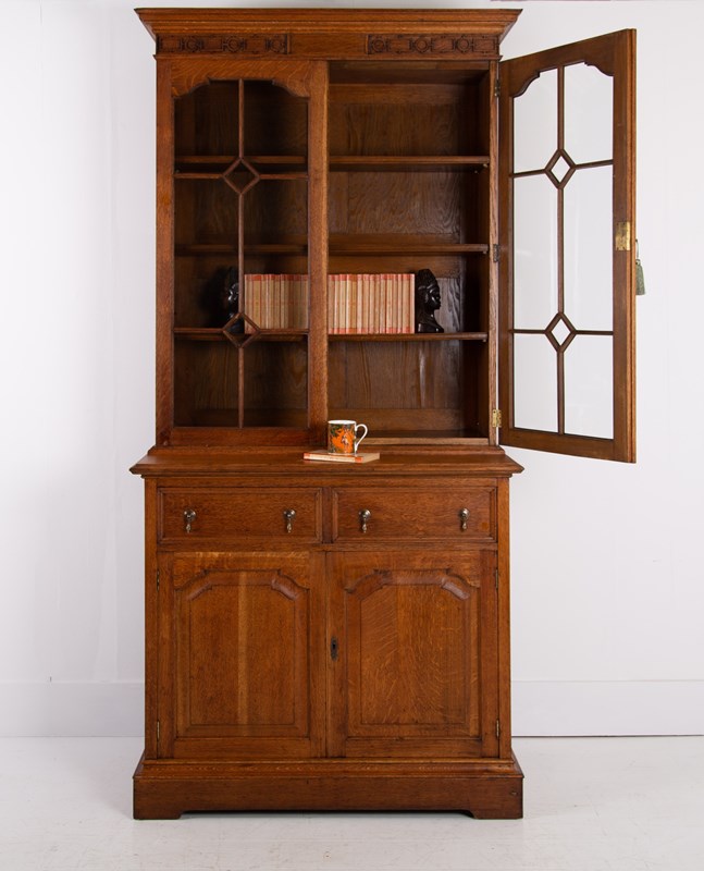 Antique Oak Glazed Bookcase Cabinet C1910