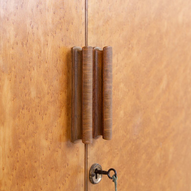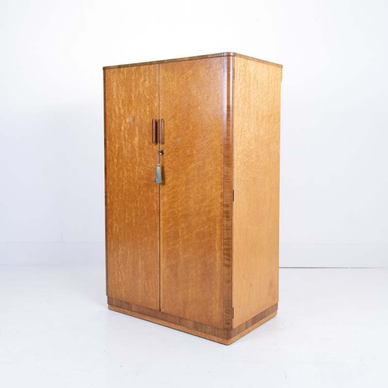 Super quality and classic Art Deco design, we have a birds eye maple cabinet/cupboard in lovely original condition with the bonus of a working lock and key. It is of sensible proportions and would fit into so many spaces in a period home or modern apartment.