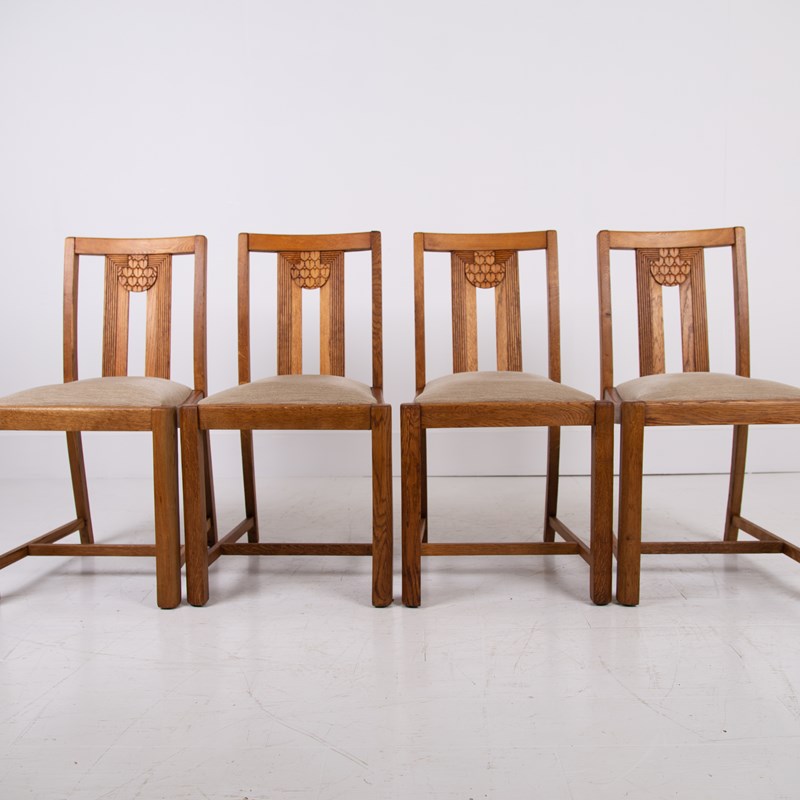 Art Deco Oak Dining Table and Four Chairs Gomme C1930