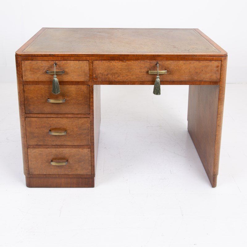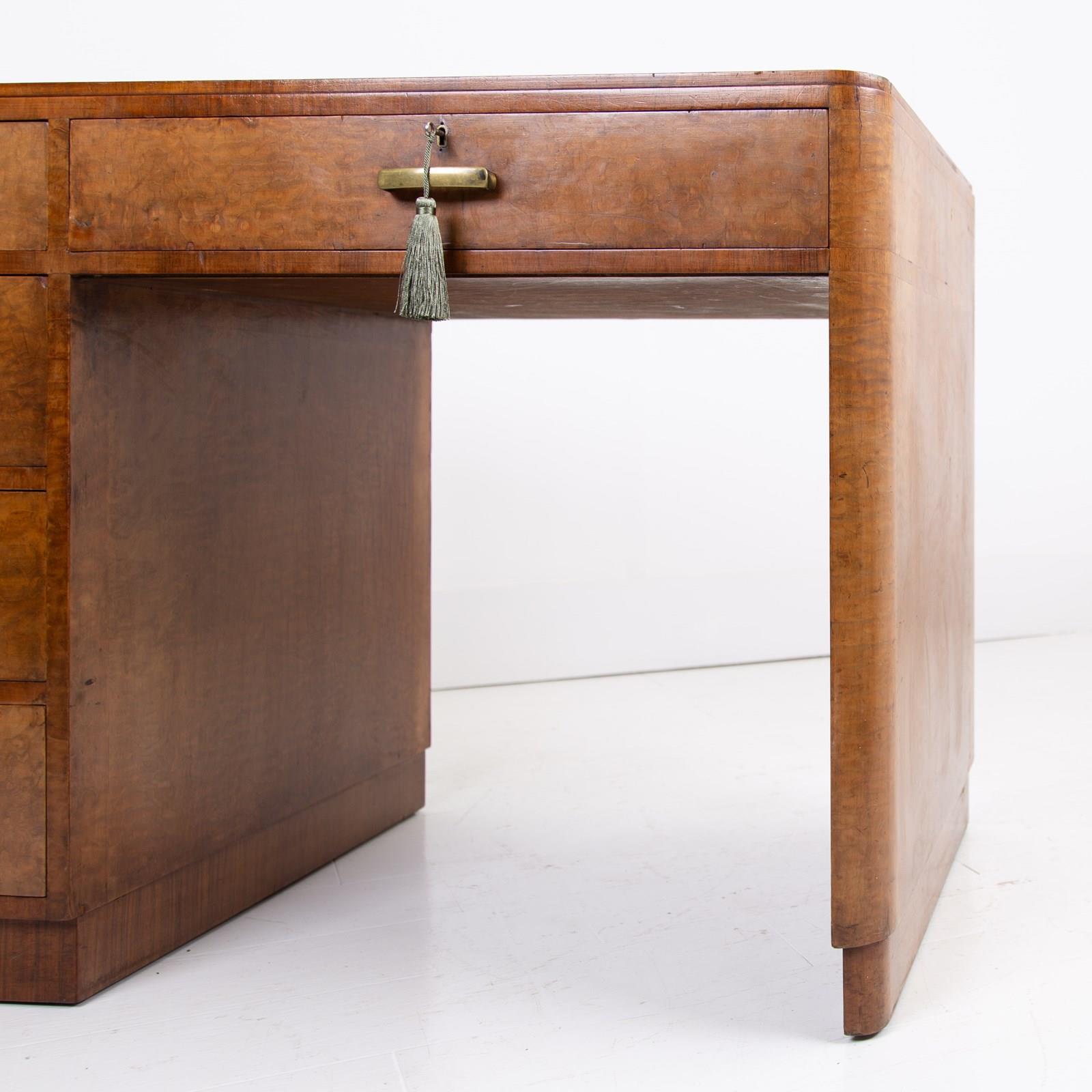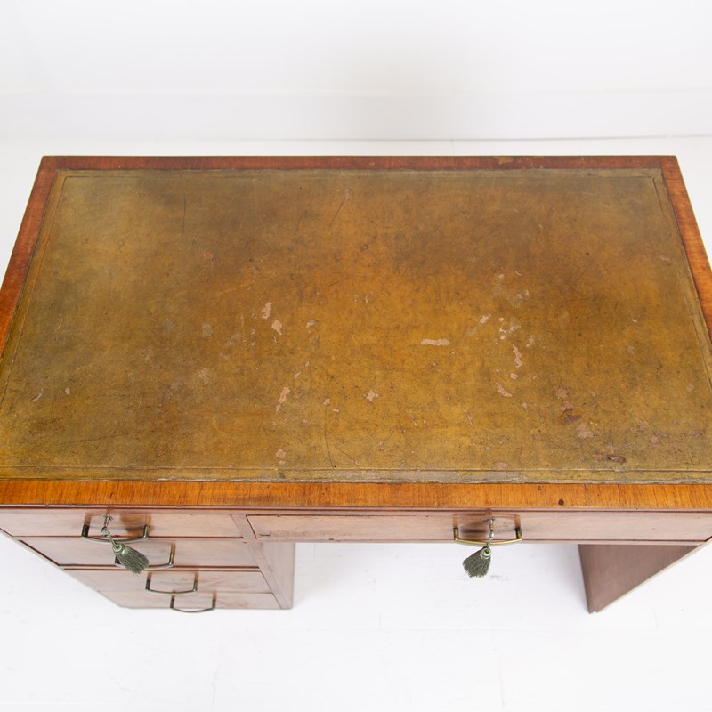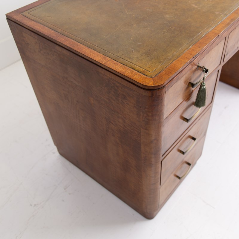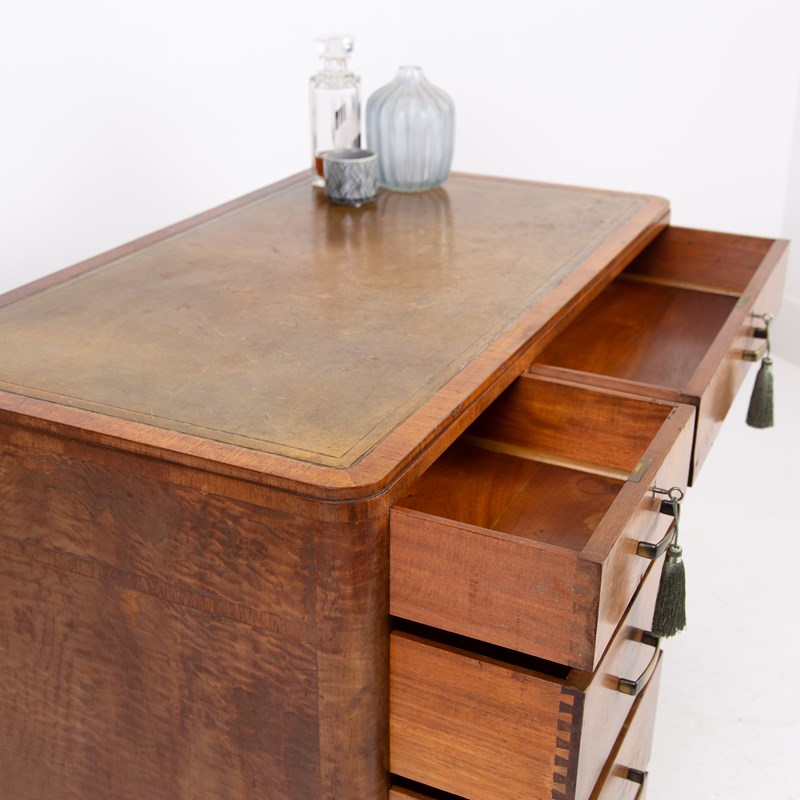 Art Deco Walnut Leather Top 5 Drawer Desk