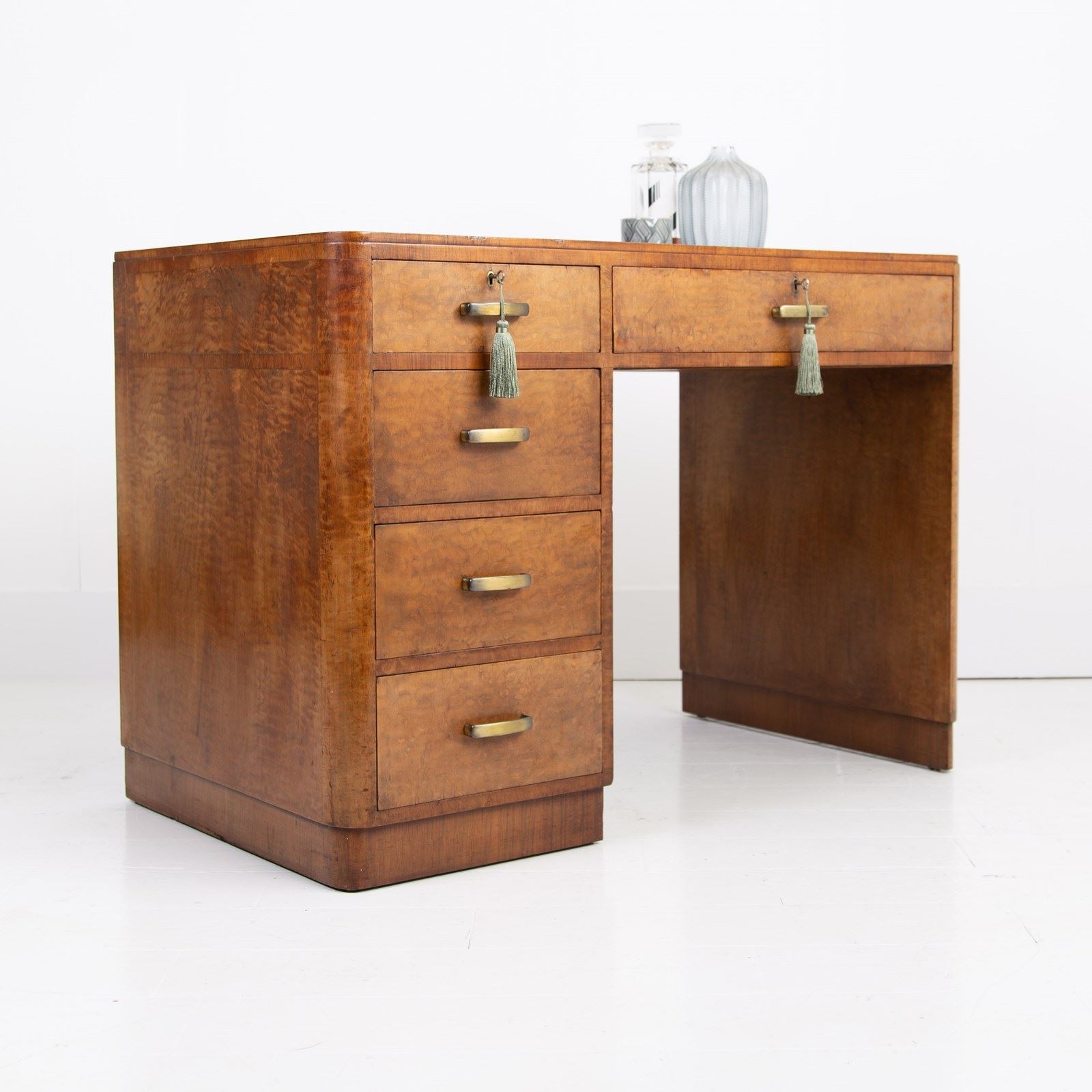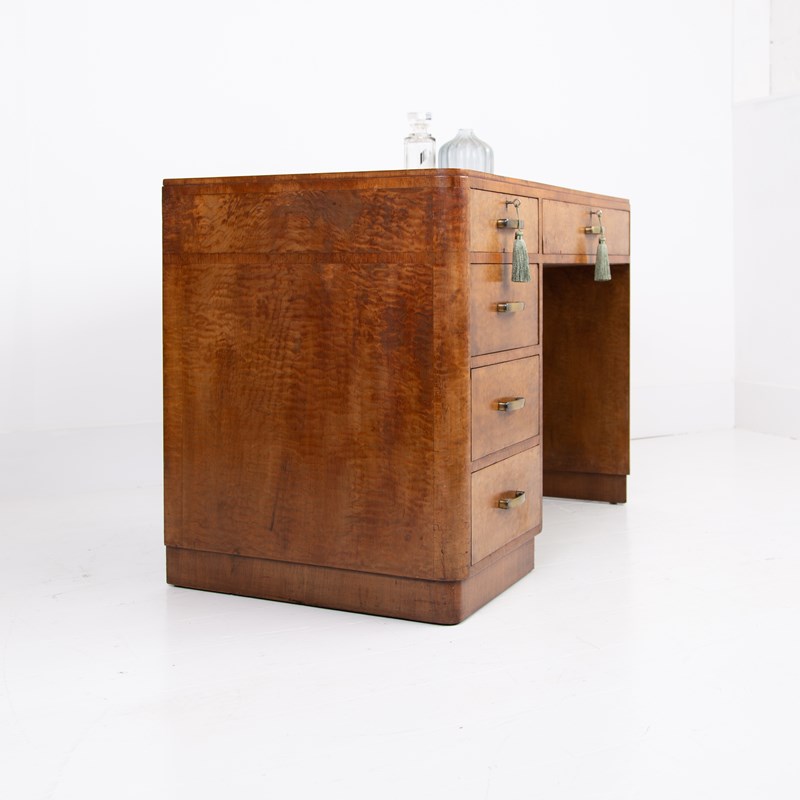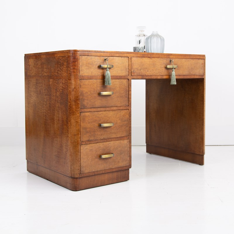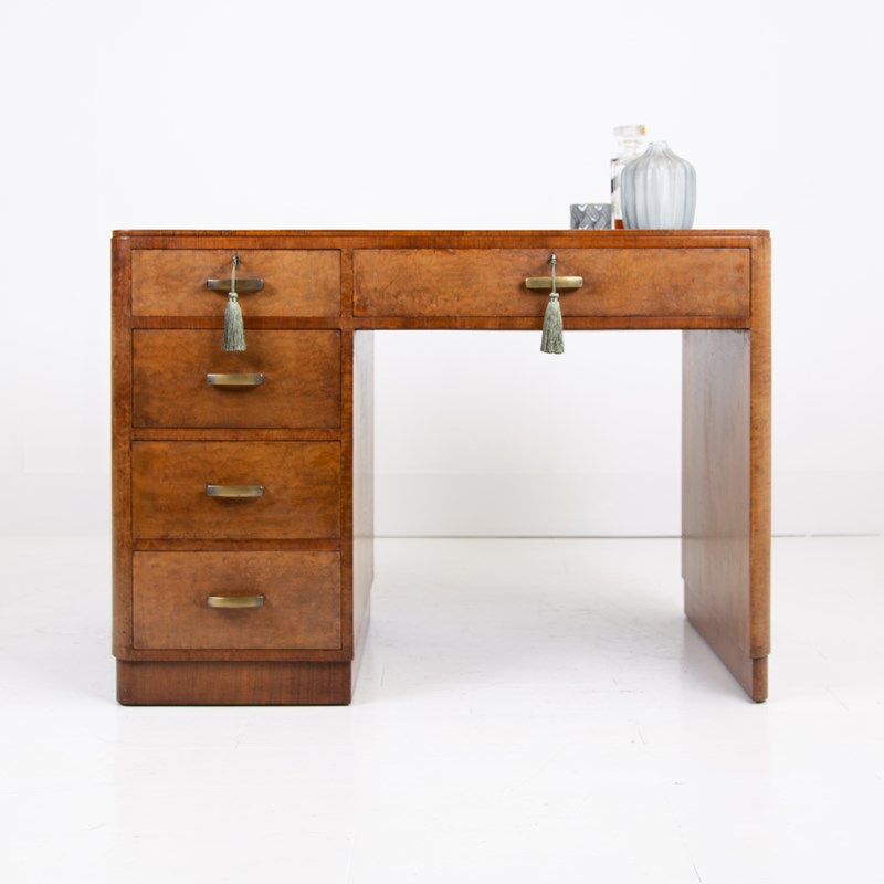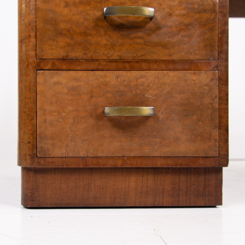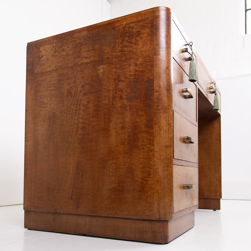 Art Deco Walnut Leather Top 5 Drawer Desk