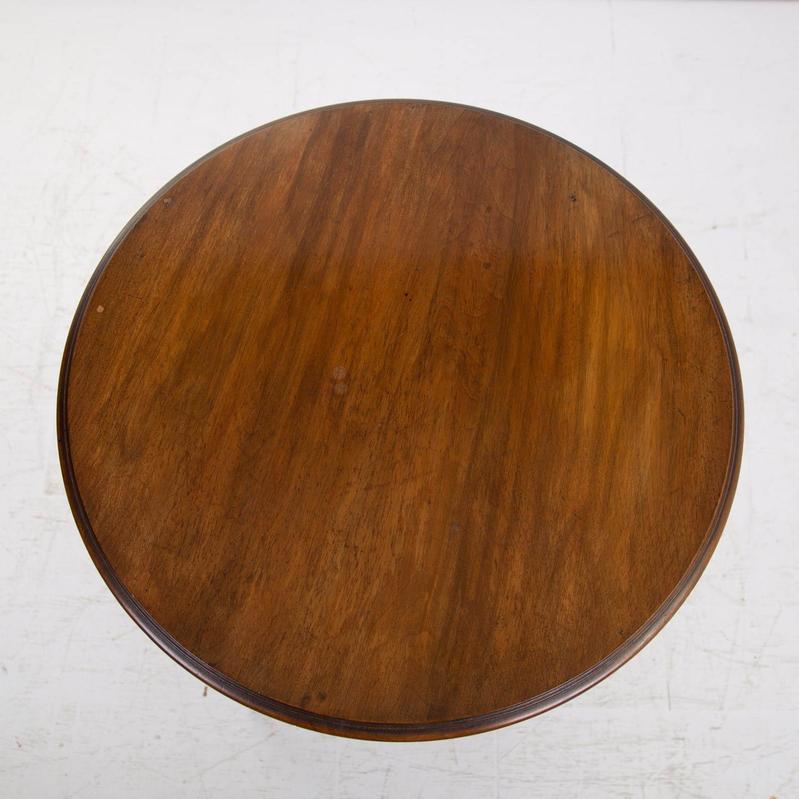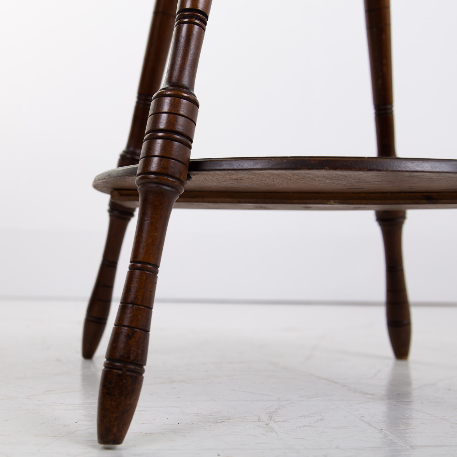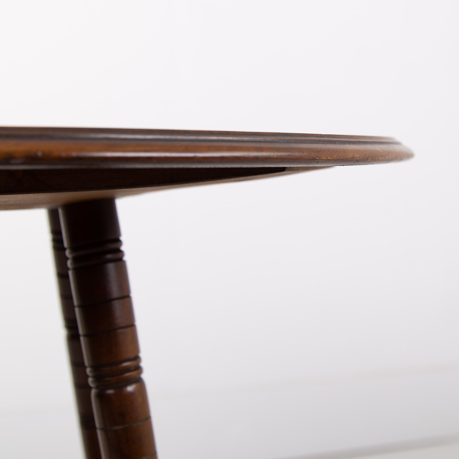A rather handsome looking 2 tier Arts & Crafts side table of good scale and sitting in original polish, unmessed with condition. Enjoying the look of this one with its well turned legs, simple round top, scale and gentle historic aging.