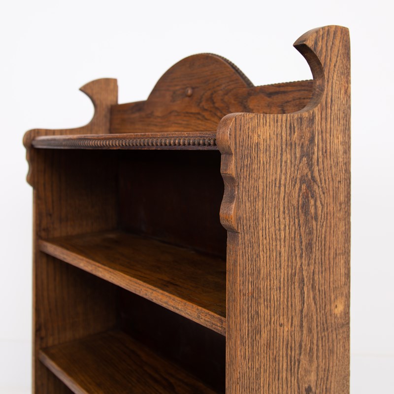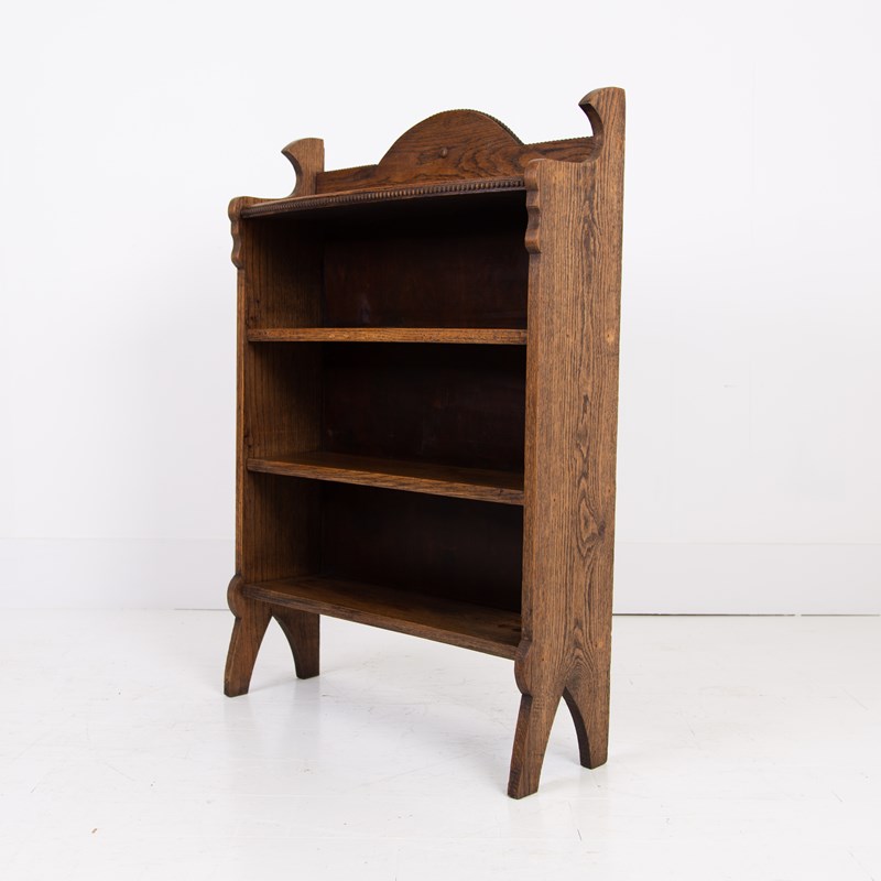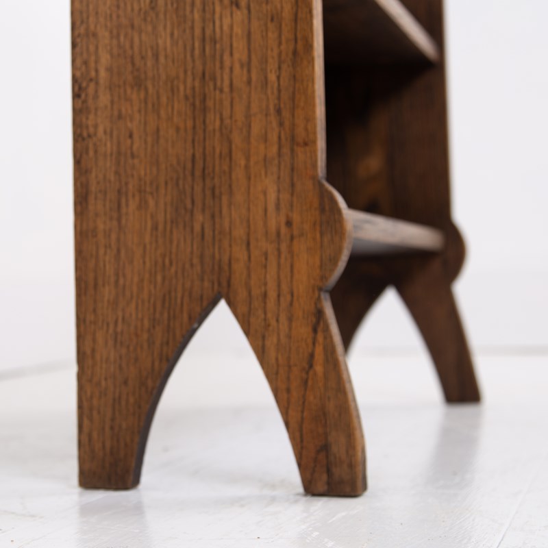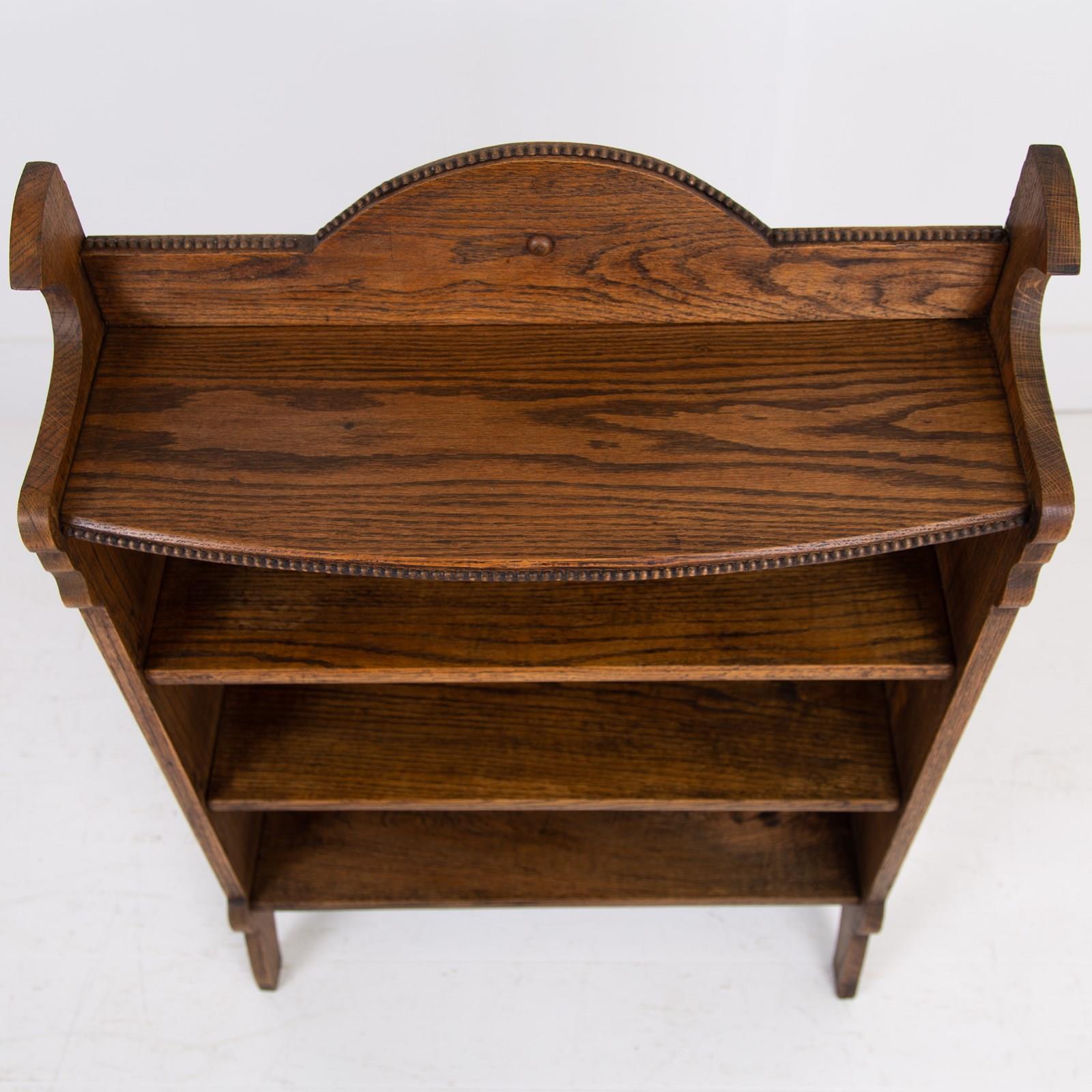 A good looking English oak open bookcase, a recent find with some pleasing on the eye features and surprisingly heavy for its size.