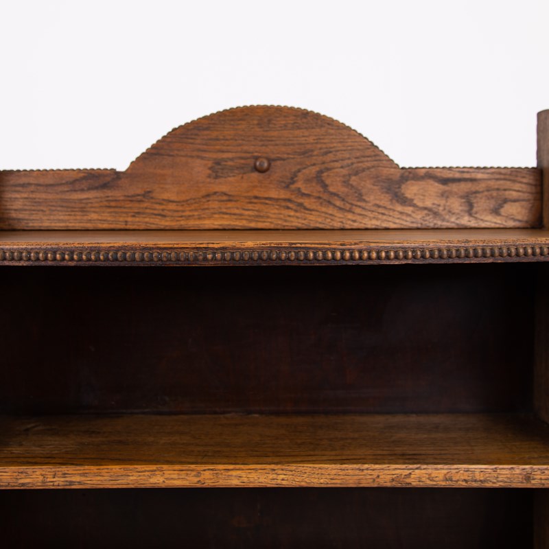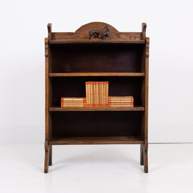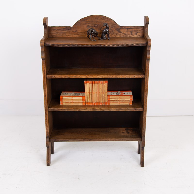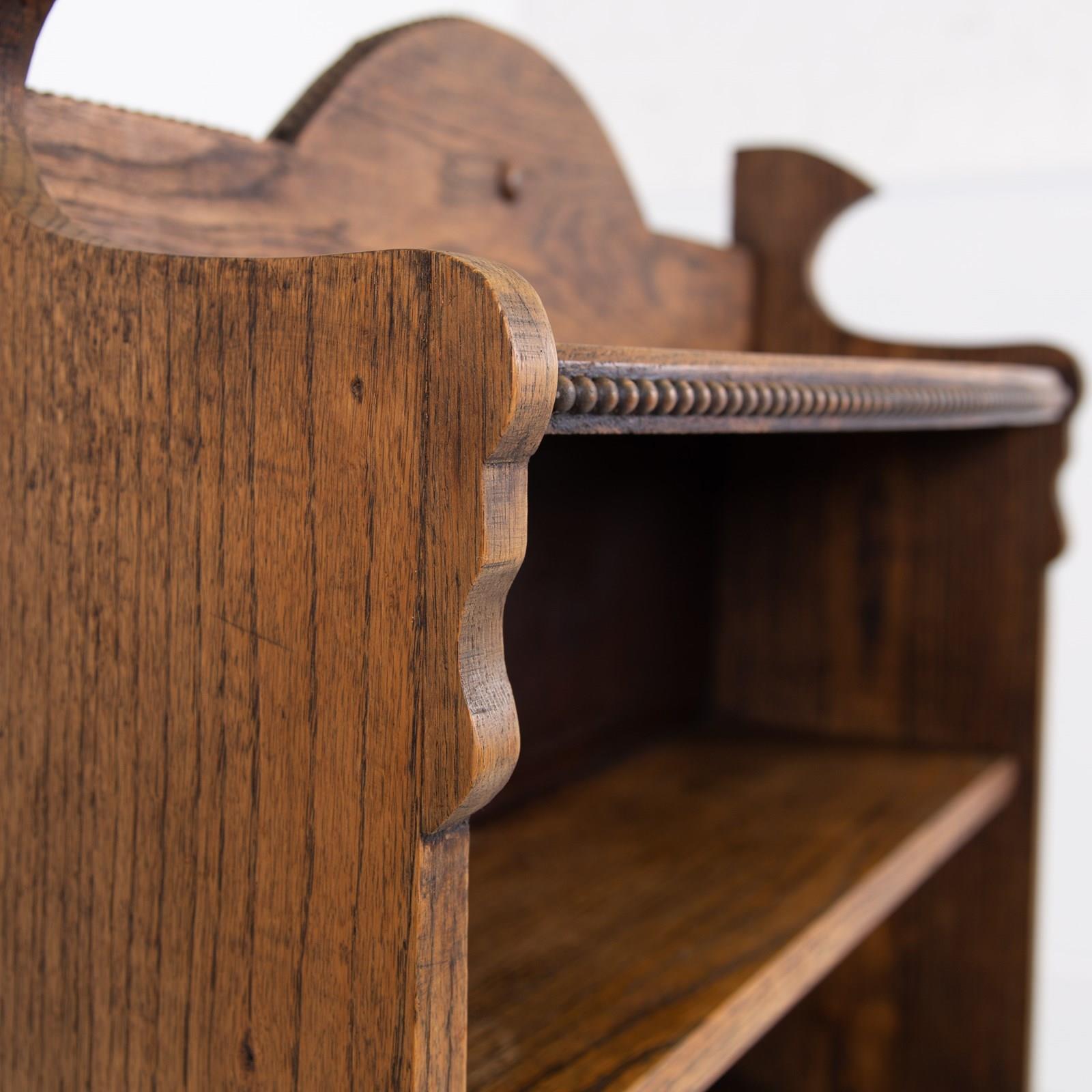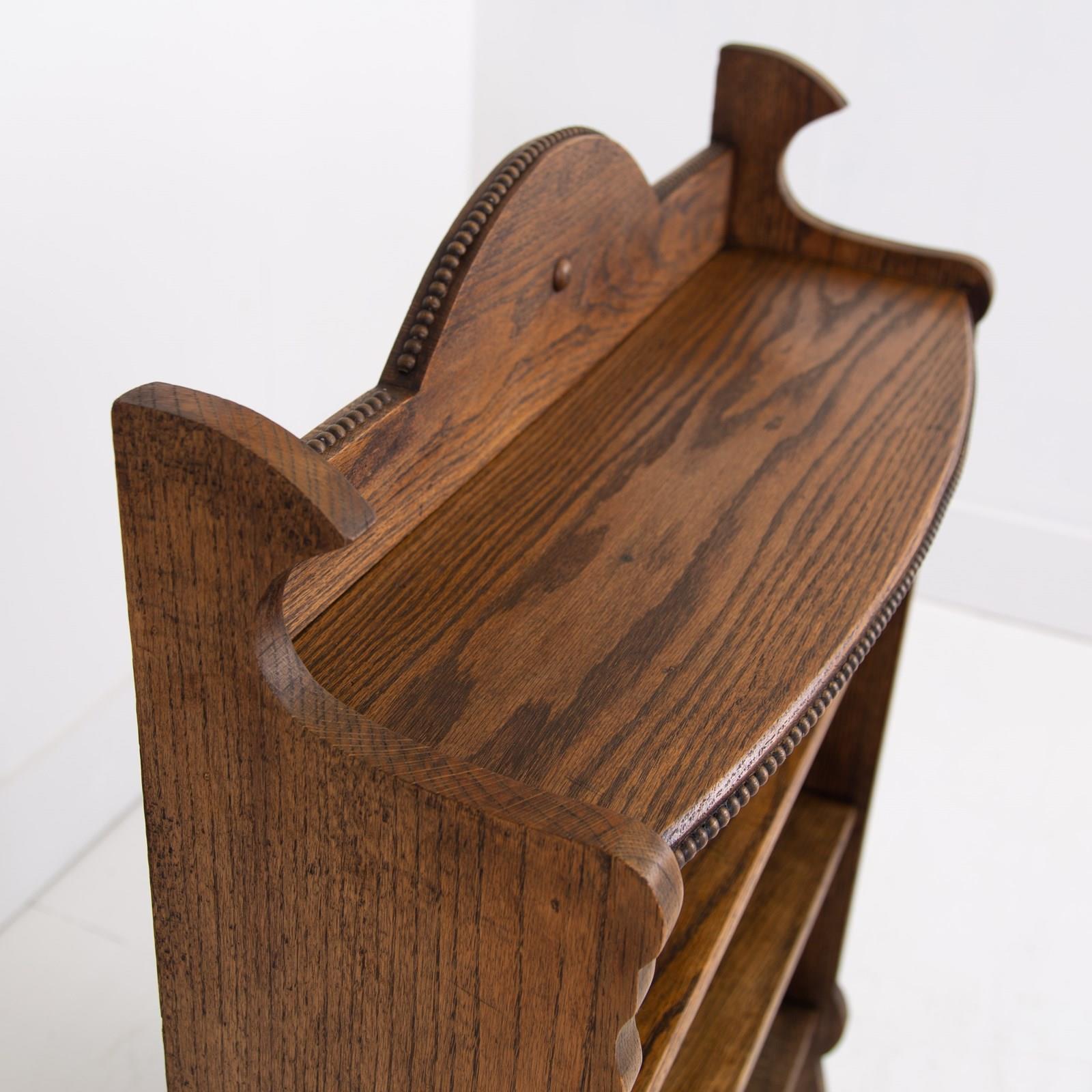 A good looking English oak open bookcase, a recent find with some pleasing on the eye features and surprisingly heavy for its size.