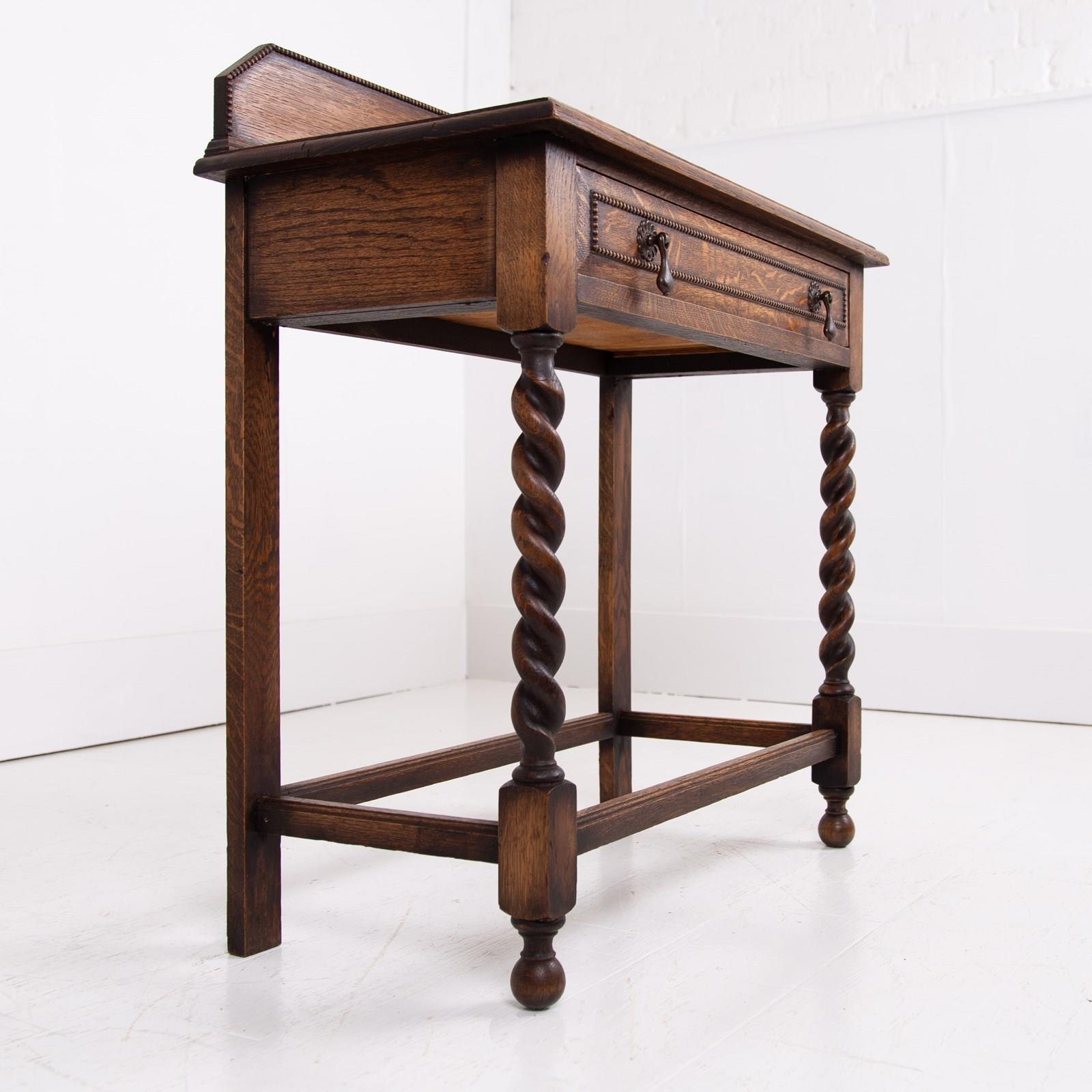 A jolly smart and handsome looking little oak table with the benefit of a long single drawer, English C1920.