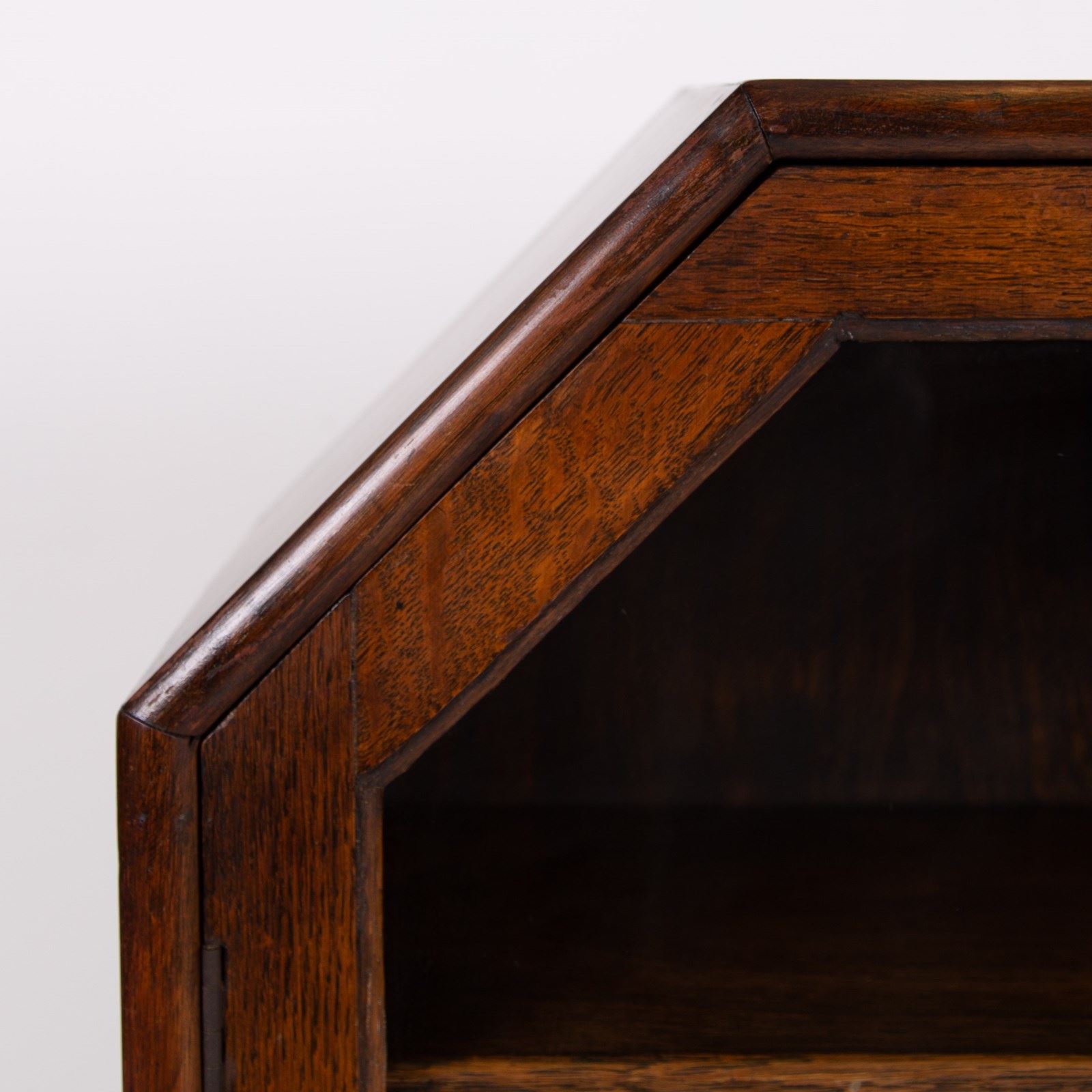 A very attractive smaller sized English oak cabinet C1930 with a gentle hint of Art Deco design.