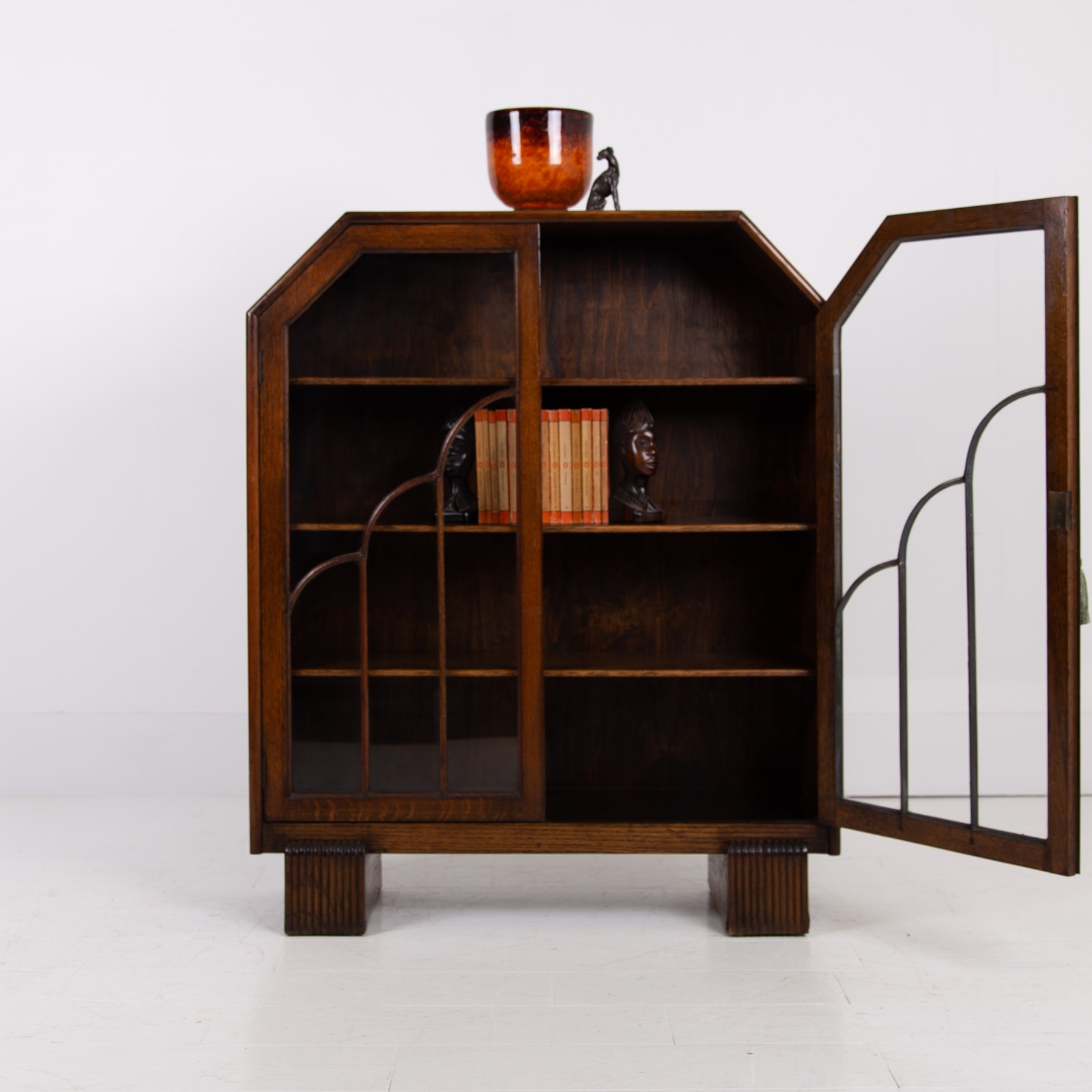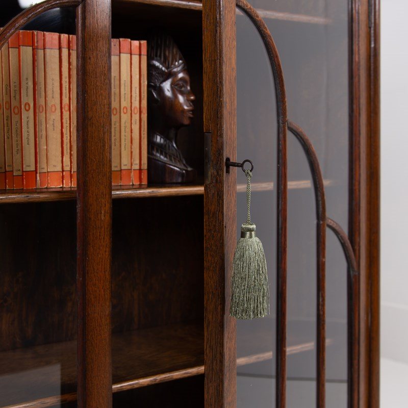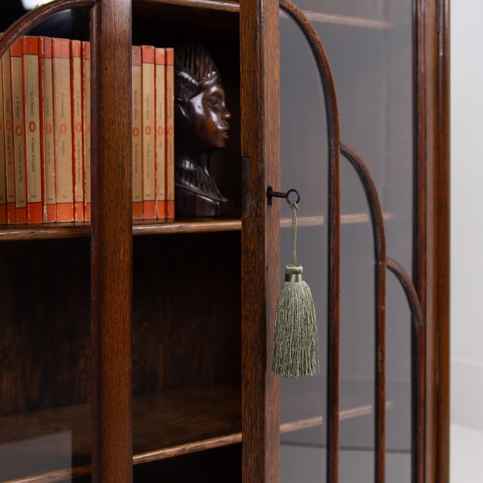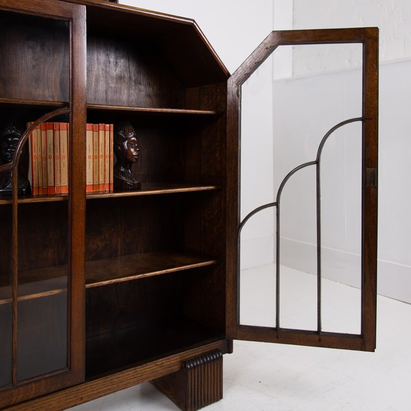 Delightful Oak Glazed Bookcase Cabinet C1930