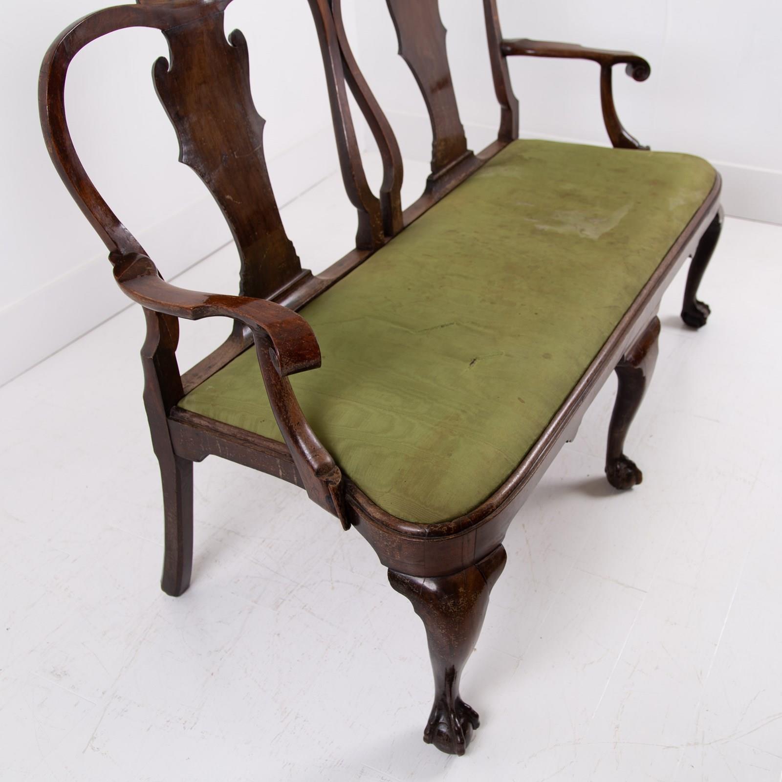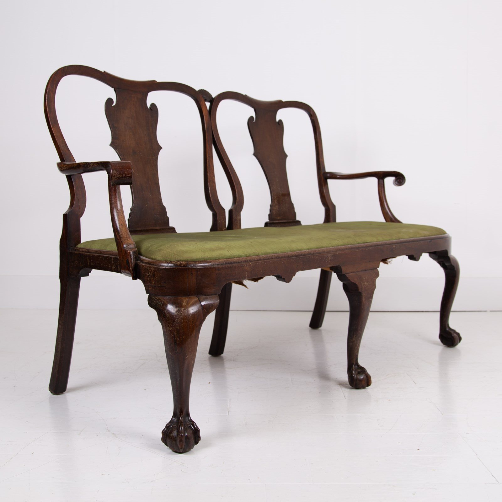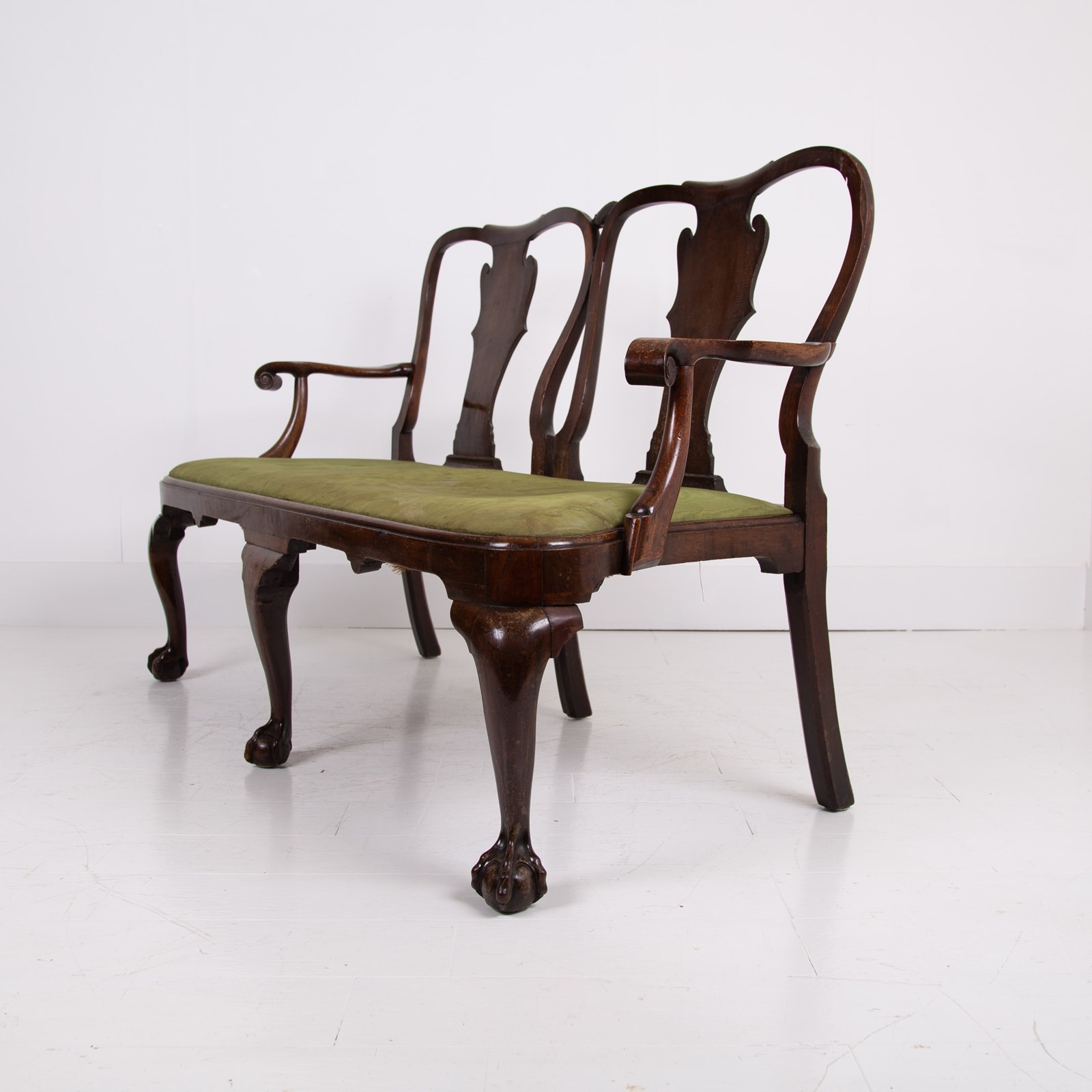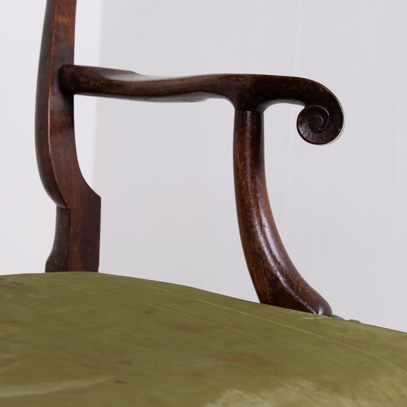 Sitting in sleepy “country house” condition we have scroll hand rests, lovely shaped dense cabriole forelegs, a well shaped back, ball and claw feet and a drop in seat with good depth. Mark our upholsterer would be able to fully reupholster the seat at a cost of £300 plus VAT - you would require 2-3 metres of fabric which we can assist in finding if you desire.