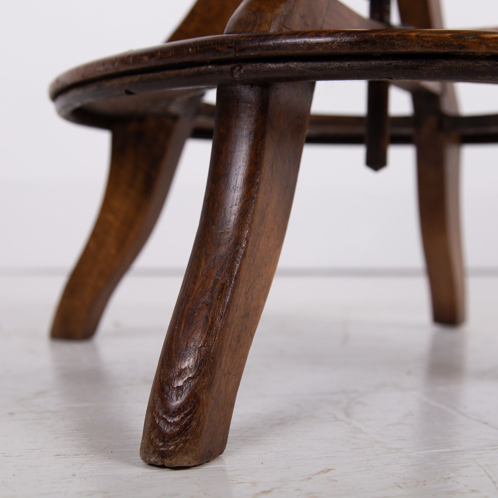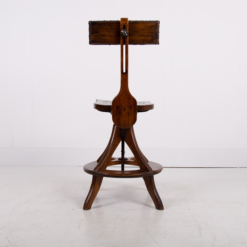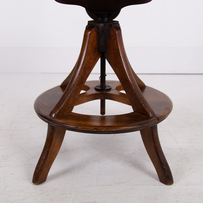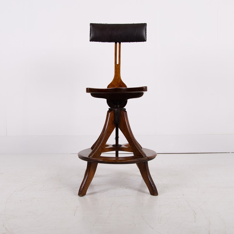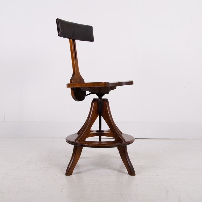A rather beautiful draughtsman chair by Glenister of High Wycombe early 20th Century. A true delight to the eyes, they were wonderfully crafted from an era which appreciated using a mix of timber and iron with its adjustable back, well shaped thick seat, swivel height adjustable seat and broad “foot plate”. It's surely a classic.