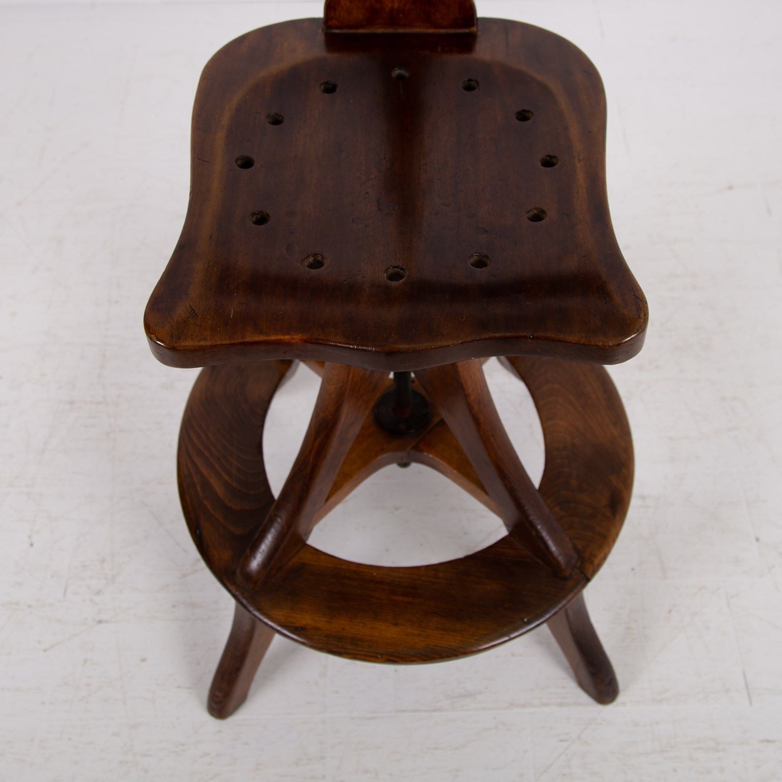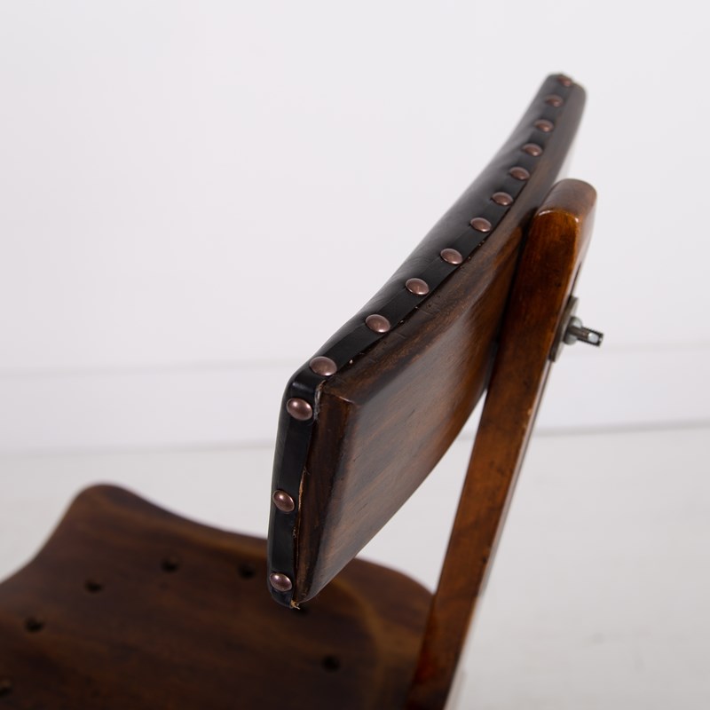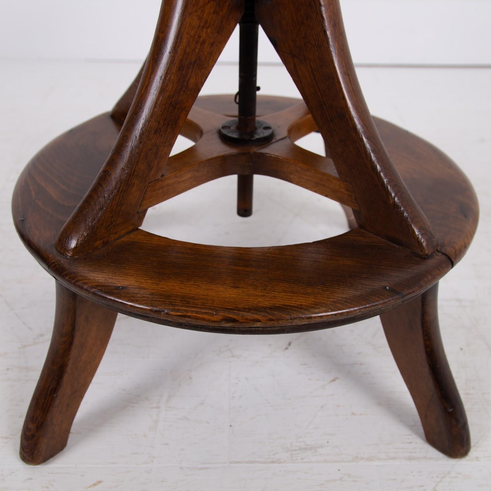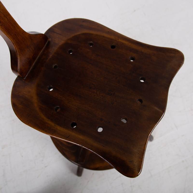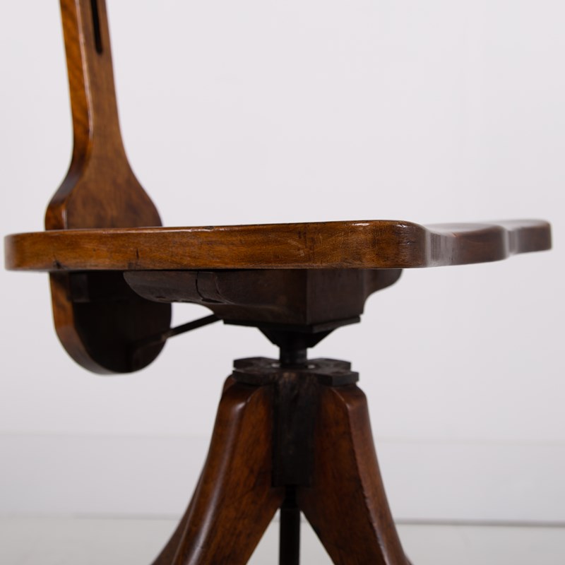 A rather beautiful draughtsman chair by Glenister of High Wycombe early 20th Century. A true delight to the eyes, they were wonderfully crafted from an era which appreciated using a mix of timber and iron with its adjustable back, well shaped thick seat, swivel height adjustable seat and broad “foot plate”. It's surely a classic.