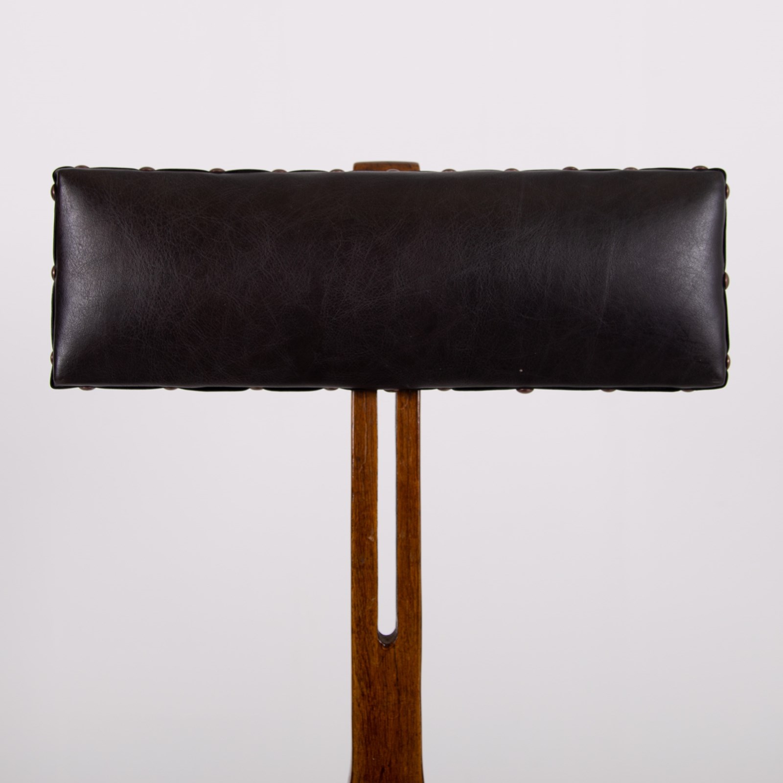 The chair shows age patina and has enjoyed a new back rest in aged black leather by Andrew Martin and the chair is ready for purpose.
