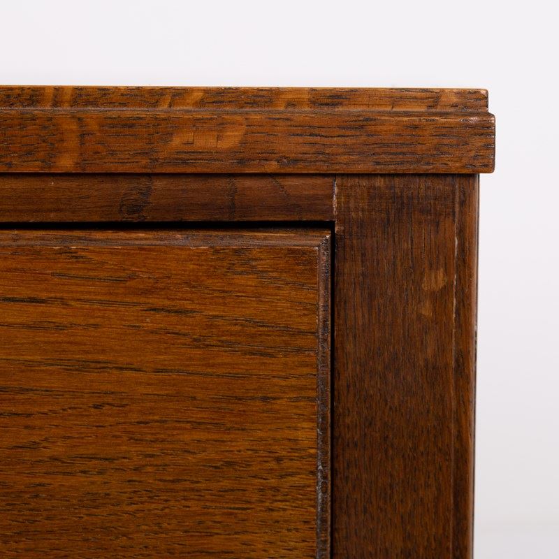 This one survives in super order. The drawers are running as they should (we have waxed the runners), it's sitting firm with no wobbles or repairs. A well looked after piece with a lovely grain and tone.