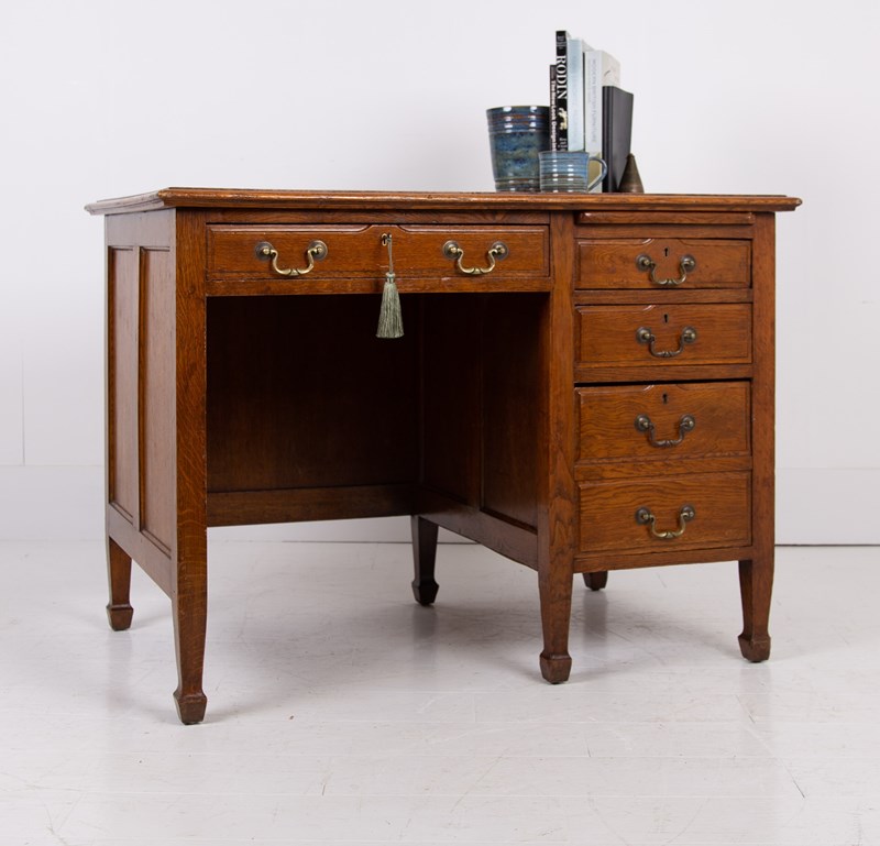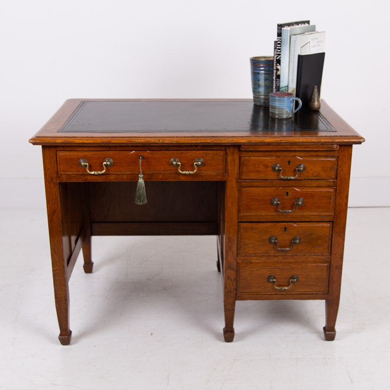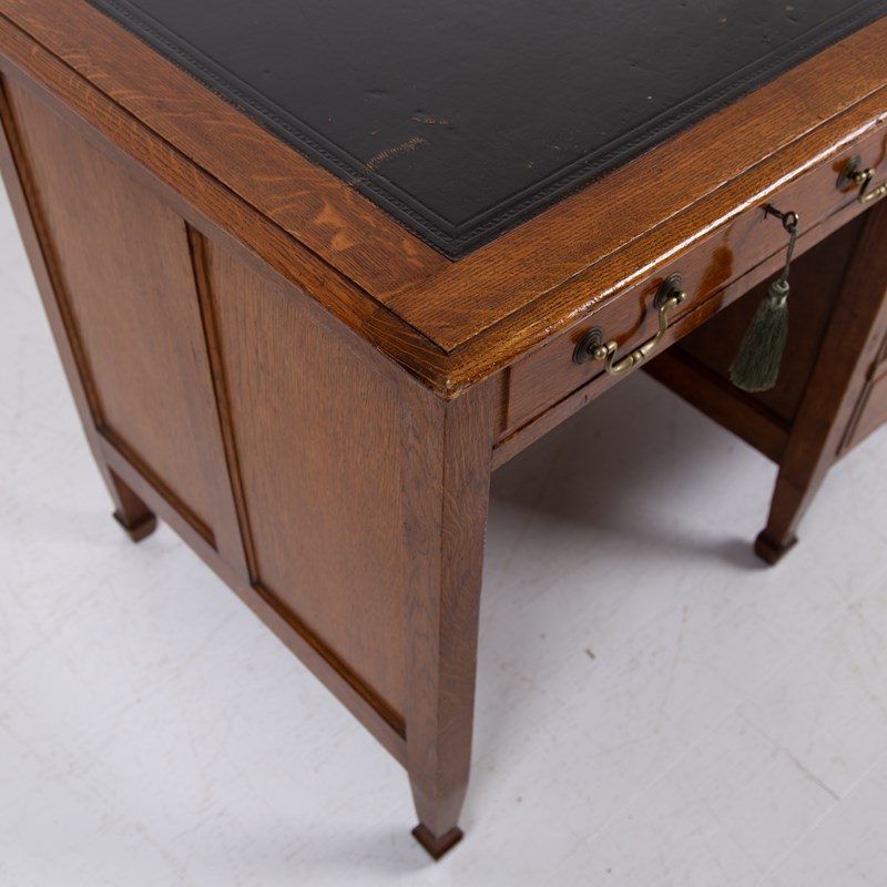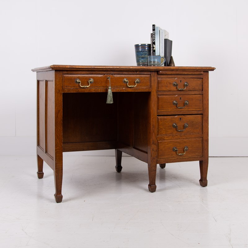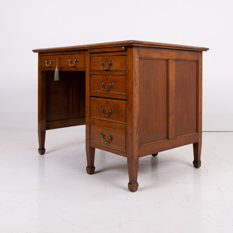 A Handsome Golden Oak Single Pedestal Desk C1910