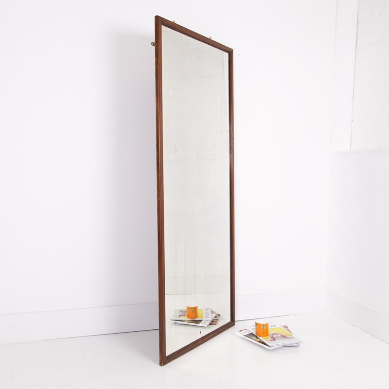 We were fortunate to find this alongside another of the same design. We like shop mirrors to have height and this one wades in at 6 foot tall or 183cm in new money and has not been messed around with, just sensible historic wear.