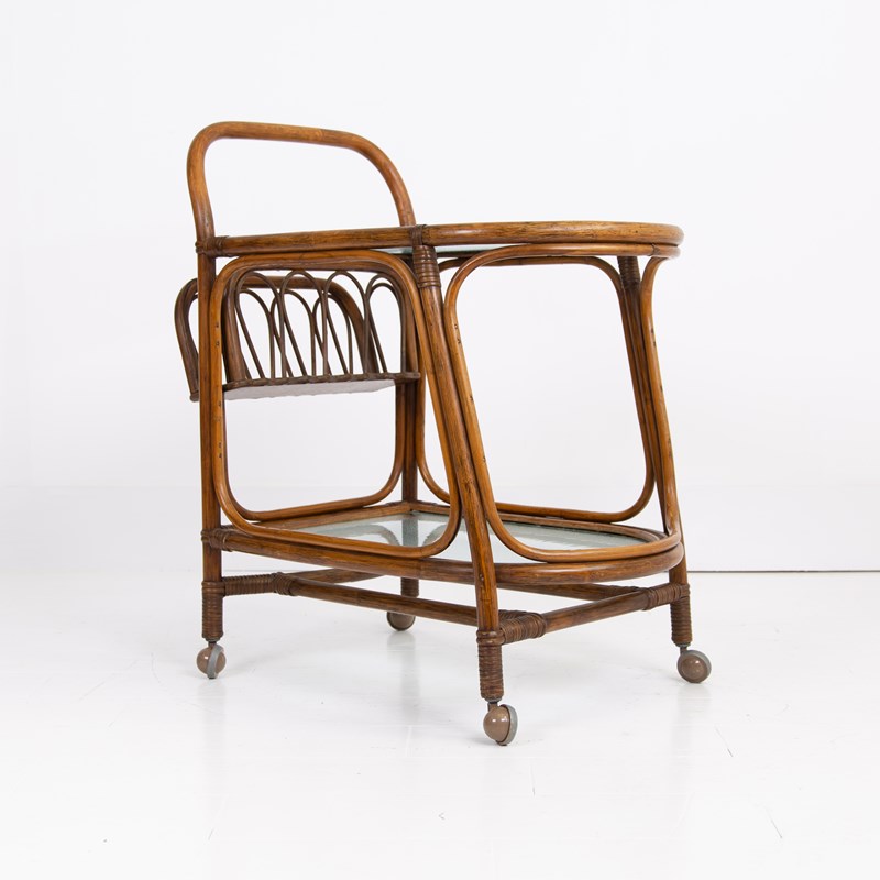 Mid Century Bamboo Drinks Trolley