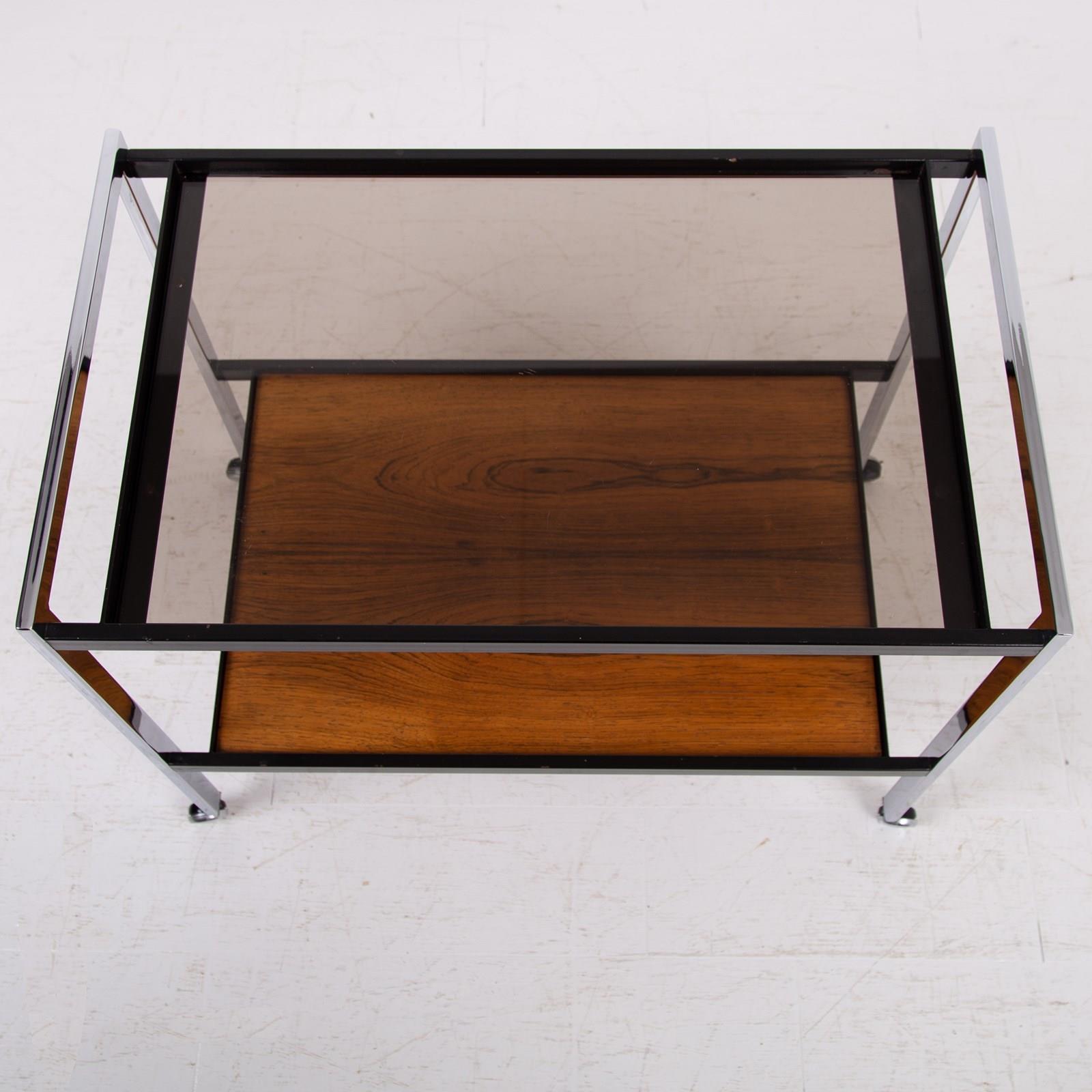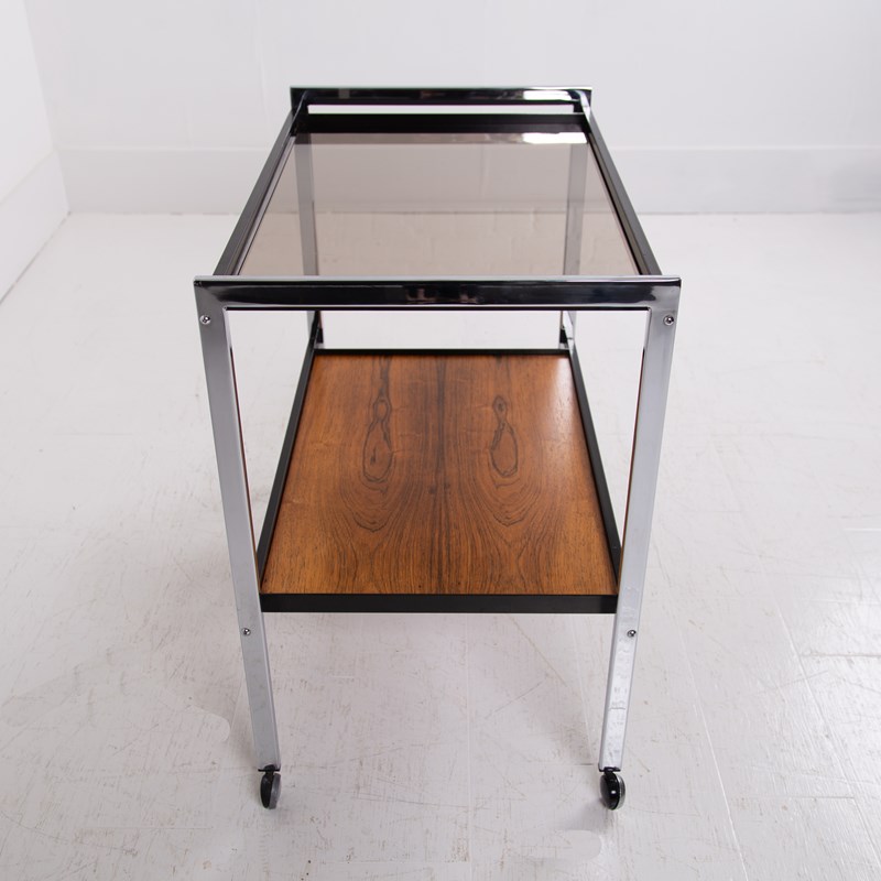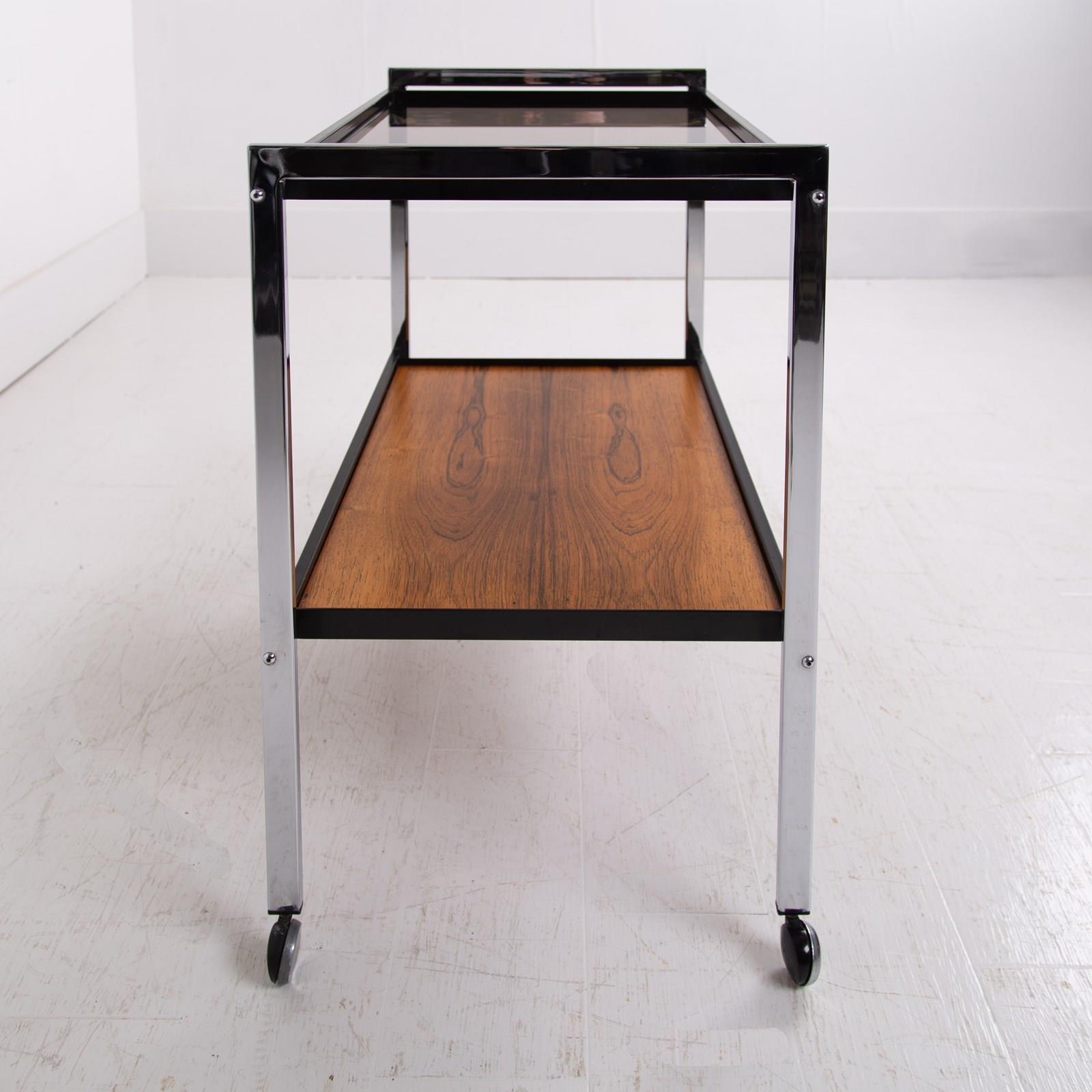 Mid Century Chrome & Rosewood Trolley By Howard Miller C1970