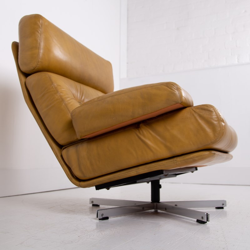 Mid Century Swivel Leather Armchair Tetrad Nucleus C1970