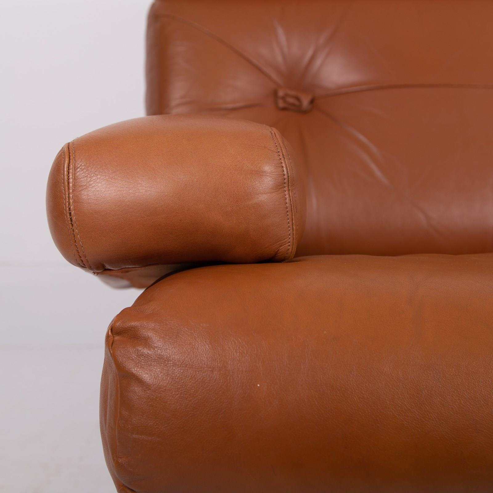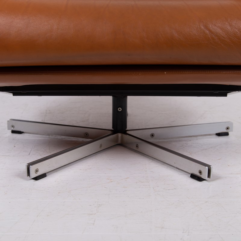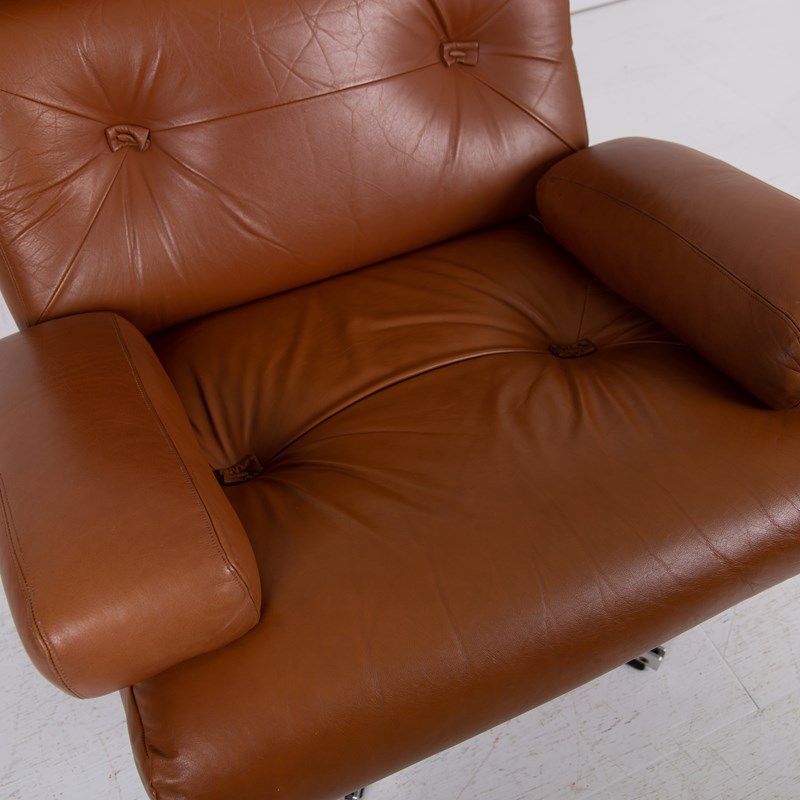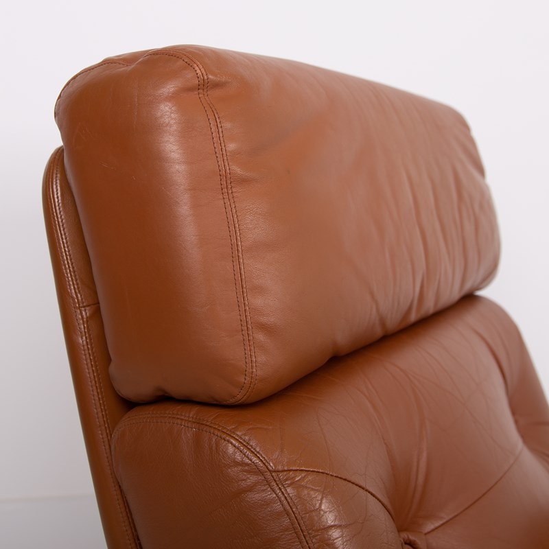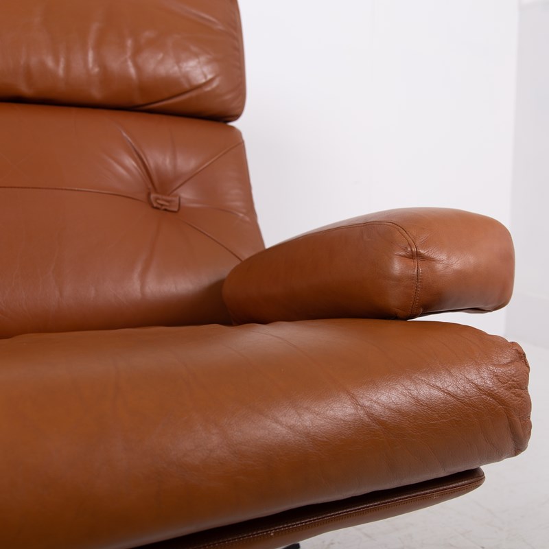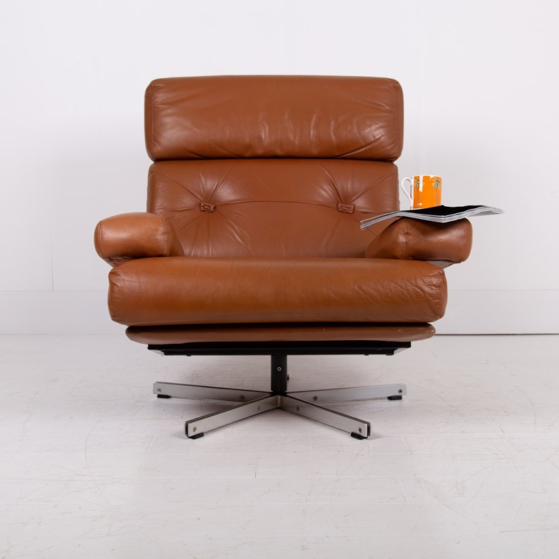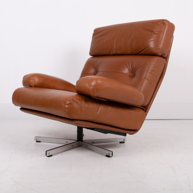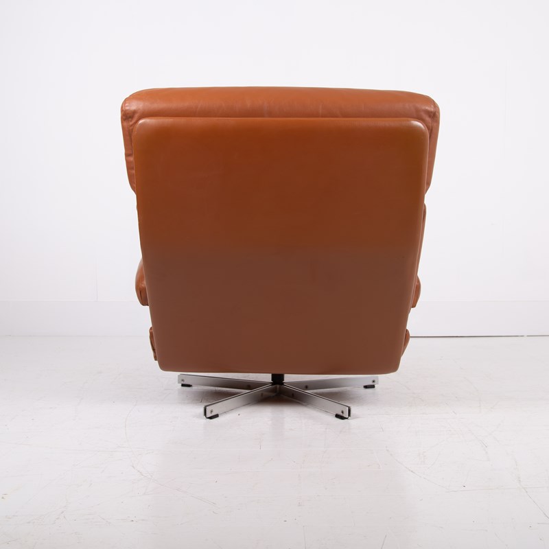 Mid Century Swivel Tan Leather Armchair Tetrad Nucleus C1970
