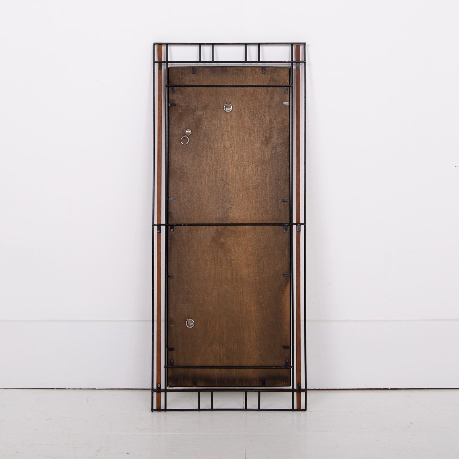 Condition is spot on with light historic wear to the angled rod frame and original mirror glass - it benefits from having fittings to the rear so you can hang either in a portrait or horizontal position.