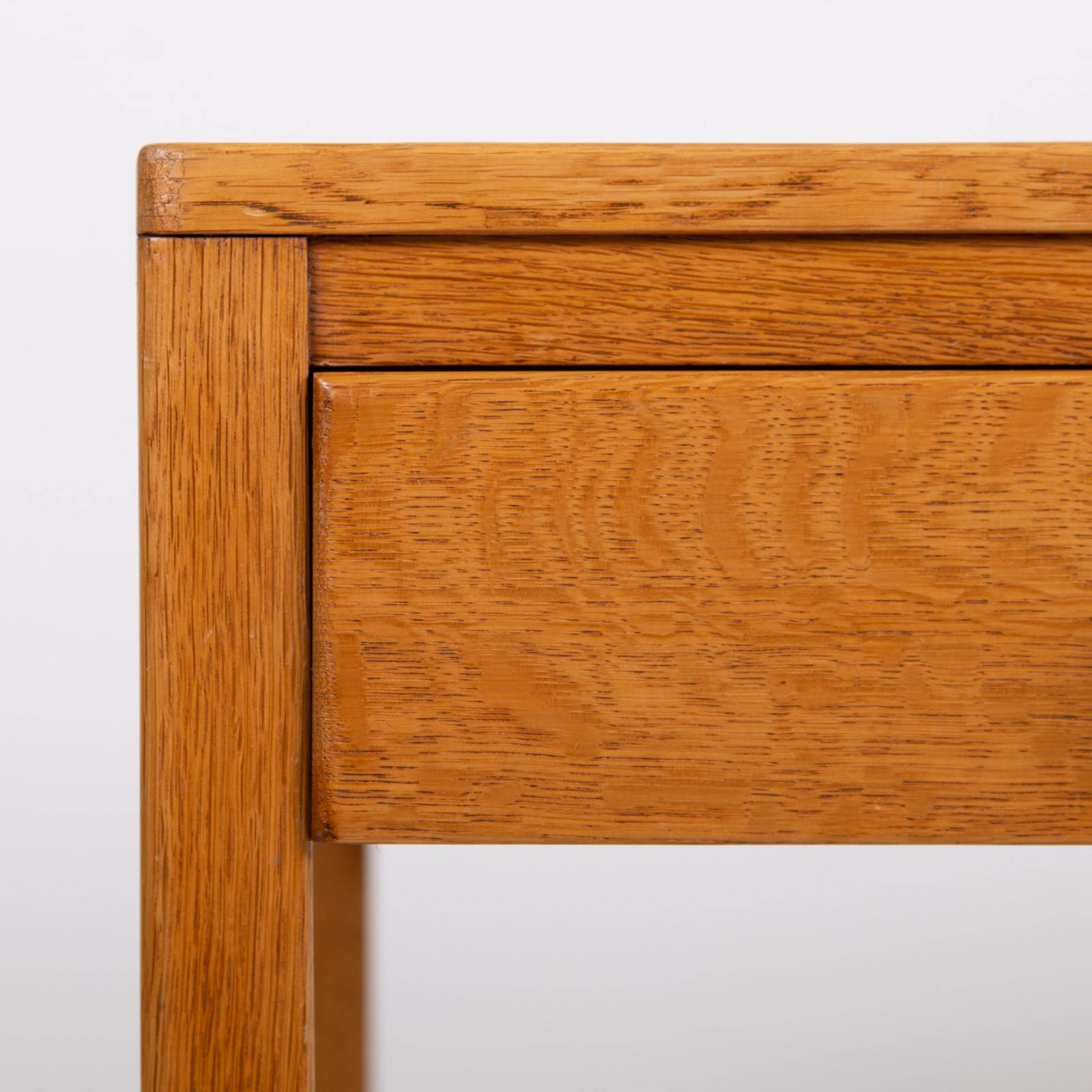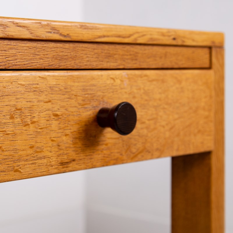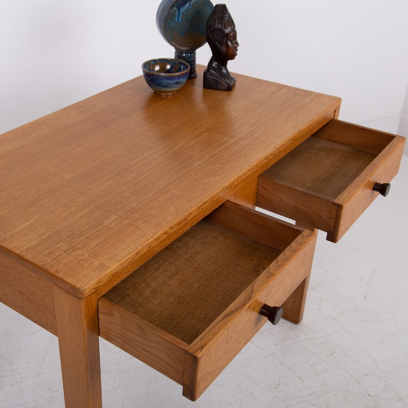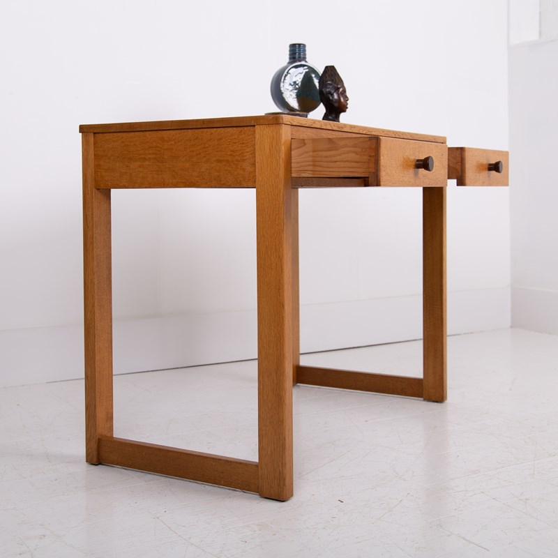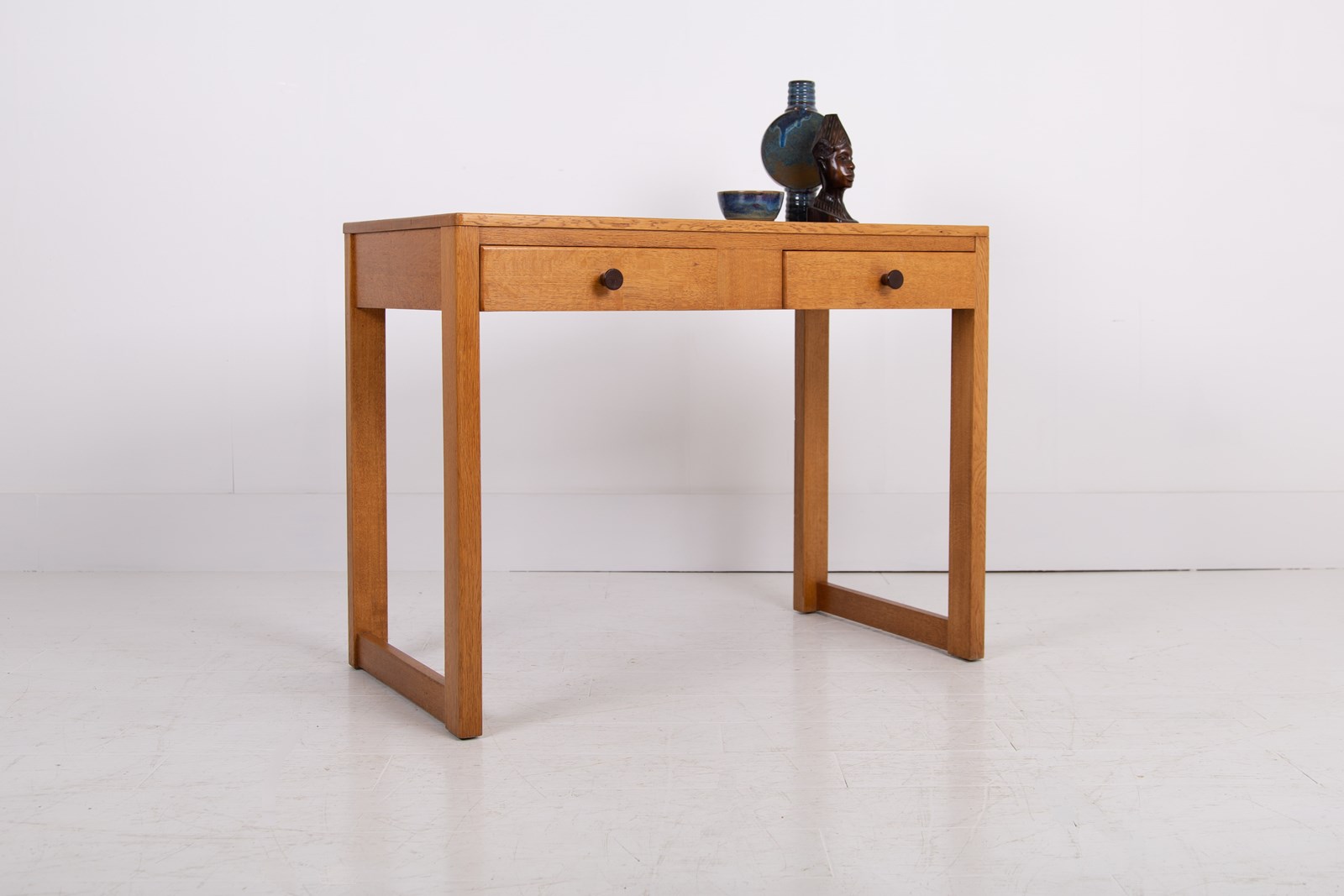 From the range designed by Dick Russell in 1934, we have this rather beautiful modernist console desk of 2 drawers in a lighter shade of English oak.