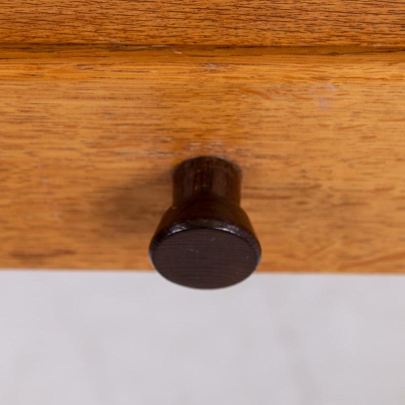 The condition is good - the original walnut knobs, often lost or swapped out, are in place, we have light wear to the top and sides, nothing nasty or off-putting. We have carefully cleaned and very lightly waxed the piece and it is ready to place. Perfect for so many spaces and such a well executed design.